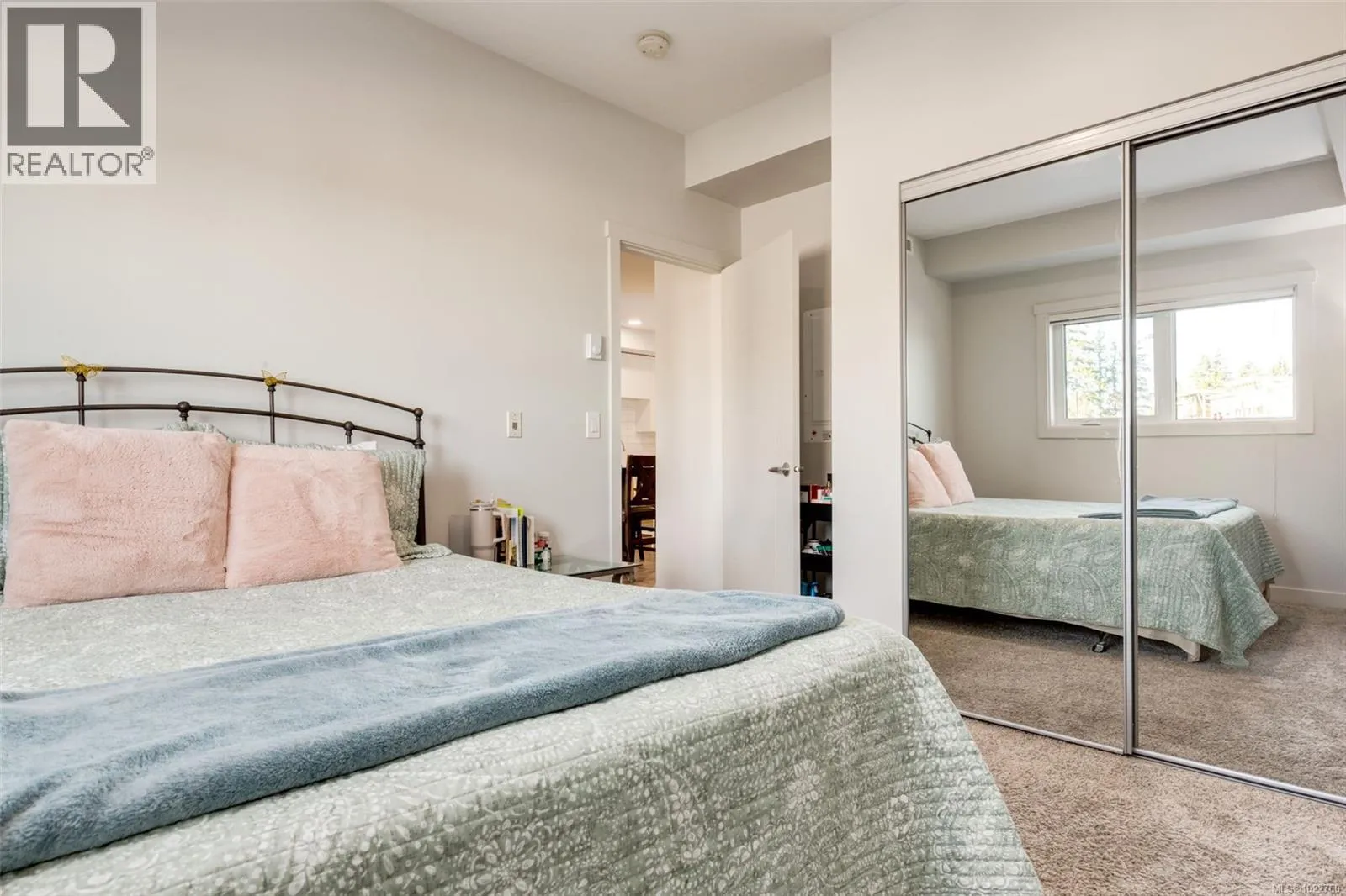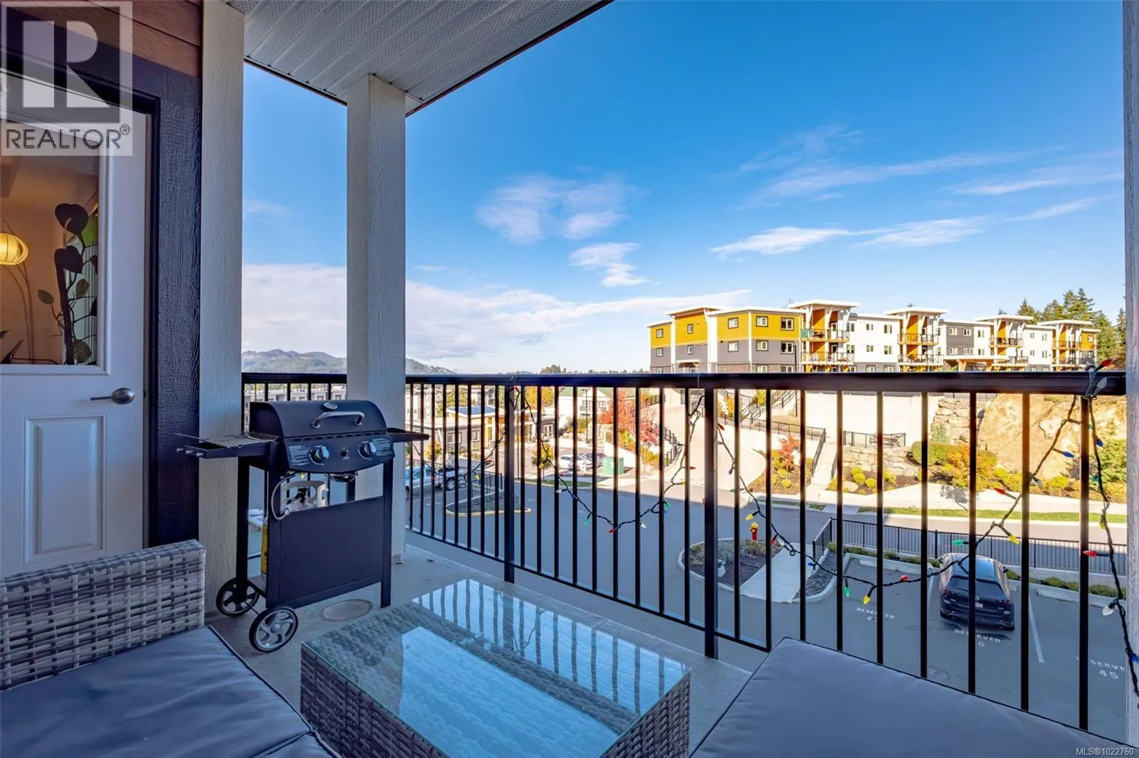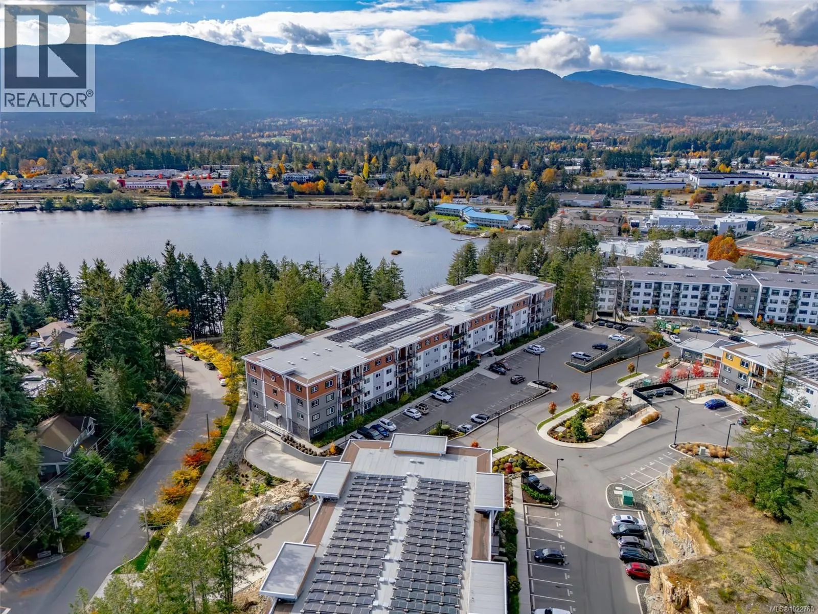 Welcome to this stunning home in Lakeview Terrace! This Built Green Platinum certified 2-bedroom, 2-bathroom residence offers a fantastic vantage point with sweeping mountain views over North Nanaimo. Completed in 2022, this modern home prioritizes sustainability with roof-installed solar panels, and a heat recovery ventilation system. The bright interior boasts a contemporary design featuring up-to-ceiling cabinetry, quartz countertops, and modern fixtures. Maximizing privacy, the two spacious bedrooms are thoughtfully situated on opposite sides of the unit. You'll have the convenience of one underground parking stall with secure bike storage. Walkability to Long Lake and North Town Centre for all your shopping and dining needs. Residents benefit from premium complex amenities, including a stylish clubhouse lounge, a fully equipped gym, and a yoga studio. Perfect for both families and investors. (Measurements and data approximate; verify if important.) (id:27476)