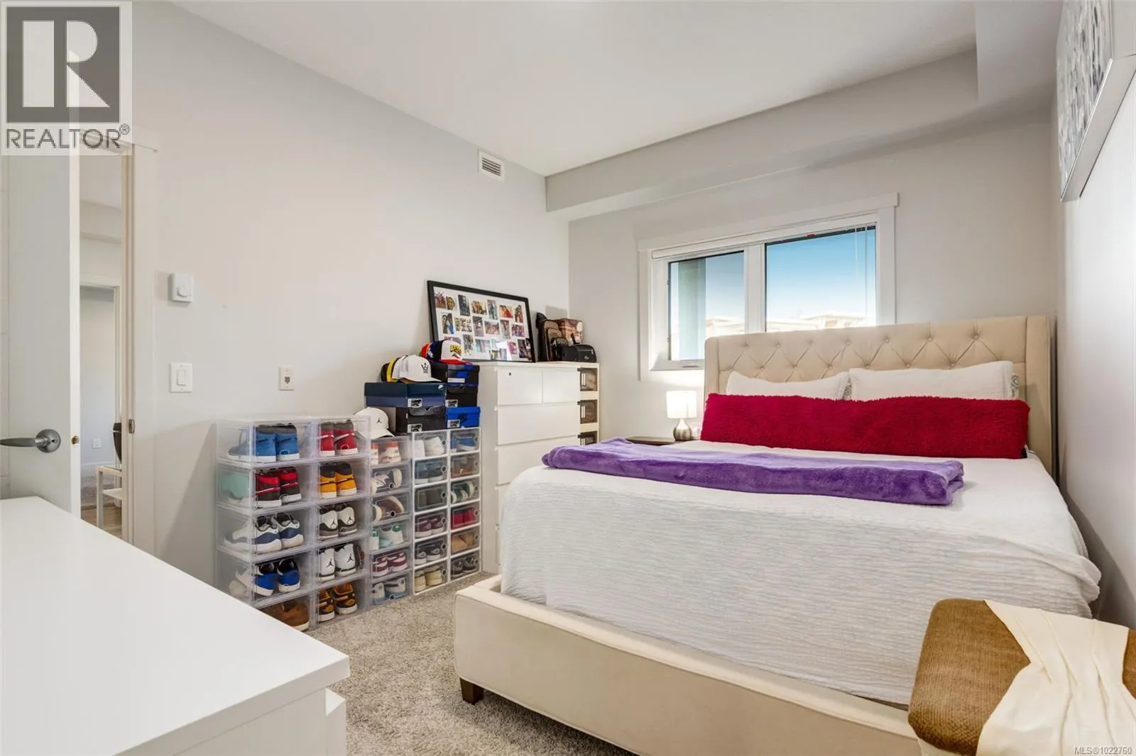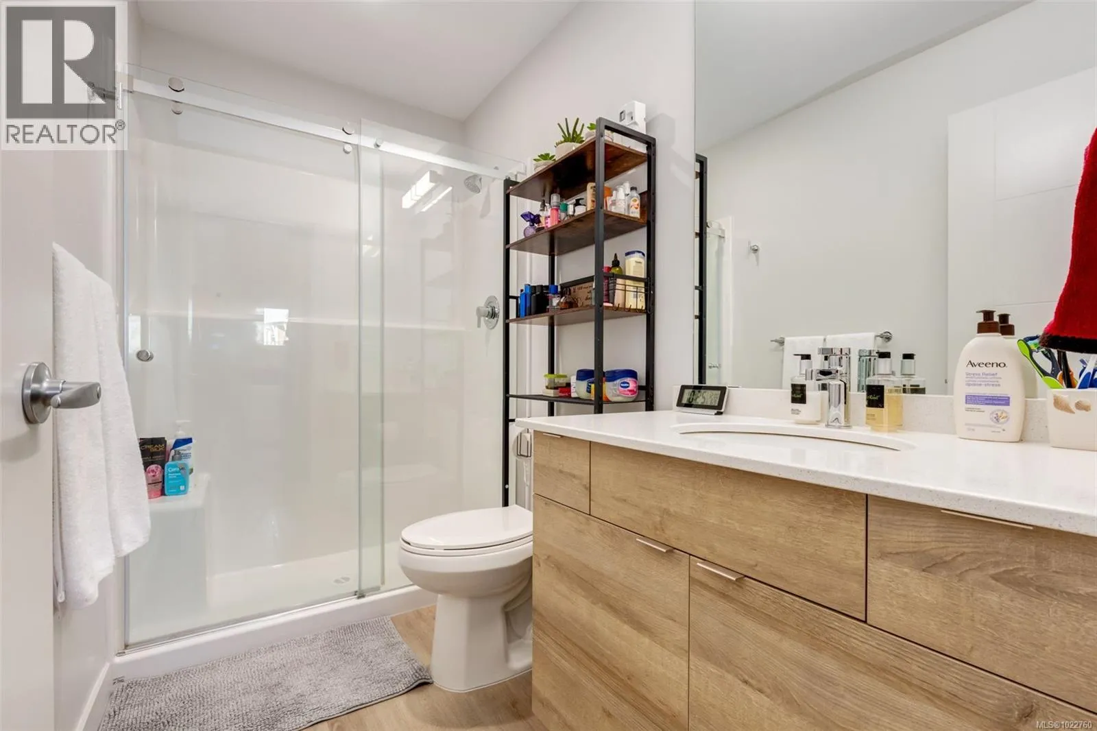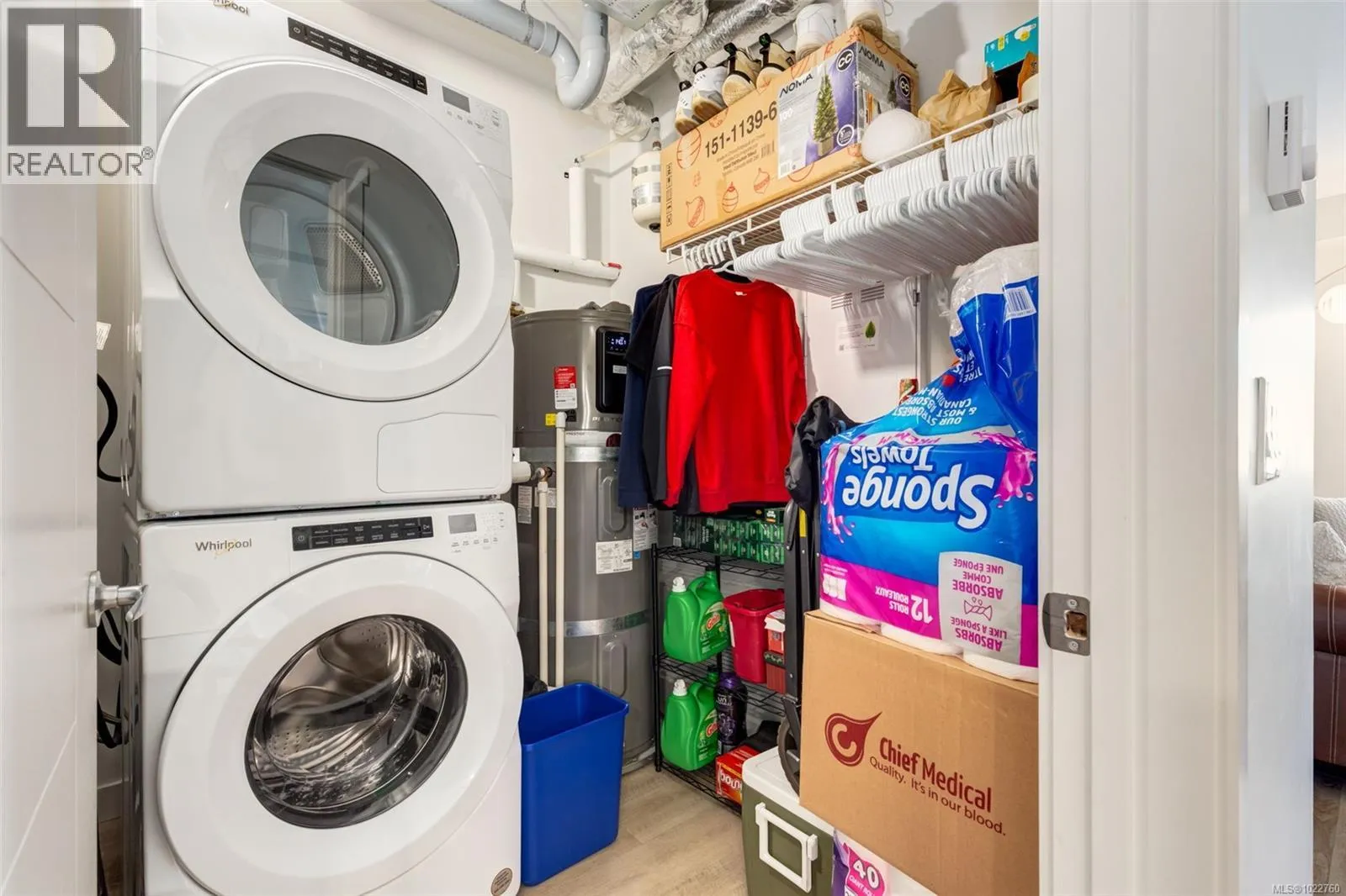 Welcome to this stunning home in Lakeview Terrace! This Built Green Platinum certified 2-bedroom, 2-bathroom residence offers a fantastic vantage point with sweeping mountain views over North Nanaimo. Completed in 2022, this modern home prioritizes sustainability with roof-installed solar panels, and a heat recovery ventilation system. The bright interior boasts a contemporary design featuring up-to-ceiling cabinetry, quartz countertops, and modern fixtures. Maximizing privacy, the two spacious bedrooms are thoughtfully situated on opposite sides of the unit. You'll have the convenience of one underground parking stall with secure bike storage. Walkability to Long Lake and North Town Centre for all your shopping and dining needs. Residents benefit from premium complex amenities, including a stylish clubhouse lounge, a fully equipped gym, and a yoga studio. Perfect for both families and investors. (Measurements and data approximate; verify if important.) (id:27476)