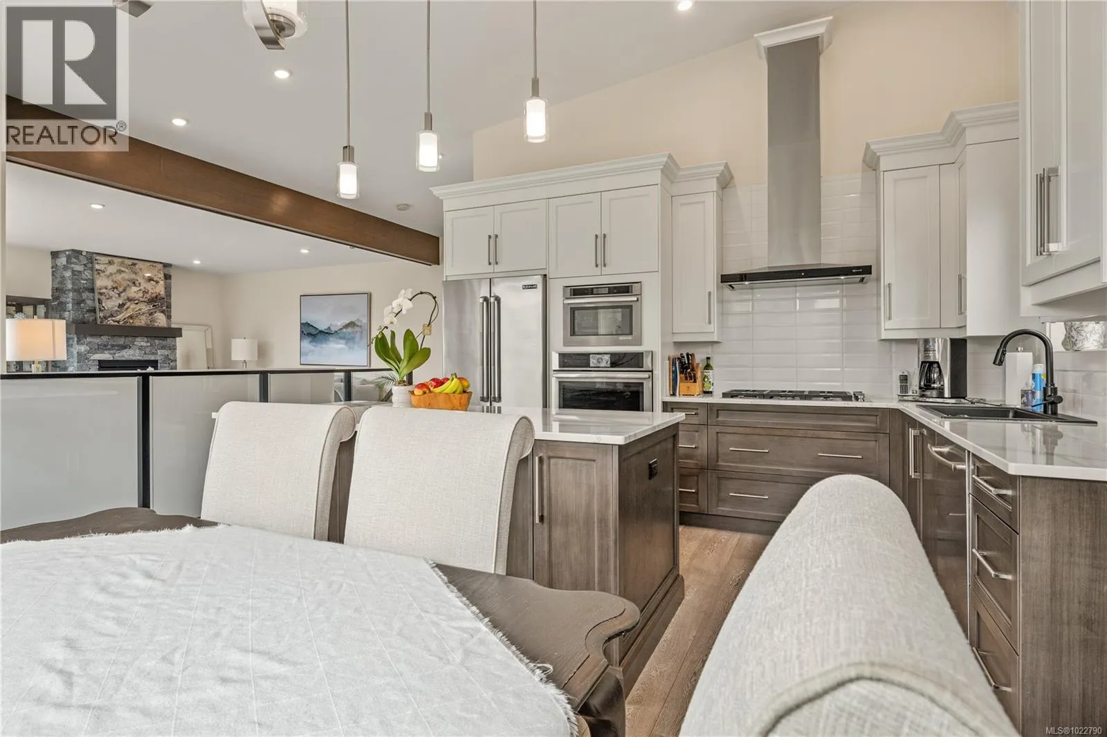 Nestled within Departure Bayâs prestigious Rockwood Heights neighbourhood, this exceptional residence presents the ideal opportunity to own a slice of paradise. Amphion Terrace is a quiet, one-way street, creating a low-traffic, private setting reminiscent of a peaceful Whistler enclave, whilst offering a prime location, close to schools, recreation, shopping, and dining options. Boasting a striking modern West Coast design, this home offers 2,534 sqft of well-planned living space with a functional floor plan, three beds, and three baths. Showcasing tasteful, timeless finishes, thereâs a 14-foot vaulted ceiling accentuated by wood beams, and a custom stone fireplace surround with a fir mantle crafted from wood sourced directly from the property. Large windows maximize the southern exposure, bathing the space in natural light and providing unobstructed views of the city and Mt. Benson, while white oak tongue and groove flooring adds elegance underfoot. Arguably the heart of the home, the gourmet kitchen features high-end JennAir appliances, solid surface counters, and a large island, setting the stage for entertaining or for spending time together as a family. The primary suite is down the hall and offers a spectacular 5-piece, spa-like ensuite, while two further bedrooms and a spacious living/media room are downstairs. Equally impressive are the outdoor living spaces, ideal venues to enjoy morning coffee or upon which to unwind after a busy day, with beautiful trees that enhance privacy and a thoughtful landscape design creating a low-maintenance space requiring less time spent on upkeep. Situated in a serene and picturesque setting, this spectacular home truly is the ideal package that is sure to tick all the boxes. Don't waitâschedule your viewing today to experience it for yourself! Data and measurements provided by Innovative Property Media, BC Assessment, and the Property Report; verify if important (id:27476)