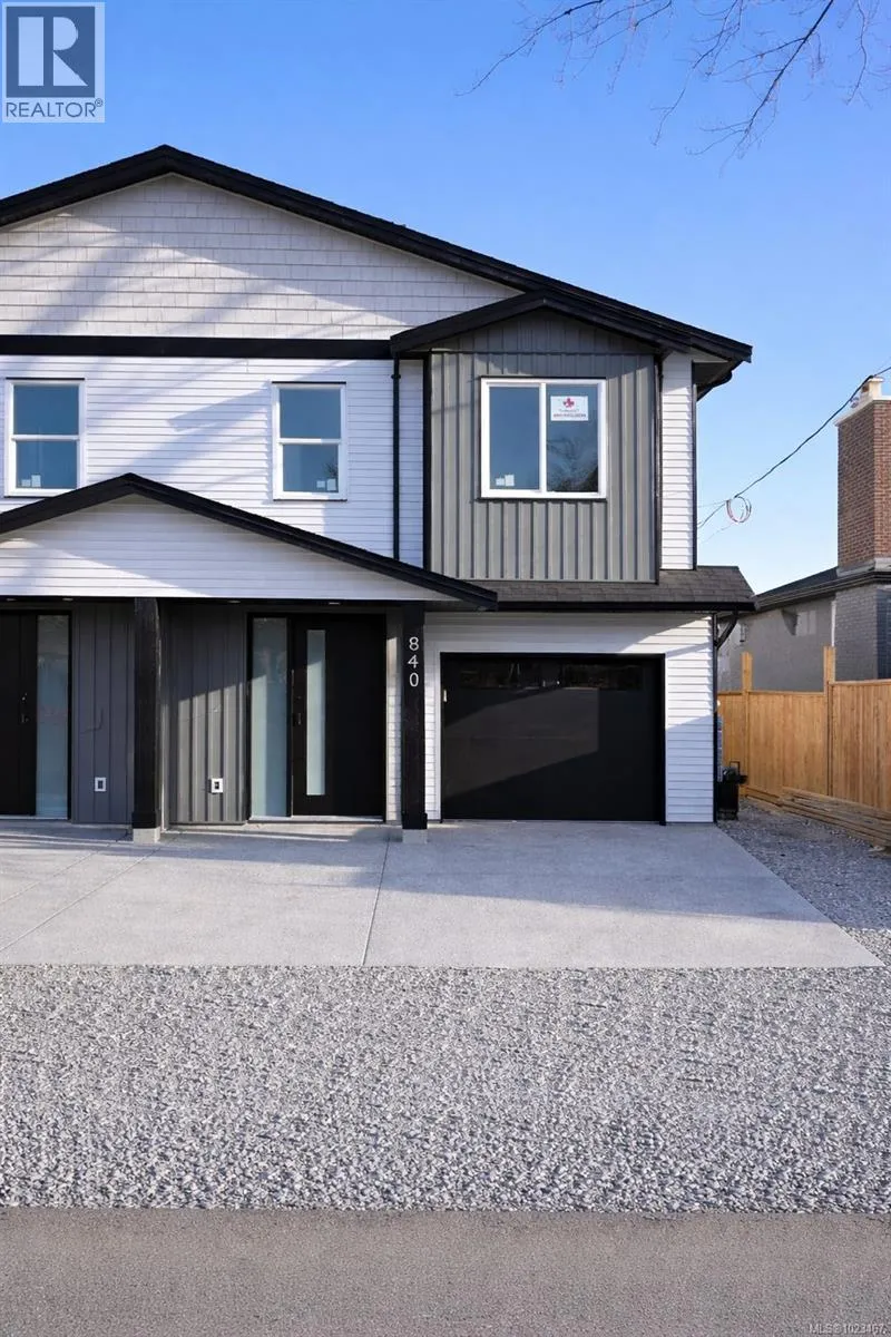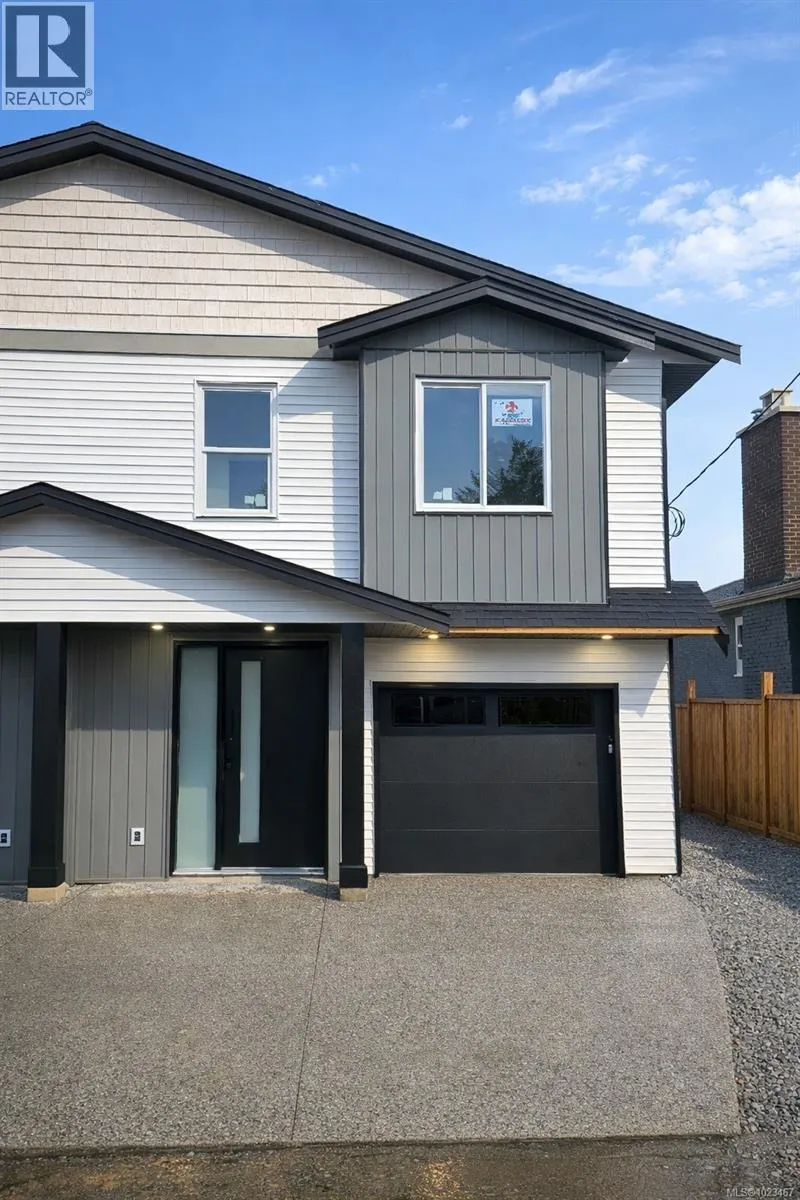 Discover modern living in this stunning newly constructed half duplex, perfectly positioned in the heart of central Nanaimo for ultimate convenience. Priced plus GST, this 3-bedroom, 3-bathroom home spans 1,670 sqft of thoughtfully designed space, blending style, comfort, and efficiency. Step inside to an open-concept layout flooded with natural light. The primary suite is a true retreat, featuring a private deck for morning coffee or evening relaxation, a spacious walk-in closet, and a luxurious ensuite bathroom. Two additional bedrooms offer flexibility for family, guests, or a home office. Enjoy the convenience of a dedicated laundry room, plus all appliances included so you can settle in effortlessly. Stay comfortable year-round with an efficient electric heat pump and natural gas furnace. Outside, a world of amenities awaits: stroll to nearby parks for outdoor adventures, shops for daily essentials â all contributing to a vibrant lifestyle. (id:27476)