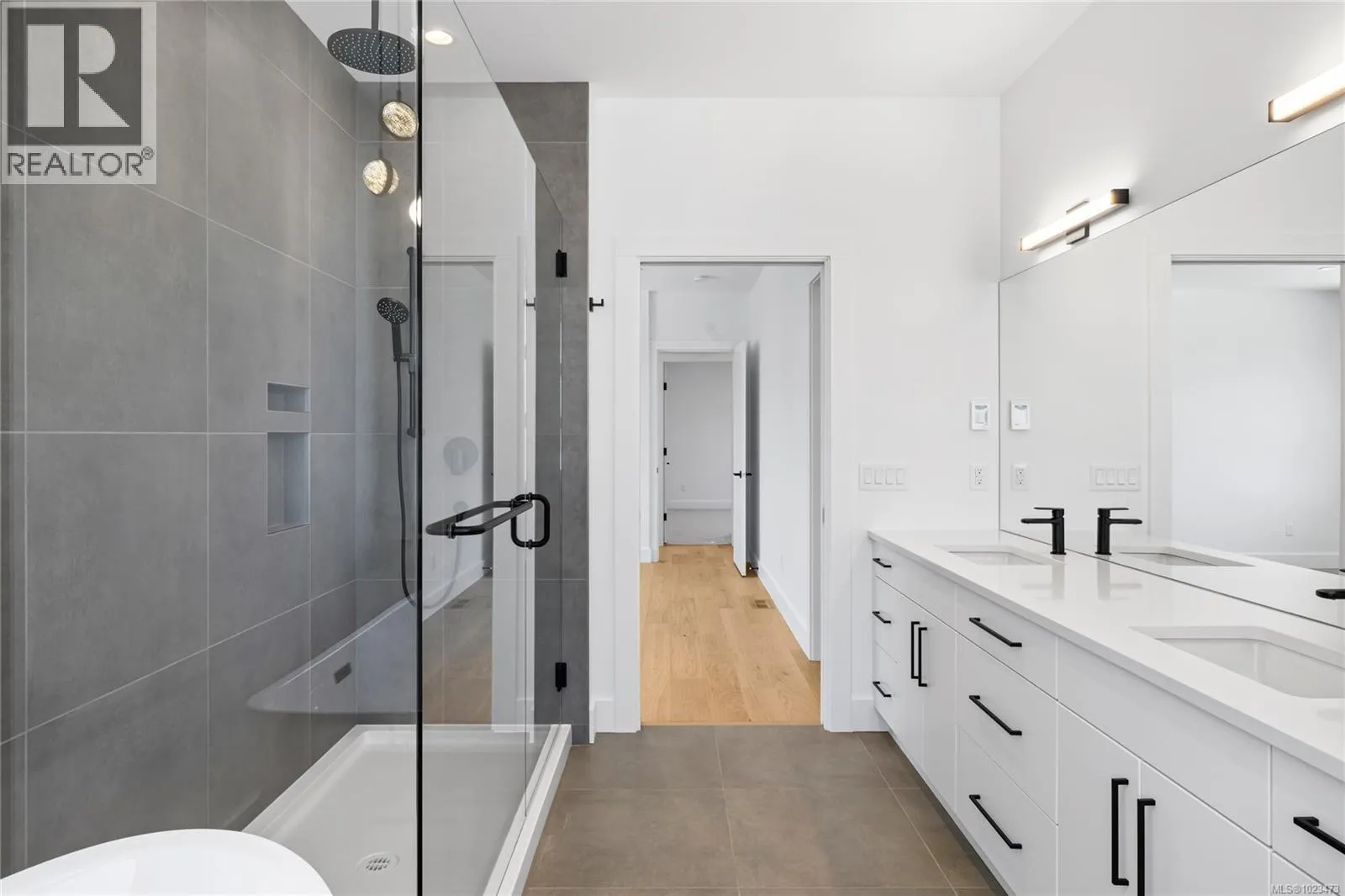 Welcome to your dream home in the heart of Cottle Creek Estates. This stunning brand-new residence offers 3 spacious bedrooms plus a versatile den, combining modern design with timeless finishes throughout. The chef-inspired kitchen is a true centerpiece, featuring premium appliances, custom cabinetry, and quartz countertops, all flowing seamlessly into the bright open-concept living space. The living room is anchored by a striking 60-inch fireplace framed with rich oak cabinetry, creating a warm and inviting atmosphere. Retreat to the luxurious primary suite complete with a spa-style ensuite showcasing floor-to-ceiling tile, rainfall shower, freestanding tub, dual vanity, and hot water on demand. Thoughtful upgrades include engineered hardwood flooring, and EV charger rough-in. Outdoors, enjoy both a welcoming front deck and a private rear patio ideal for entertaining, complete with BBQ hookup and hot tub-ready power, all with Linley Valley trails just steps away. (id:27476)