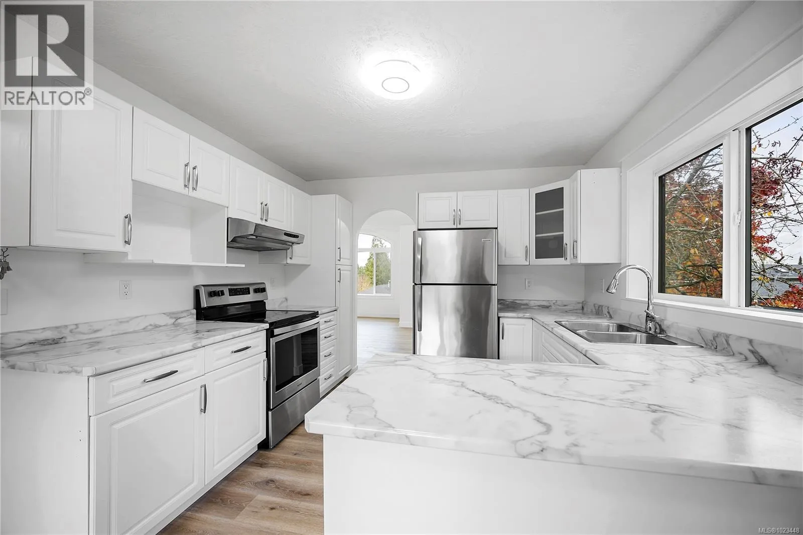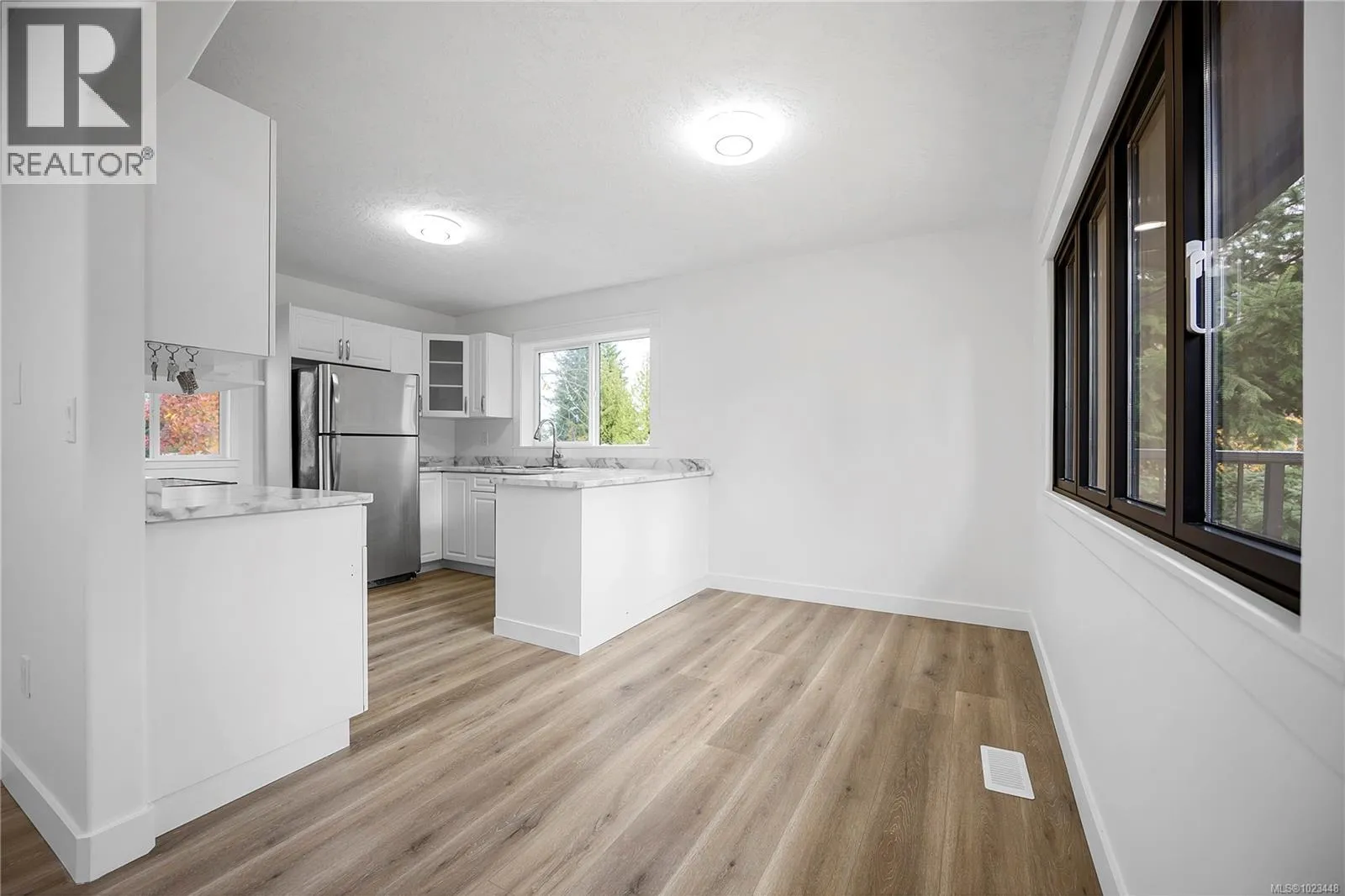 Welcome to 6001 Butcher Road, a beautifully updated 5-bedroom, 3-bathroom home offering nearly 2,400 sq ft of bright, modern living in one of North Nanaimoâs most sought-after neighbourhoods. Sitting proudly on a sunny corner lot, this residence blends thoughtful updates, long-term efficiency, and exceptional indoorâoutdoor living. The exterior has undergone a substantial upgrade, featuring new Hardie-plank siding with R5 insulation, a brand-new standing-seam metal roof with engineered air-gap system, new windows, and a new furnace and heat pump for year-round comfort (2025). Together, these improvements deliver durability, energy savings, and striking curb appeal enhanced by new exterior lighting and fresh landscaping. Inside, the home feels bright, calm, and move-in ready. Wide-plank high quality laminate floors, updated bathrooms, new lighting, and fresh paint elevate each space. The main level offers excellent flow: a spacious & bright kitchen, an adjacent dining area, a large family room, and a generous living room with a beautiful vaulted feature window. Three bedrooms complete this upper level, including a comfortable primary suite with full ensuite. The lower level is ideal for families, guests, or extended living arrangements. It features two additional bedrooms, a full bathroom, a large recreation room, laundry room, storage, and a welcoming foyer. Roughed in plumbing for wetbar or suite potential! Outdoor living shines here, with a massive entertainerâs deck, patios, and a private fenced yard offering plenty of room to relax, garden, or gather. Carriage home potential also exists! Located just minutes from top-rated schools (McGirr Elementary, Dover Bay Secondary), neighbourhood parks, Woodgrove Centre, grocery stores, restaurants, and Nanaimoâs best beaches such as Neck Point and Piperâs Lagoon. A beautifully updated, efficient, and versatile home in an unbeatable North Nanaimo location! Measurements approx. (id:27476)