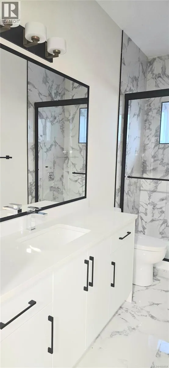 Enjoy dynamic ocean views of Coastal Mountains, ferries, & seasonal cruise ships from your main floor balcony & master bedroom balcony in this beautiful brand-new ready to move in home. Designed for modern family living, this 5-bedroom, 5-bathroom residence features a bright open layout with electric fireplace, quartz countertops, beautiful backsplash, sleek vinyl flooring, & stylish modern lighting throughout. Main level offers a spacious kitchen, dining area, family room, & a convenient full bathroom. Upstairs are 3 generous bedrooms, including a luxurious primary suite & 2nd full bathroom. A dedicated media room adds extra versatility for entertainment or relaxation with a bar & 2 pc bathroom for convenience plus a 2-bedroom suite-ready space with a full bath, ideal for extra income or extended family. Perfect for busy families seeking a low-maintenance, contemporary home with incredible views. GST is applicable; all measurements are approximate & should be verified if important. (id:27476)