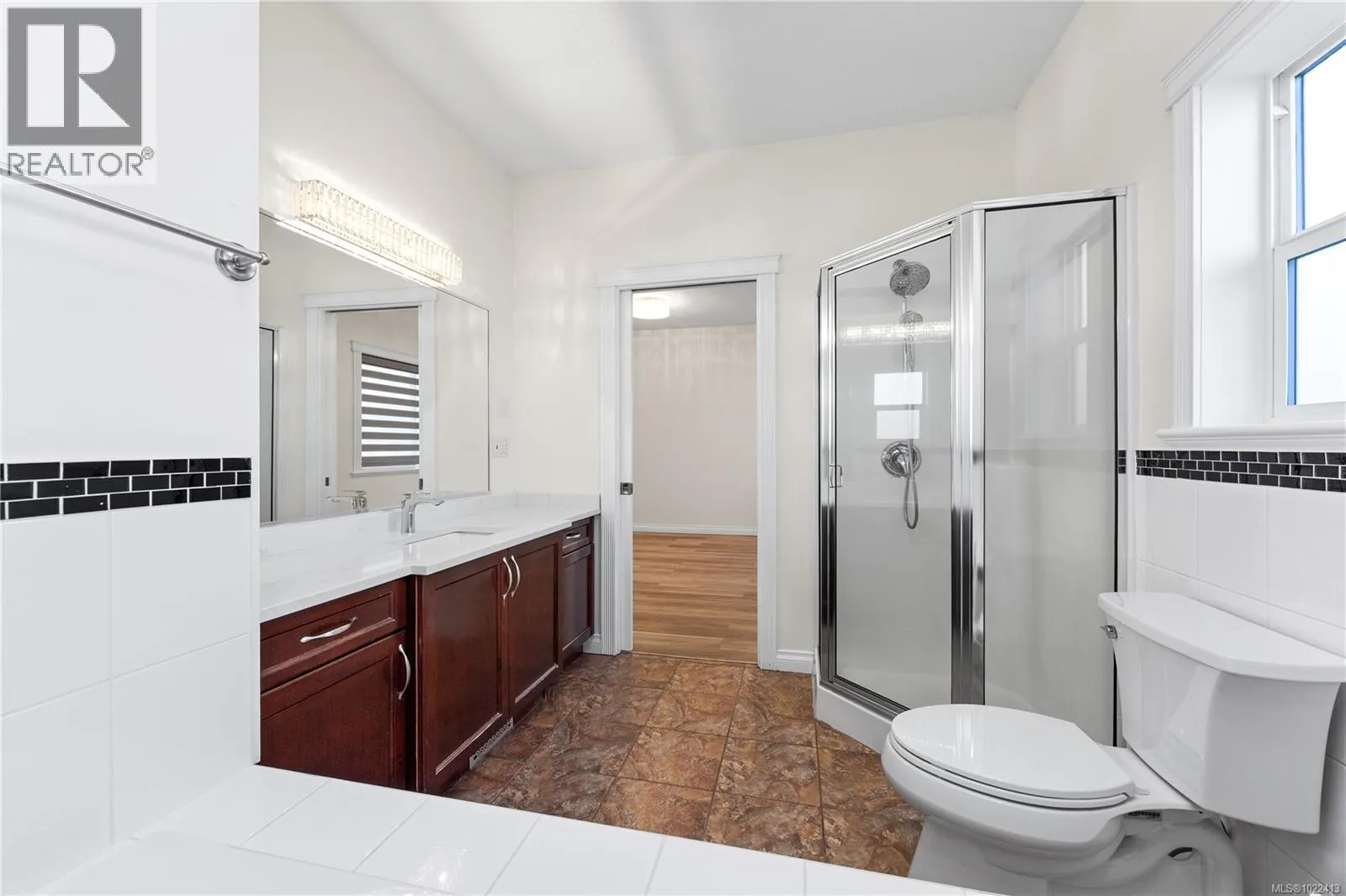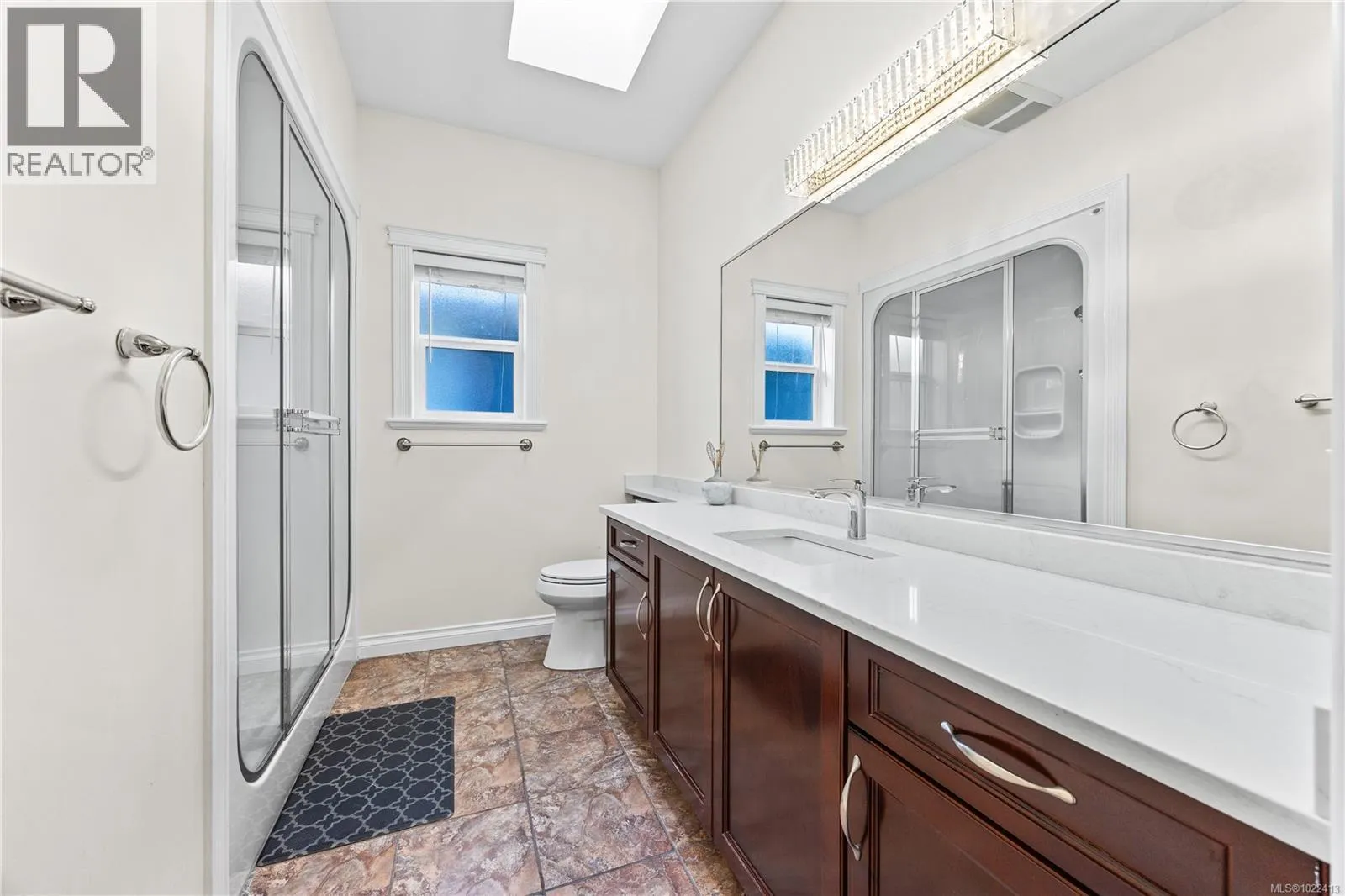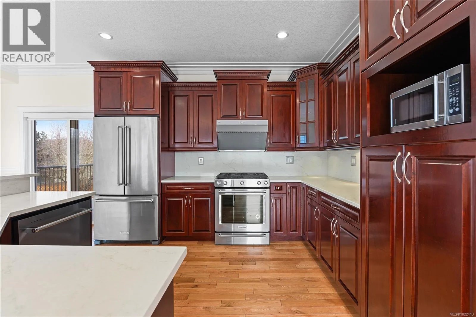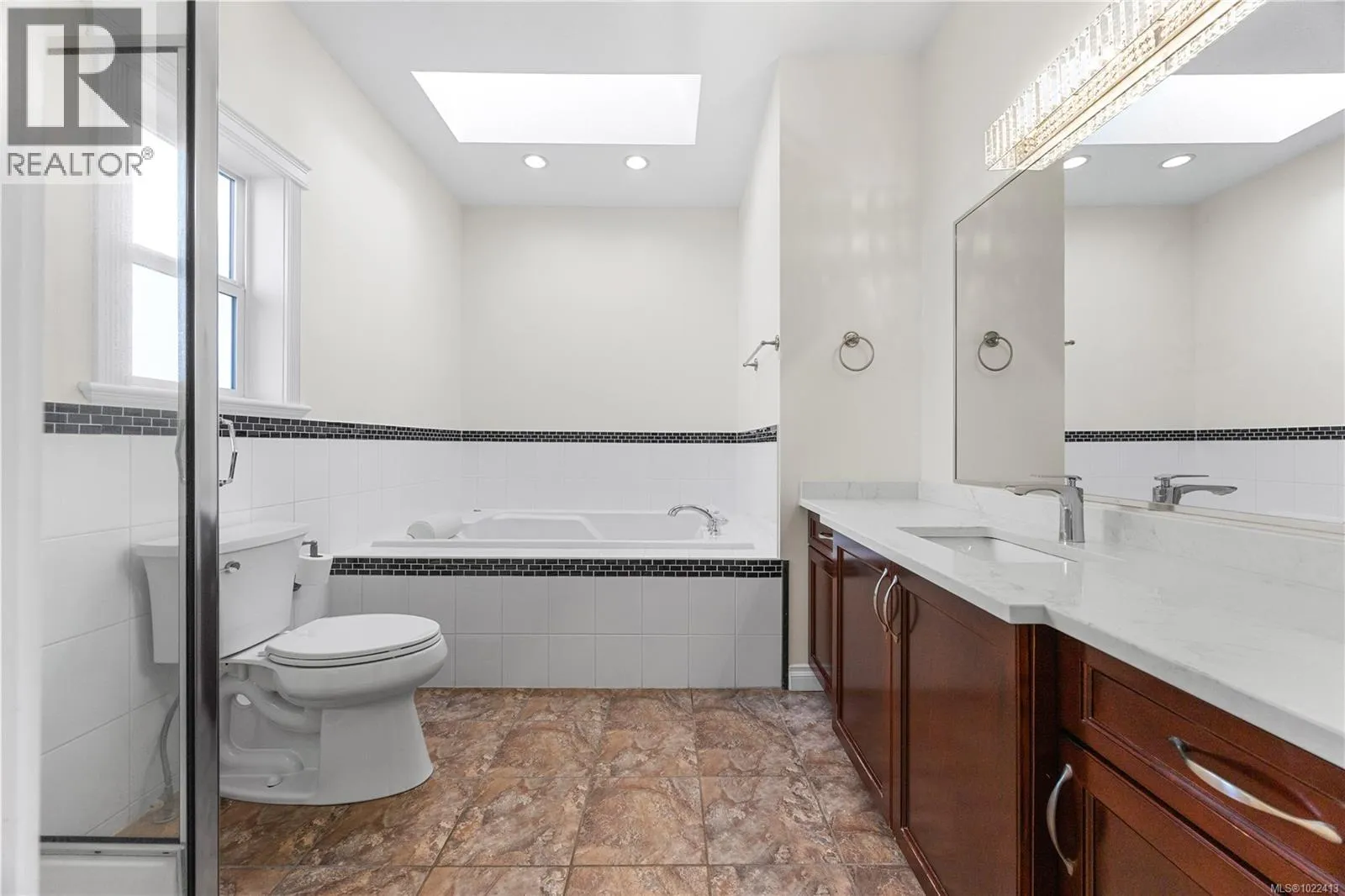 Located in notable community of North Nanaimo, this custom-built home sits on flat, private lot within walking distance to beaches, shopping mall, parks, schools. Offering over 3,300 sq ft living space, it features 6 bedrooms & 4 bathrooms, including a legal one-bedroom suite w/ separate entrance, ideal for extended family/rental income. Main level welcomes you with a gracious foyer, 9 ft ceilings, hardwood flooring, crown molding, skylights, large windows providing abundant natural light. Kitchen is well designed w/ custom cabinetry, island with breakfast bar, gas stove, SS appliances. Spacious primary bedroom includes walk-in closet & ensuite with jetted tub, separate shower. Lower level offers a large media/recreation room with wet bar and additional living space. Outdoors features include front & rear decks, fenced backyard, sprinkler system. Energy-efficient forced air heating with heat pump. Quick possession available. Measurements are approximate; verify if important. (id:27476)