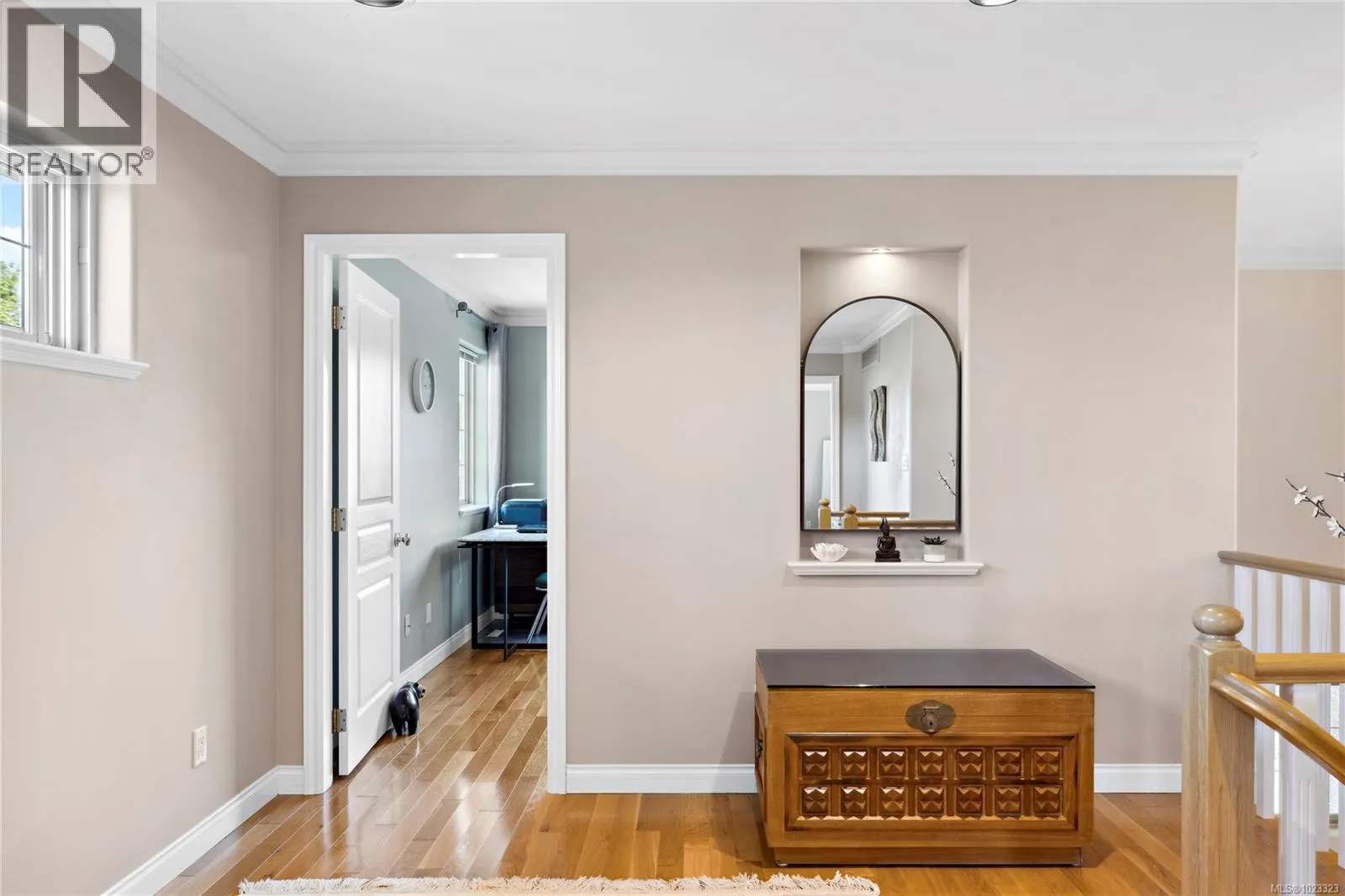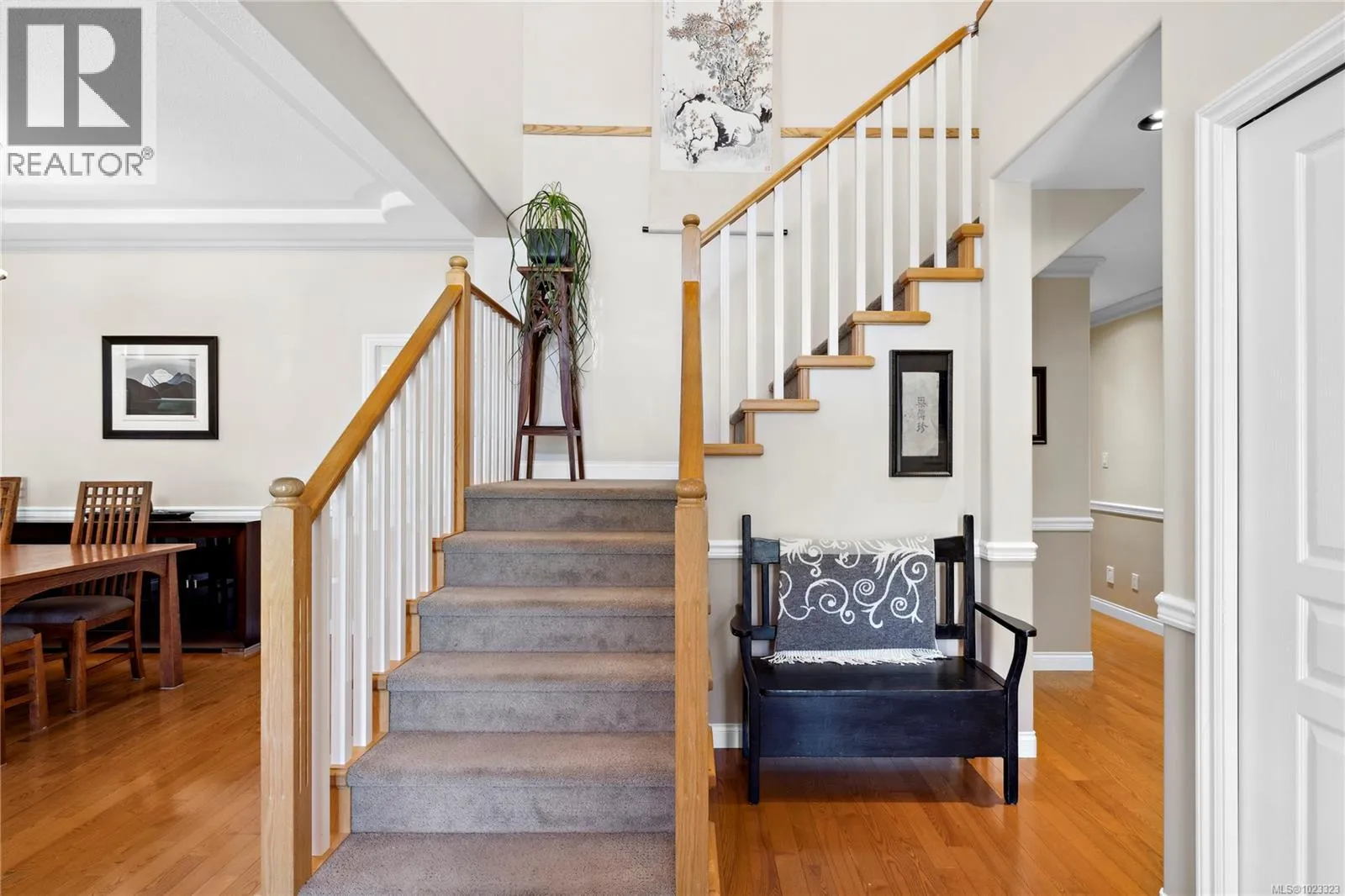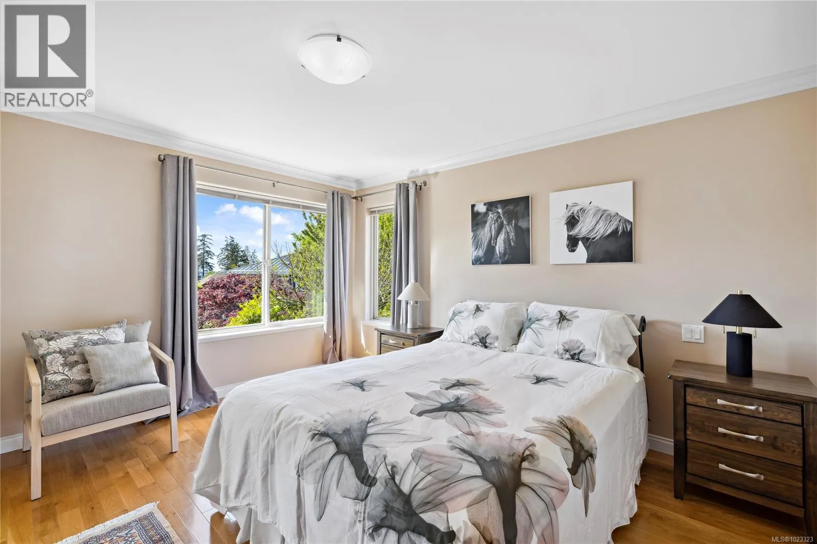 Immaculate 3-bed+den, 3-bath North Nanaimo home backing onto the tranquil Westhaven Park. Thoughtfully renovated with flexibility in mind, the layout features two primary bedroomsâeach with its own ensuiteâone located on the main level and one upstairs, making it ideal for families, guests, or those seeking main-level living. With 9-foot ceilings and hardwood floors throughout, the home is full of character and charm, while also offering modern updates and a heat pump to ensure year-round comfort. Mature landscaping creates a private retreat, and the sunroom offers a relaxing space to unwind or entertain while overlooking peaceful green space. Additional features include a den for added workspace or guest use, and ample RV or boat parking for convenience. Located near Bayshore Viewpoint with waterfront access, this property highlights the best of coastal living in a quiet and desirable neighbourhood. All data and measurements are approximate and should be verified if important. (id:27476)