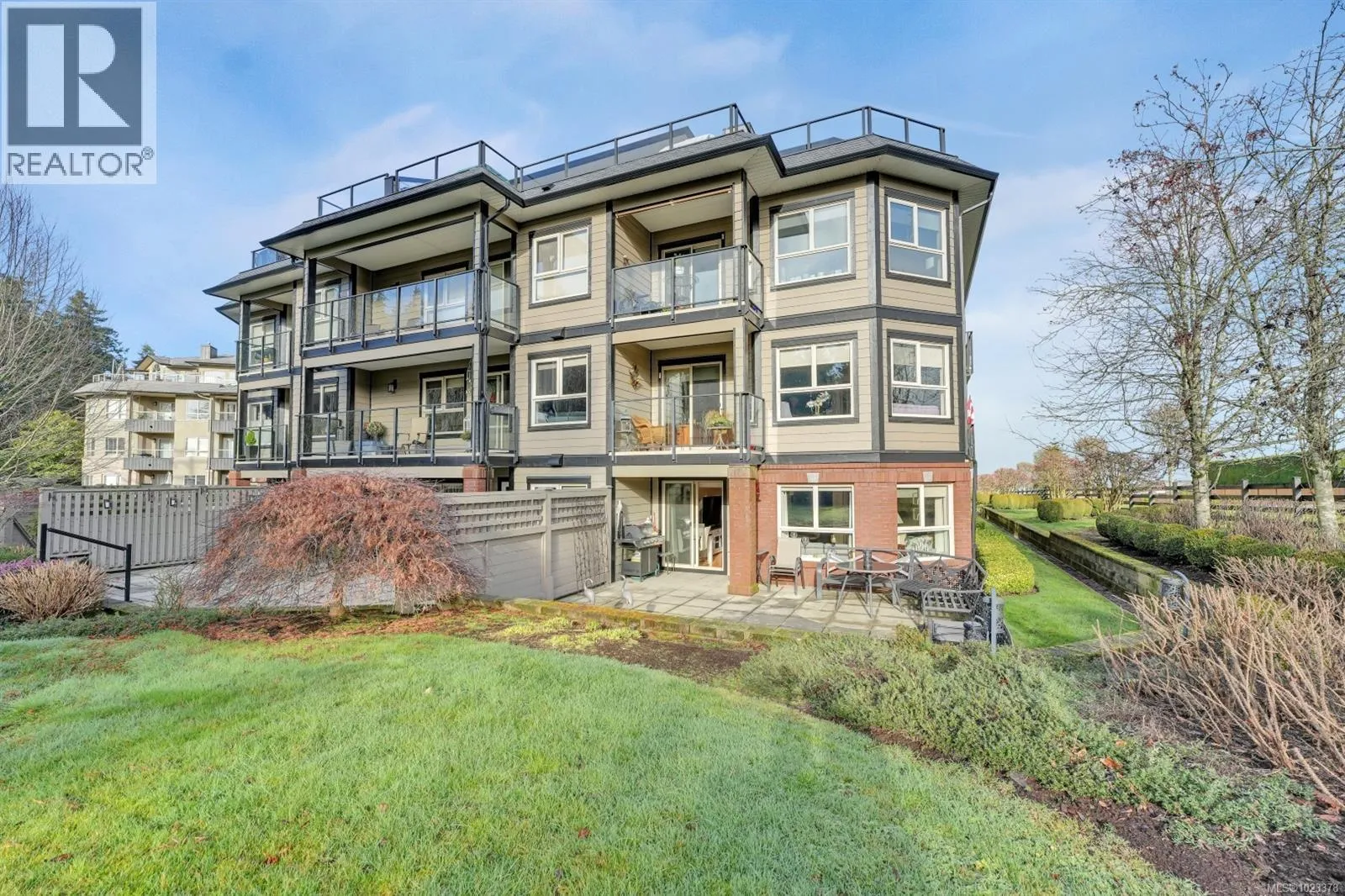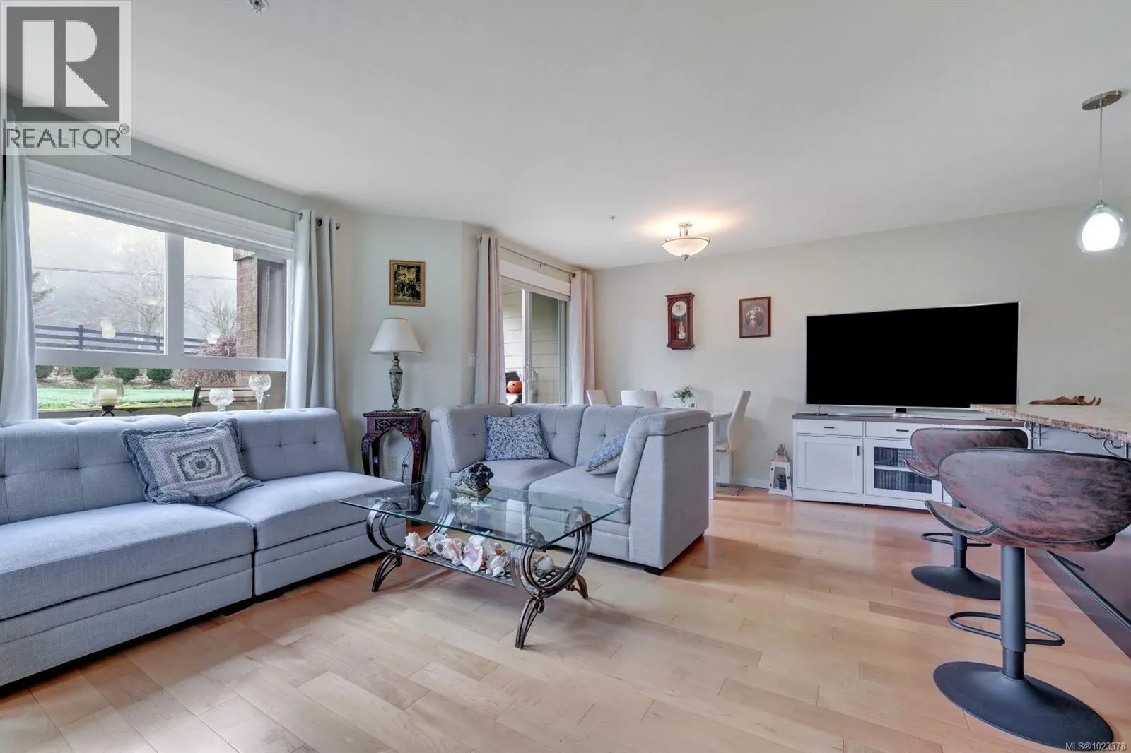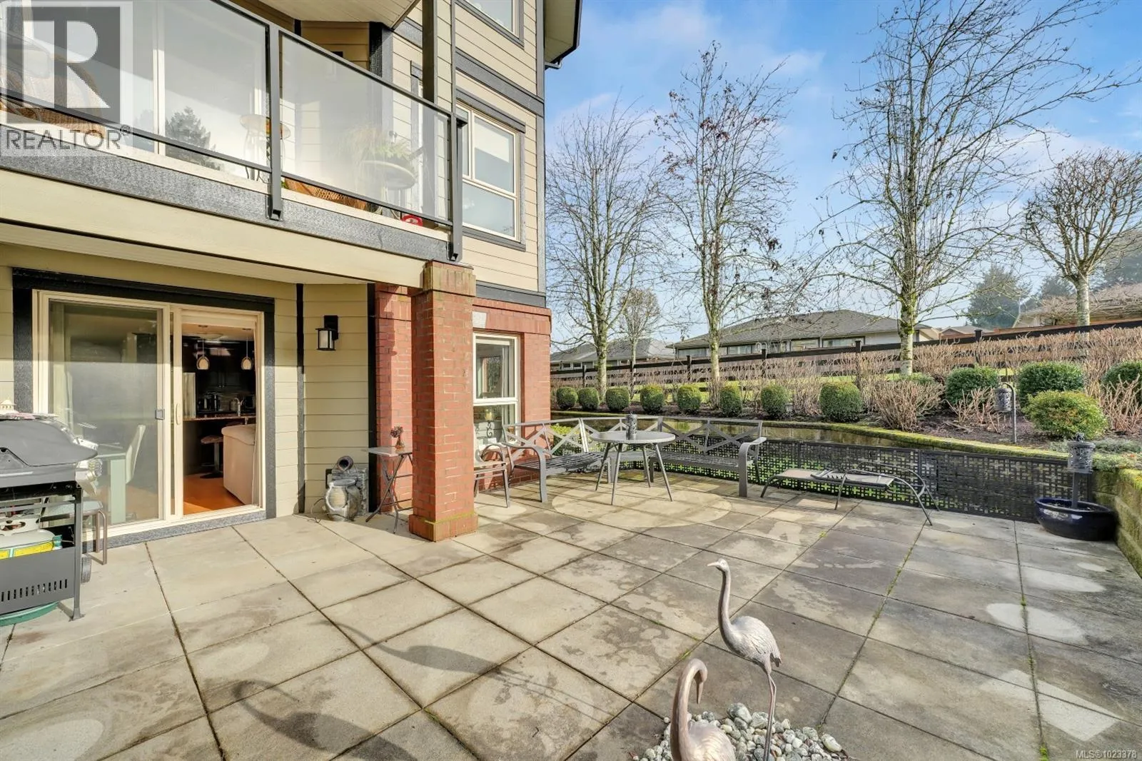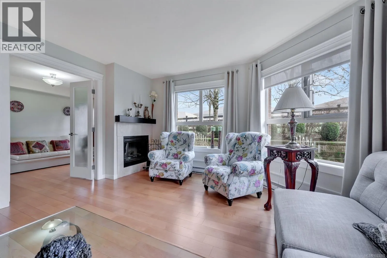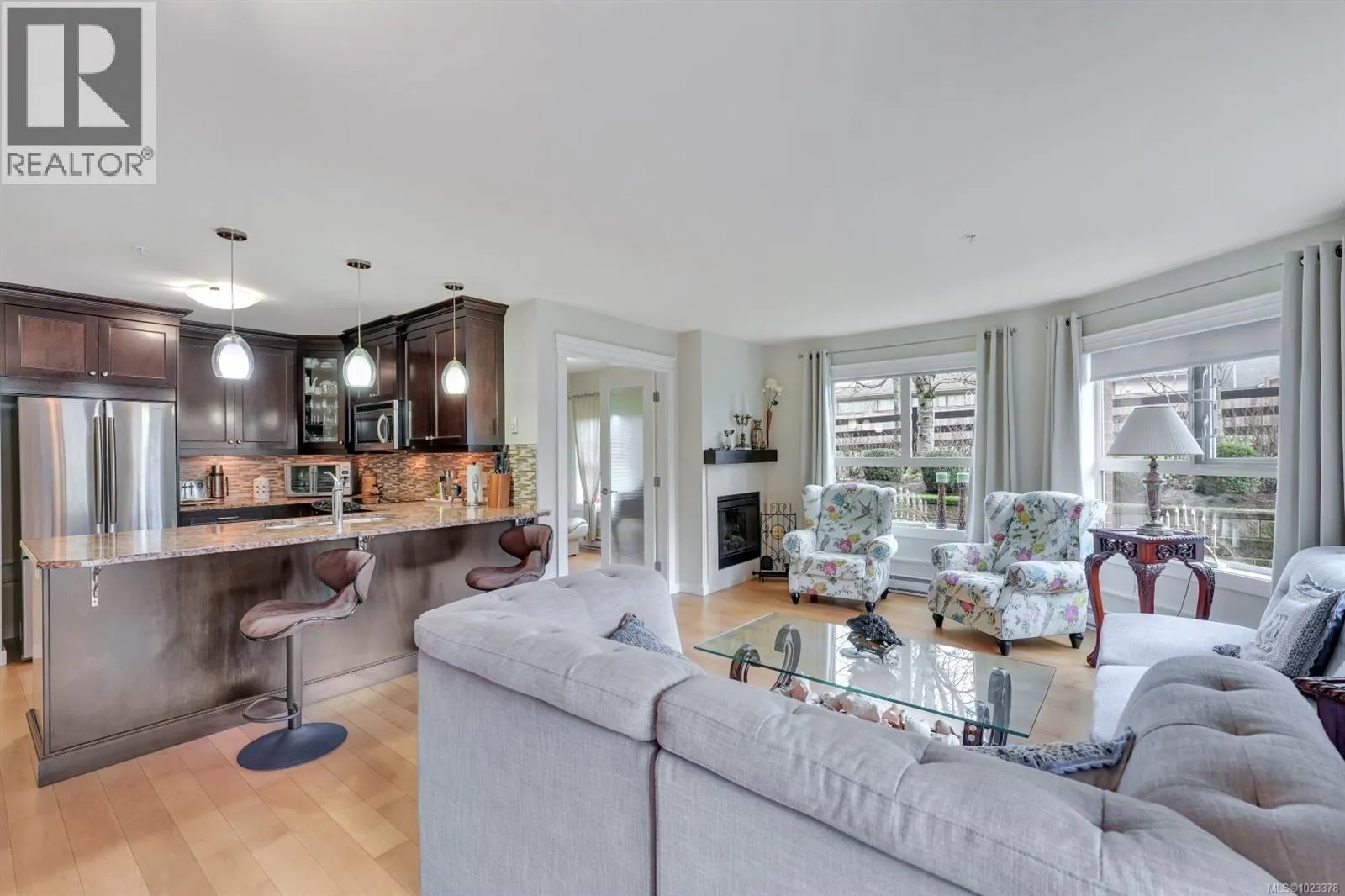 Welcome to this beautifully maintained 2 bedroom, 2 bathroom condo with a bonus den and an impressive 20â x 21â walk-out patio, perfect for outdoor living. Located in one of North Nanaimoâs most desirable and well-managed 55+ complexes, this home offers a convenient and comfortable lifestyle. The open-concept layout features a bright living room with an accent fireplace, a spacious kitchen with stainless steel appliances, and excellent flow throughout. Enjoy proximity to parks, the ocean, transit, and major amenities including Woodgrove Centre, Costco, and popular restaurants. The complex offers a welcoming clubhouse for residents to relax and socialize. Includes underground parking and a storage locker. New hot water tank installed in 2025. Dogs and cats permitted with size and number restrictions. All measurements are approximate and should be verified if important. (id:27476)