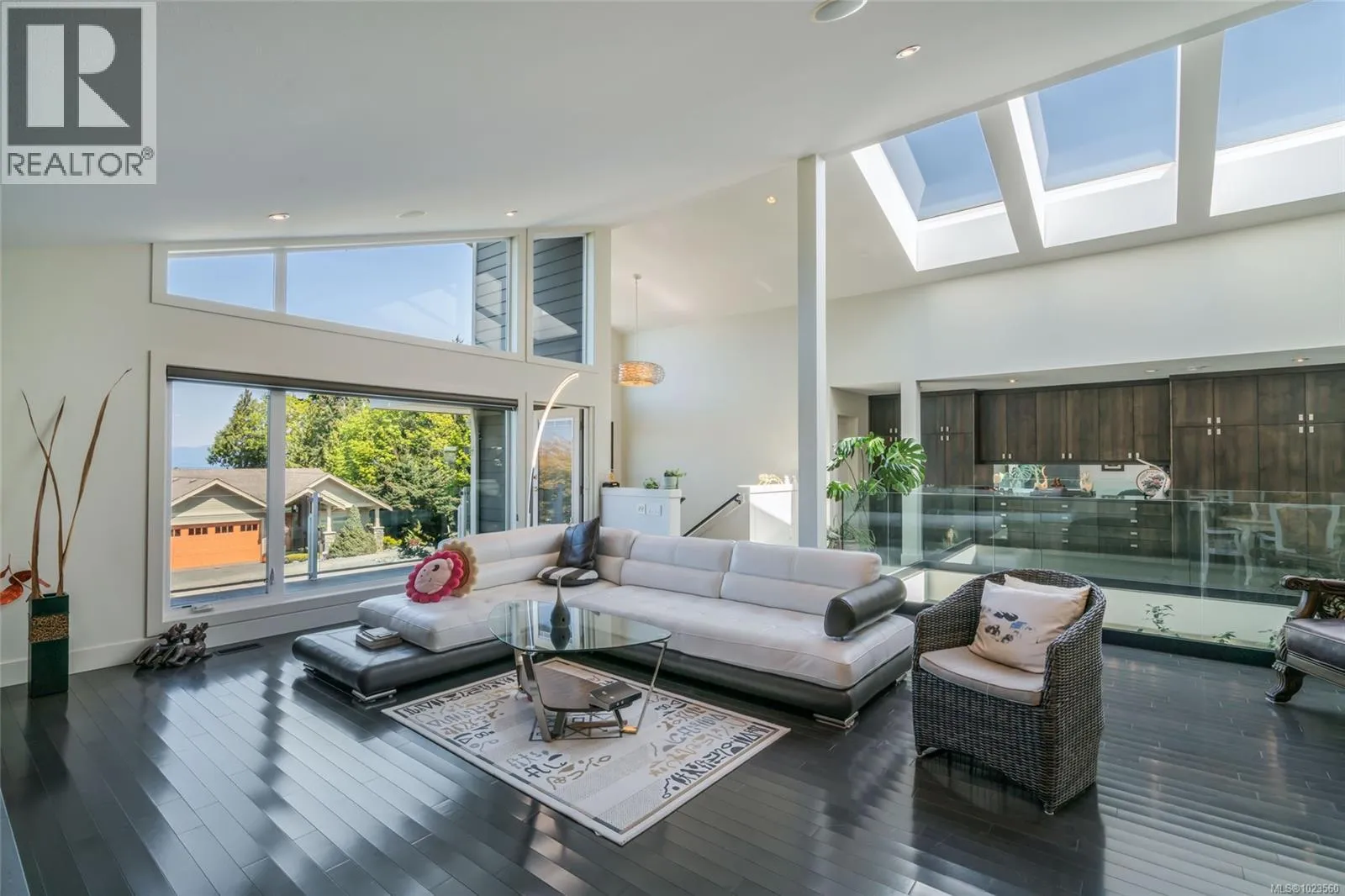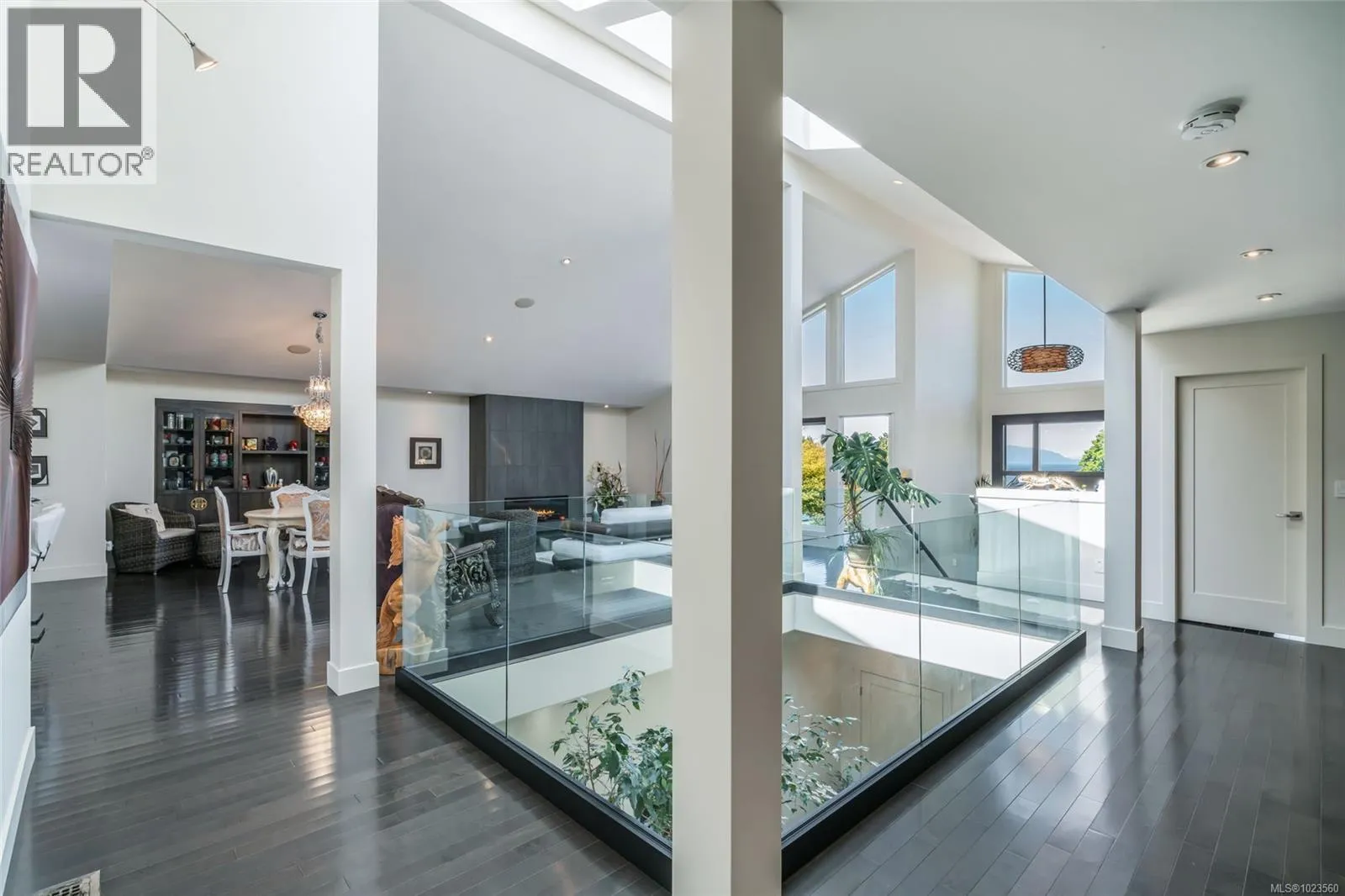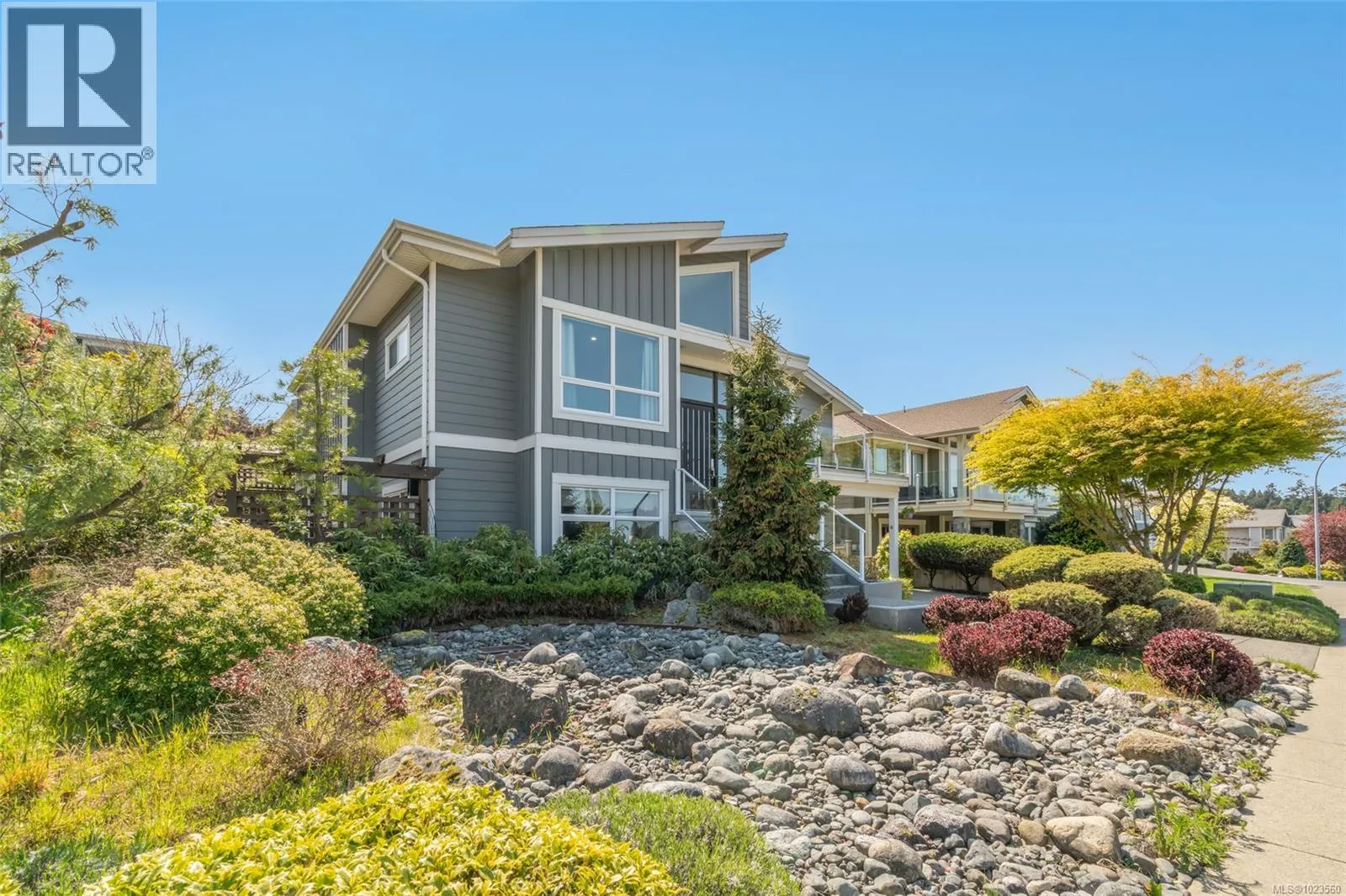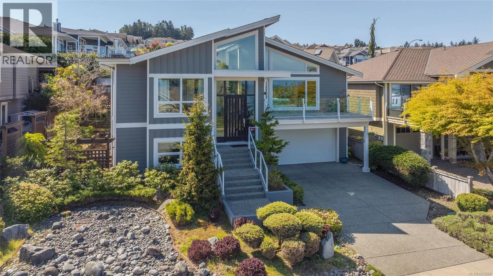 Beautiful and contemporary, this one-of-a-kind executive home in North Nanaimoâdesigned by Chow Low Hammond Architects and built by Windley Constructionâoffers exceptional detail and harmonious design throughout. The striking entry and 2-storey central atrium, with oversized skylights, flood the interior with natural light, embodying a concept of energy, balance, and well-being. The open main floor features custom built-in cabinetry, a gourmet kitchen with quartz countertops, premium Fisher & Paykel appliances, and a secondary pantry kitchen. The lower level includes a library/media room, personal gym, and spa retreat with a Japanese soaker tub and infrared sauna. Heated polished concrete floors, a forced air heat pump, on-demand hot water with return plumbing, and ample skylights add comfort and efficiency. Enjoy spectacular sunsets over the Winchelsea Islands from the oceanview front deck or entertain on the sunny back patio. Ideally located near schools, parks, and amenities in a semi-waterfront setting. (id:27476)