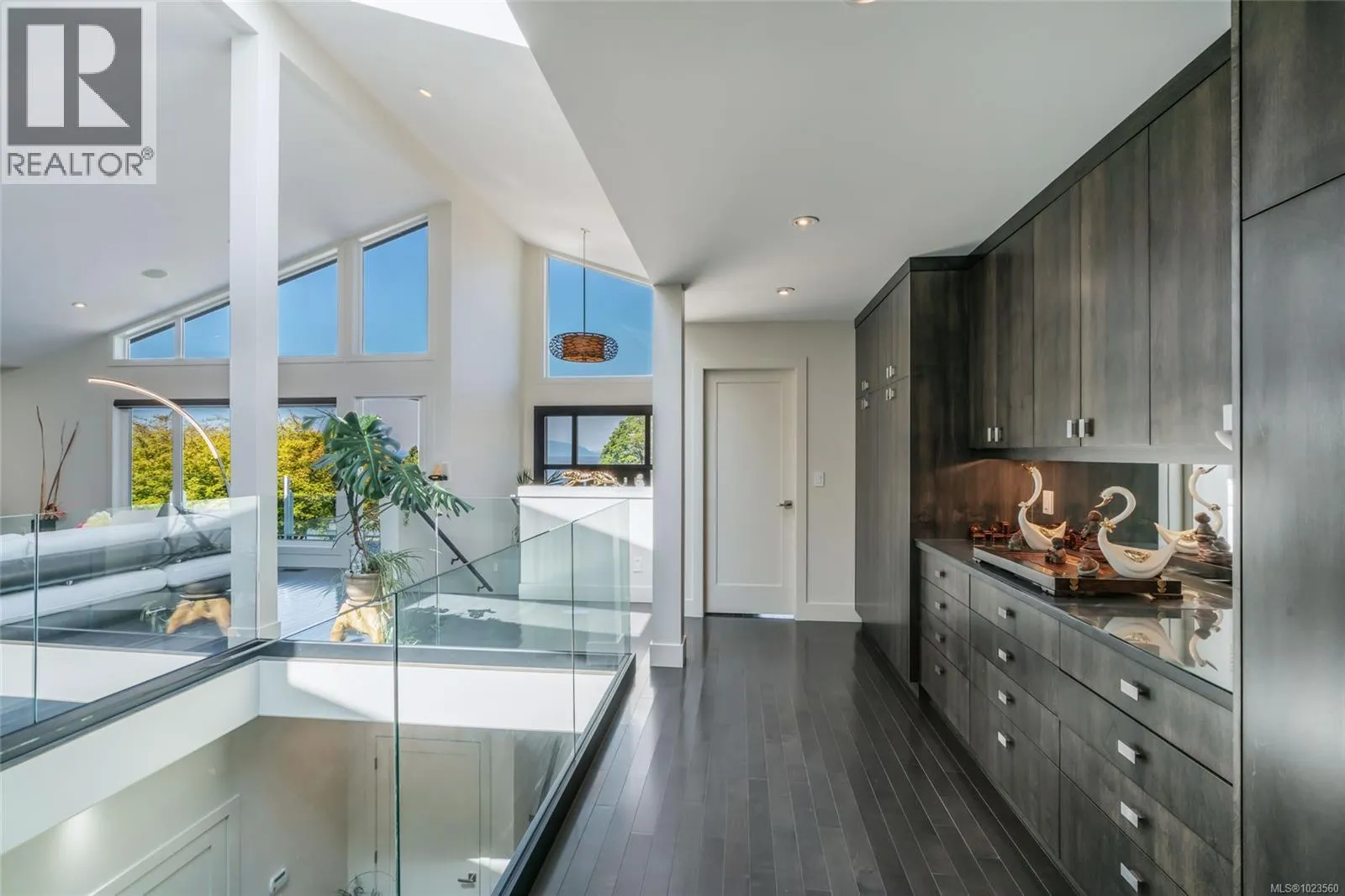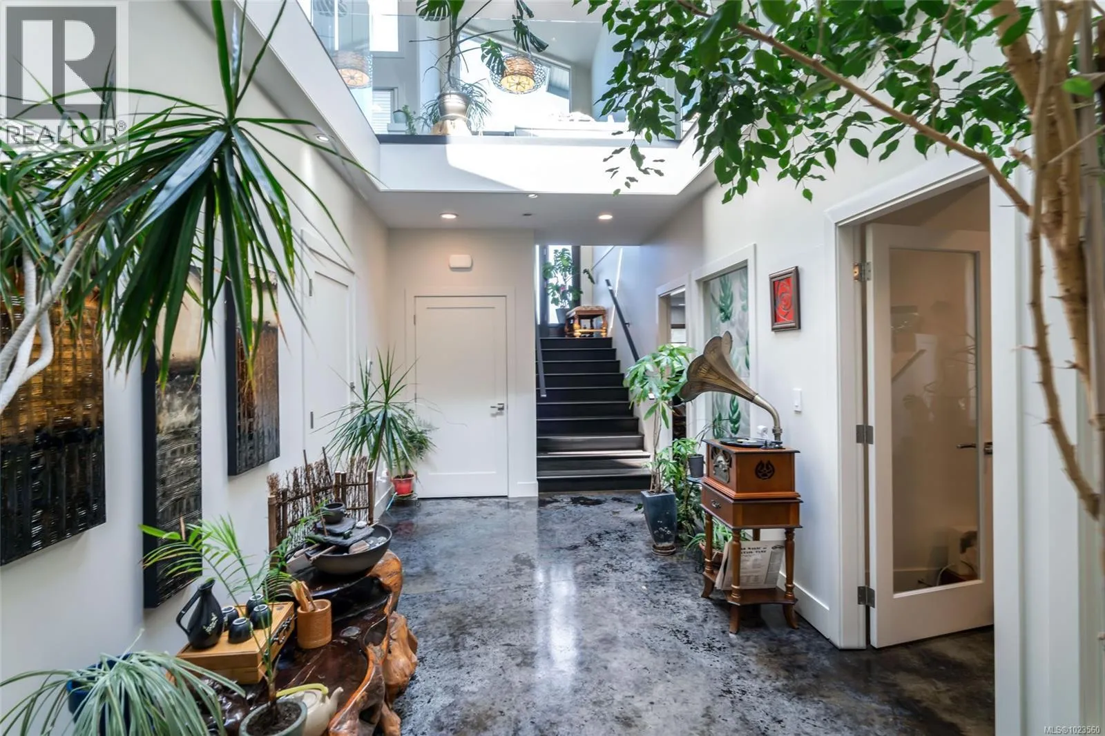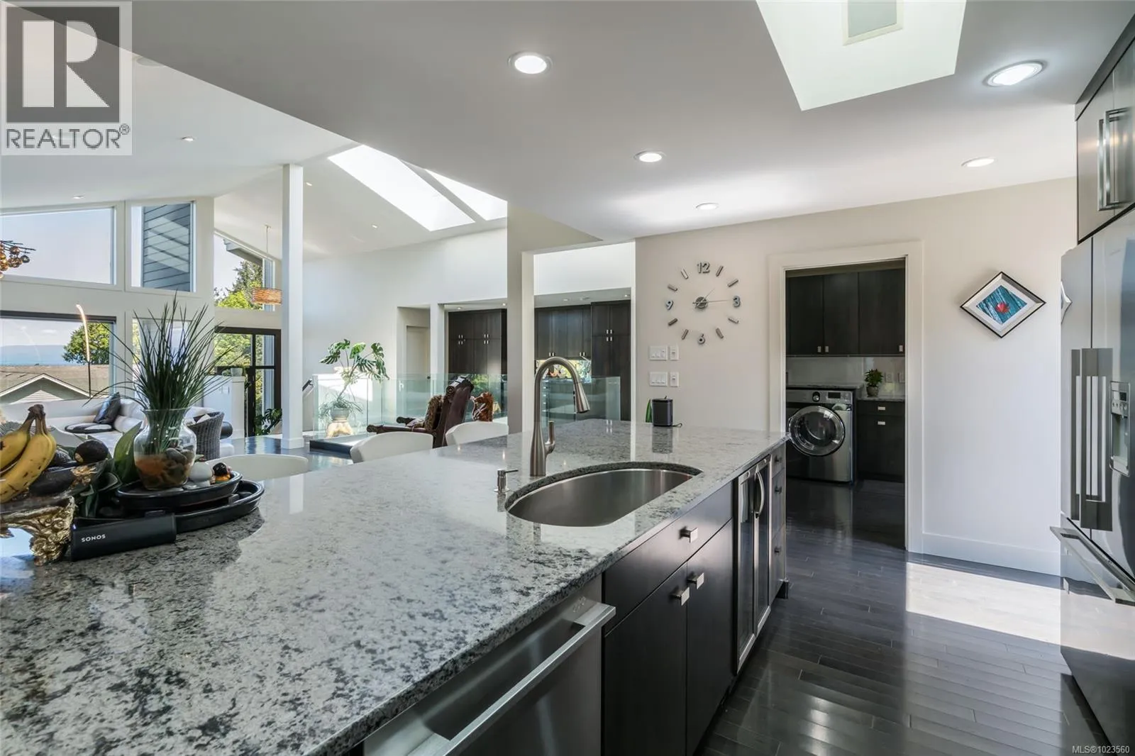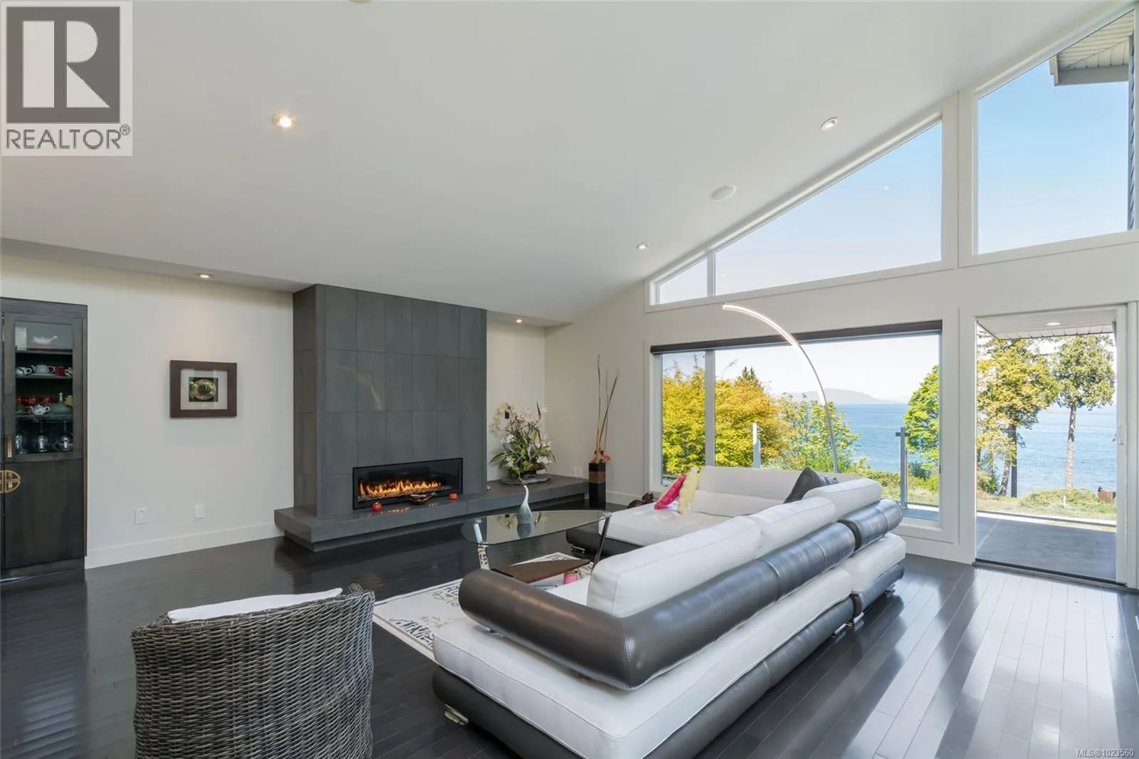 Beautiful and contemporary, this one-of-a-kind executive home in North Nanaimoâdesigned by Chow Low Hammond Architects and built by Windley Constructionâoffers exceptional detail and harmonious design throughout. The striking entry and 2-storey central atrium, with oversized skylights, flood the interior with natural light, embodying a concept of energy, balance, and well-being. The open main floor features custom built-in cabinetry, a gourmet kitchen with quartz countertops, premium Fisher & Paykel appliances, and a secondary pantry kitchen. The lower level includes a library/media room, personal gym, and spa retreat with a Japanese soaker tub and infrared sauna. Heated polished concrete floors, a forced air heat pump, on-demand hot water with return plumbing, and ample skylights add comfort and efficiency. Enjoy spectacular sunsets over the Winchelsea Islands from the oceanview front deck or entertain on the sunny back patio. Ideally located near schools, parks, and amenities in a semi-waterfront setting. (id:27476)