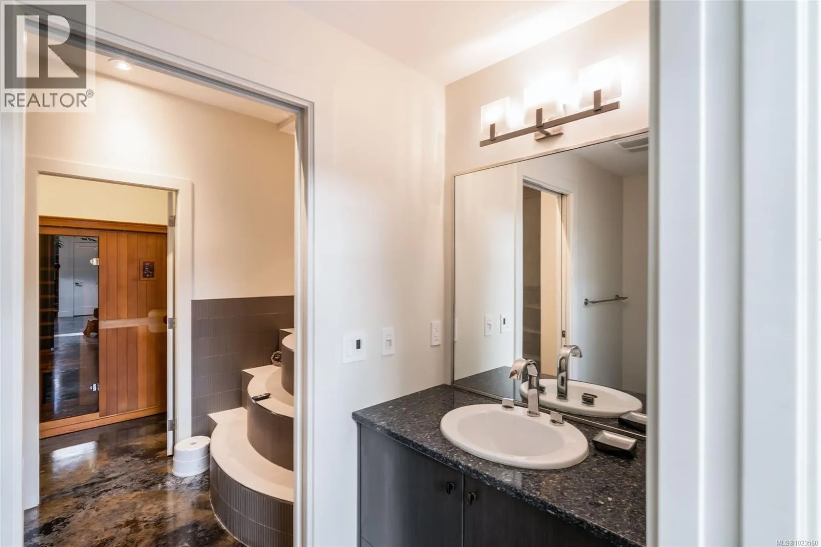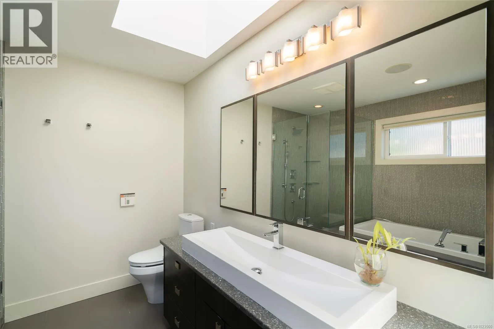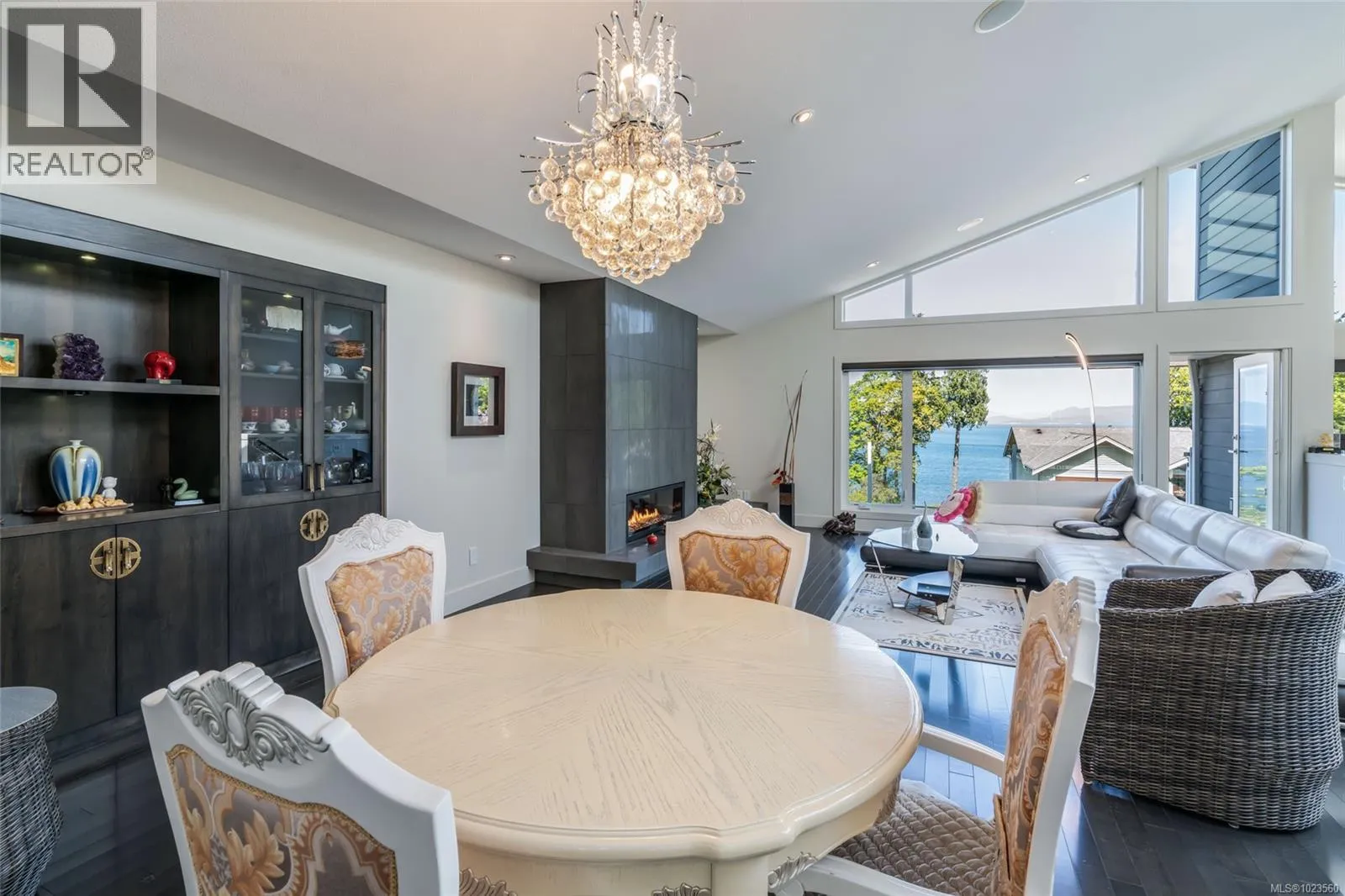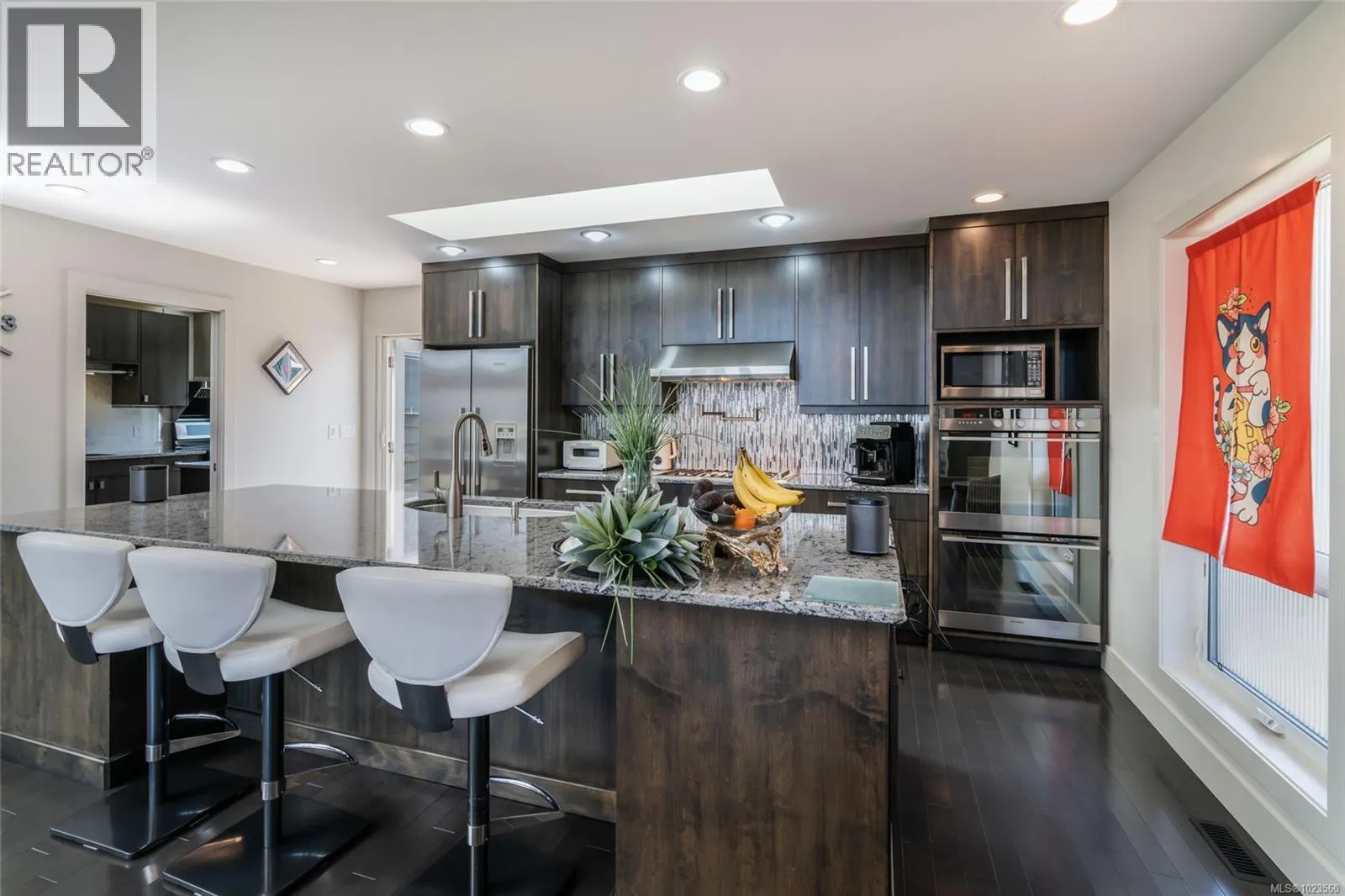 Beautiful and contemporary, this one-of-a-kind executive home in North Nanaimoâdesigned by Chow Low Hammond Architects and built by Windley Constructionâoffers exceptional detail and harmonious design throughout. The striking entry and 2-storey central atrium, with oversized skylights, flood the interior with natural light, embodying a concept of energy, balance, and well-being. The open main floor features custom built-in cabinetry, a gourmet kitchen with quartz countertops, premium Fisher & Paykel appliances, and a secondary pantry kitchen. The lower level includes a library/media room, personal gym, and spa retreat with a Japanese soaker tub and infrared sauna. Heated polished concrete floors, a forced air heat pump, on-demand hot water with return plumbing, and ample skylights add comfort and efficiency. Enjoy spectacular sunsets over the Winchelsea Islands from the oceanview front deck or entertain on the sunny back patio. Ideally located near schools, parks, and amenities in a semi-waterfront setting. (id:27476)