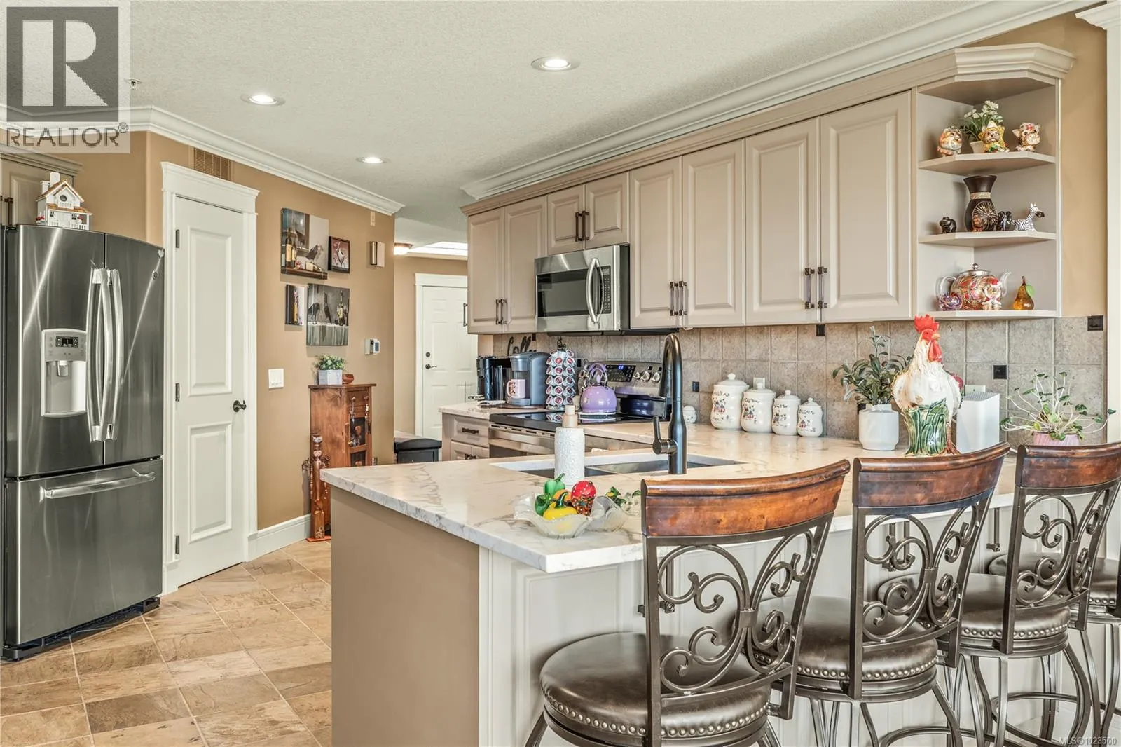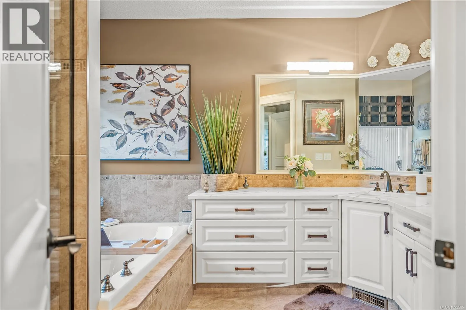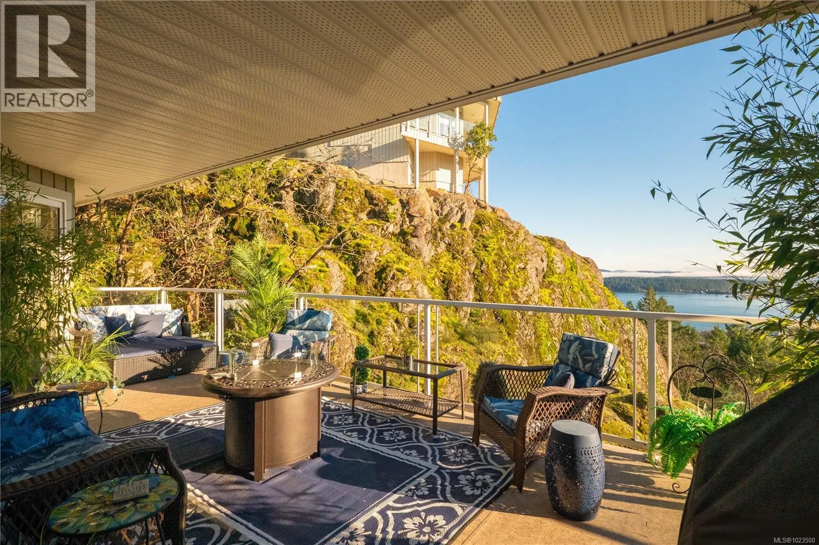Set within the beautifully landscaped, gated 55+ community of Edgewood Estates, this elegant 2 bed plus den, 3 bath home offers incredible ocean, mountain, and harbour views from nearly every room. The main level features a spacious living area with new patio doors and an updated kitchen with new cabinetry, quartz countertops, stainless steel appliances, and a charming breakfast nook - perfect for enjoying sunrise views. The primary bedroom is a true retreat with ocean views, balcony access, blackout blinds, and an updated ensuite with rainhead shower. A dedicated den, laundry room and updated powder room complete the upper level. The lower level provides excellent versatility with a second bed, family room leading to a lower deck, a rec room, and ample storage. New flooring runs throughout, and a separate, private patio is accessed through the laundry room on the main level. A two-car garage, new washer and dryer, and new heat pump and furnace complete this exceptional offering. Don't miss it - book a showing today! (id:27476)
