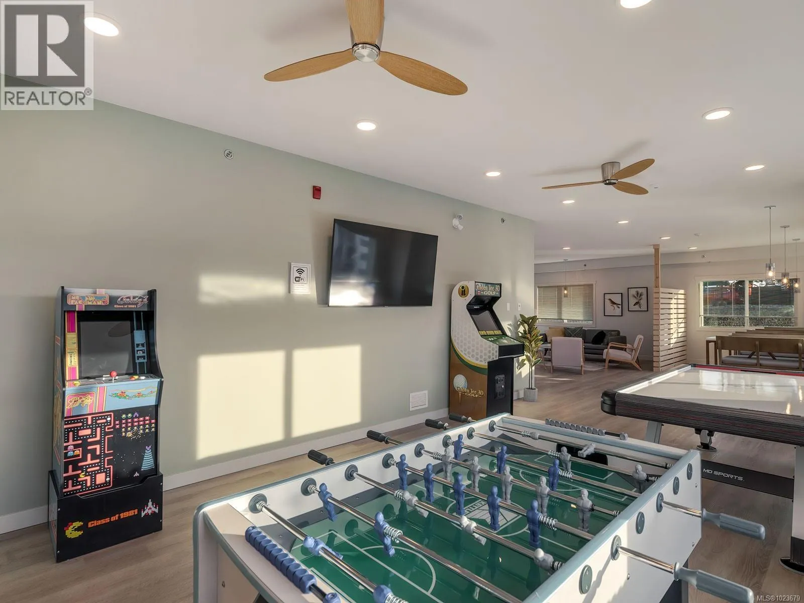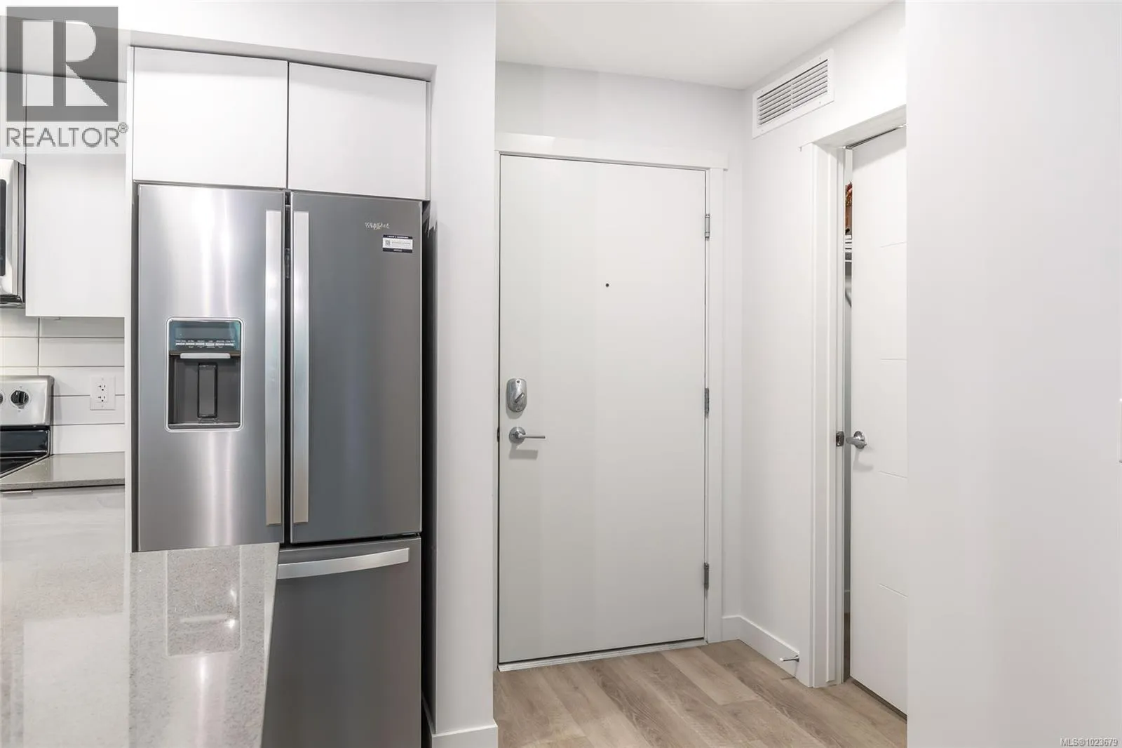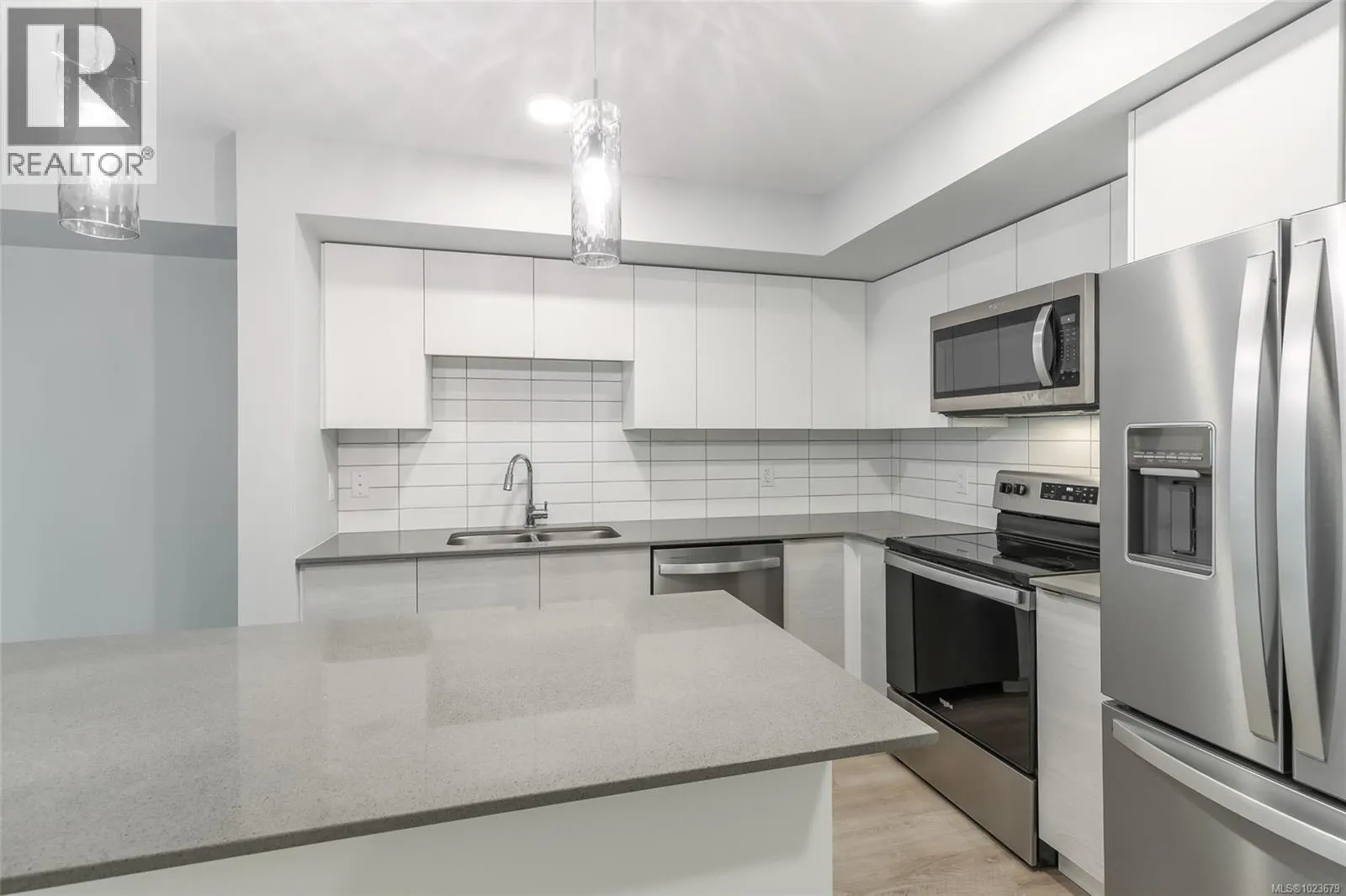This TOP-FLOOR 1-bed, 1-bath unit at Lakeview Terrace is nestled in a private part of the complex with peaceful views of the wooded backdrop. The gourmet kitchen boasts quartz countertops, S/S appliances, a spacious island & tile backsplash. The primary bedroom features a walk-in closet with easy access to the 4-piece main bath. Designed for sustainability, this home is BUILT GREEN® with triple-pane windows, solar panels, an HRV system, heat-pump hot water tank, ensuring lower strata fees & utility costs. The unit comes with 1 underground parking stall along with a bike storage locker. Residents enjoy access to an impressive clubhouse, complete with a gym & yoga area, a community lounge, and a full kitchen space. Ideally located in North Nanaimo, this unit is steps from Long Lake, walking trails, and transit routes, with Nanaimo North Town Centre within walking distance. Potential eligibility for CMHC rebate (Buyer to verify). Donât miss this opportunity â Reach out to Mitch Bussieres at 778-269-2052 or mitch@ycdhomes.com to schedule your viewing. (id:27476)