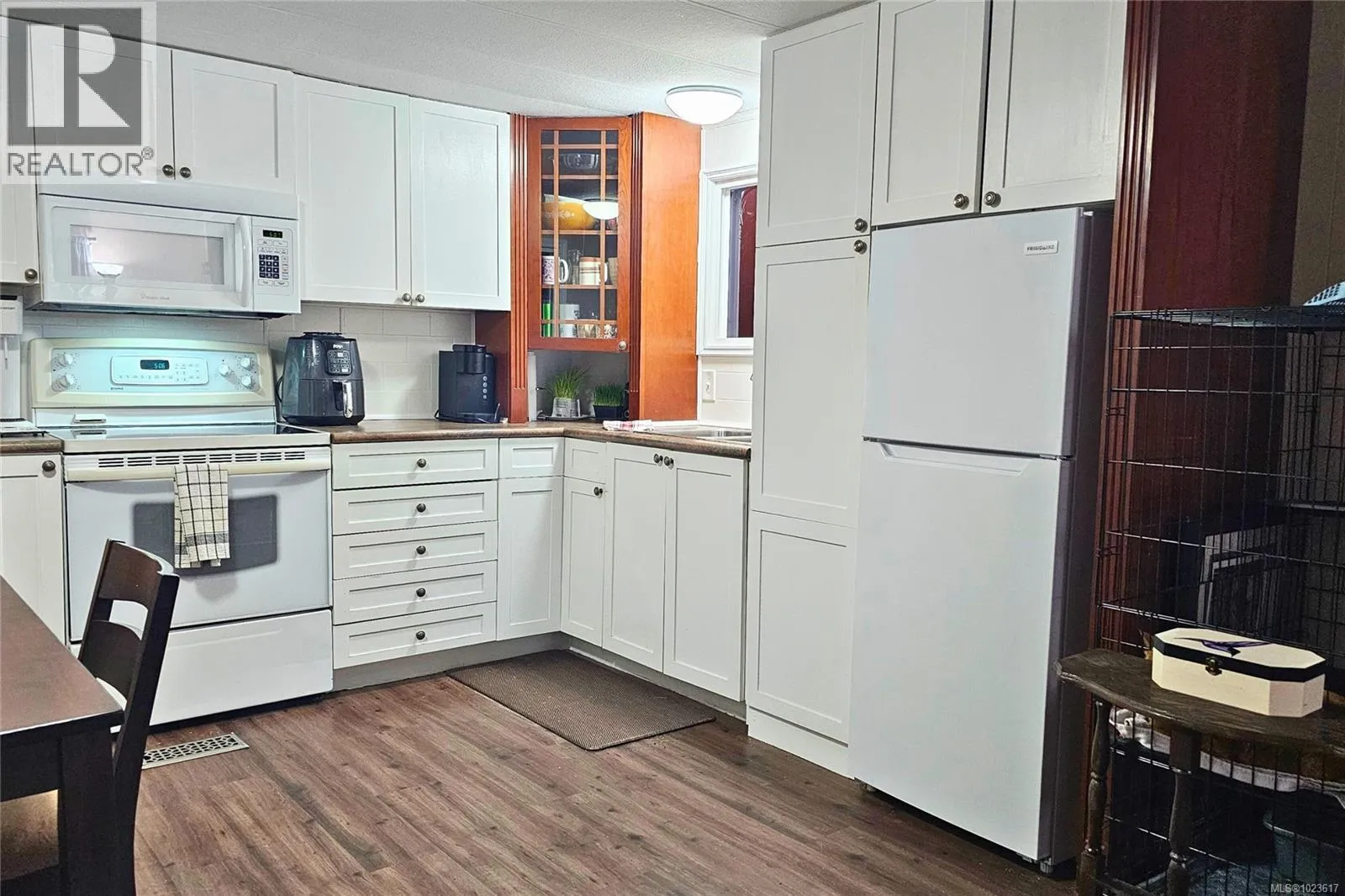 Welcome home to peaceful, low-maintenance living in the highly sought-after Crest 1 Park, perfectly positioned in the heart of North Nanaimo. Tucked into a quiet, well-managed 55+ community, this home is just a short stroll from Woodgrove Mall, Superstore, coffee shops, restaurants, and public transportationâoffering an ideal blend of everyday convenience and calm surroundings. Inside, the bright living area is filled with natural light and flows seamlessly into a functional, easy-care layout designed for comfortable living. The clean white kitchen feels fresh and welcoming, offering ample cupboard space and a practical design well suited to daily use. Over the past two years, several New Updates have been completed, including plumbing, roof, propane furnace, hot water tank, and new flooring in the primary bedroom and bathroom, providing peace of mind for years to come. The two bedrooms offer flexible use for sleeping, guests, or a home office, while a stacking washer and dryer add everyday practicality. A separate covered entry leads into the home, and the covered deck provides an enjoyable outdoor space to relax or entertain in any season. Additional features include a detached storage shed and parking for one vehicle. Crest 1 Park allows one pet with approval and features a clubhouse for social gatherings, fostering a friendly and connected atmosphere. Situated on a main bus route, this home offers a relaxed lifestyle in one of North Nanaimoâs most desirable manufactured home communities. Quick possession is possible. Measurements are approximate and should be verified if important. (id:27476)