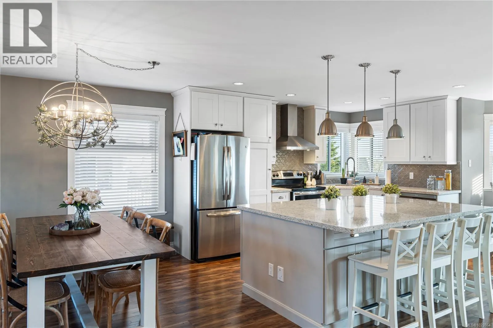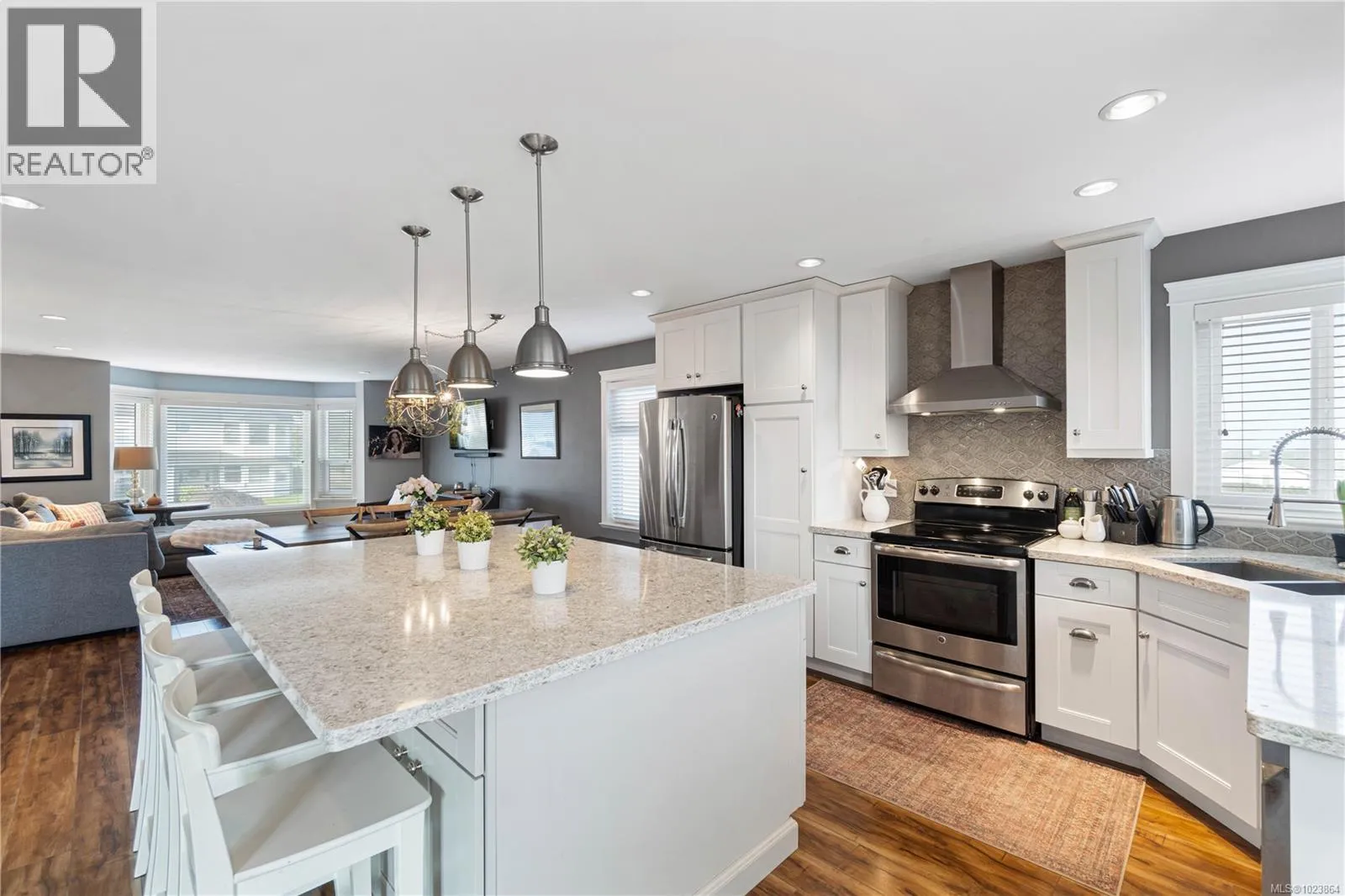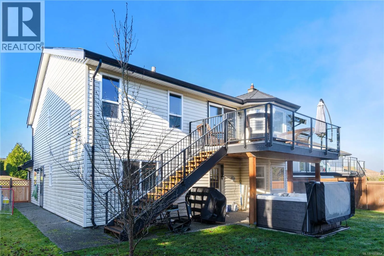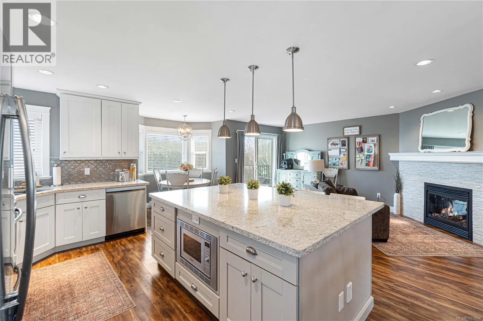 Bright and well-maintained, this 5-bedroom, 3-bathroom home offers 2,566 sq ft of functional living space on a 7,030 sq ft lot in a well-established North Nanaimo neighbourhood. The ground-level entry with main living up creates an efficient and family-friendly layout while maximizing natural light throughout the home. The kitchen is well designed for everyday use and hosting, featuring an extra-large island, beautiful finishes, and an eating nook flooded with natural light. Large windows fill the main living areas with sunlight, and two gas fireplaces provide reliable, efficient heating and comfort on both levels. The home has seen updates throughout, contributing to a move-in ready feel and practical everyday living. The main level extends outdoors to a sun-filled deck, offering a usable outdoor space for relaxing, entertaining, or enjoying the surrounding neighbourhood. The property also stands out for its exceptional parking options, including a double garage, a spacious driveway, street parking, and dedicated RV parking, ideal for households with multiple vehicles or recreational needs. Set on a quiet residential street, this home is close to schools, shopping, parks, and all major North Nanaimo amenities, making day-to-day living convenient without sacrificing a peaceful setting. With its solid layout, ample space, strong natural light, and sought-after location, this is a well-rounded home suited for families, upsizers, or those looking for flexibility in a proven neighbourhood. All measurements are approx and must be verified if important. (id:27476)
