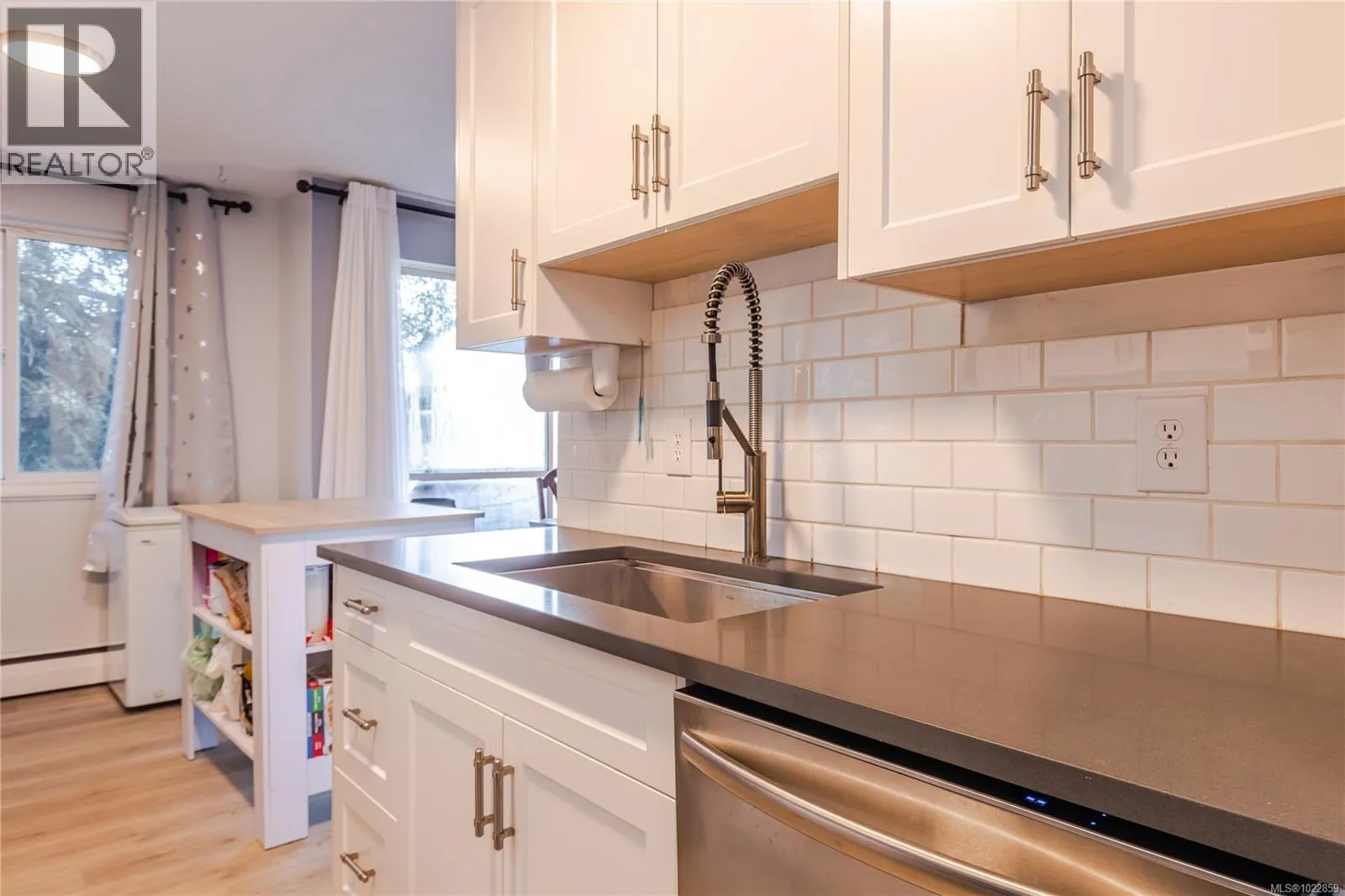 Excellent opportunity to own a fully updated corner unit with a private balcony, offering both comfort and convenience. This turnkey 2-bedroom, 1-bath condo features an updated galley-style kitchen with quartz countertops, stainless steel appliances, and a tile backsplash, along with updated flooring, trim, paint, hardware, and a renovated bathroom. The efficient layout offers ample cabinetry and counter space. Ideal for investors, first-time buyers, or those looking to downsize, this well-managed strata allows rentals, has no age restrictions, and pet friendly. The strata fee includes heat and hot water, providing excellent value and predictable monthly expenses. Conveniently located by Bowen Park, residents can enjoy tennis courts, a swimming pool, frisbee golf, walking trails, and recreation for all ages. The property is on a bus route and close to shopping, schools, downtown Nanaimo, and Vancouver Island University. (id:27476)