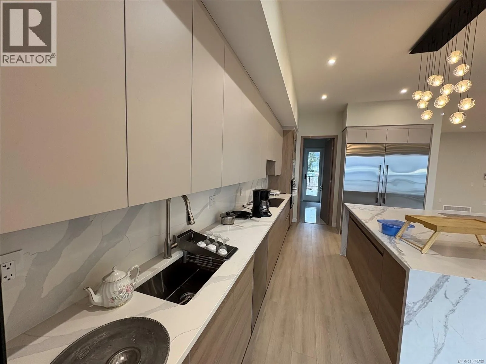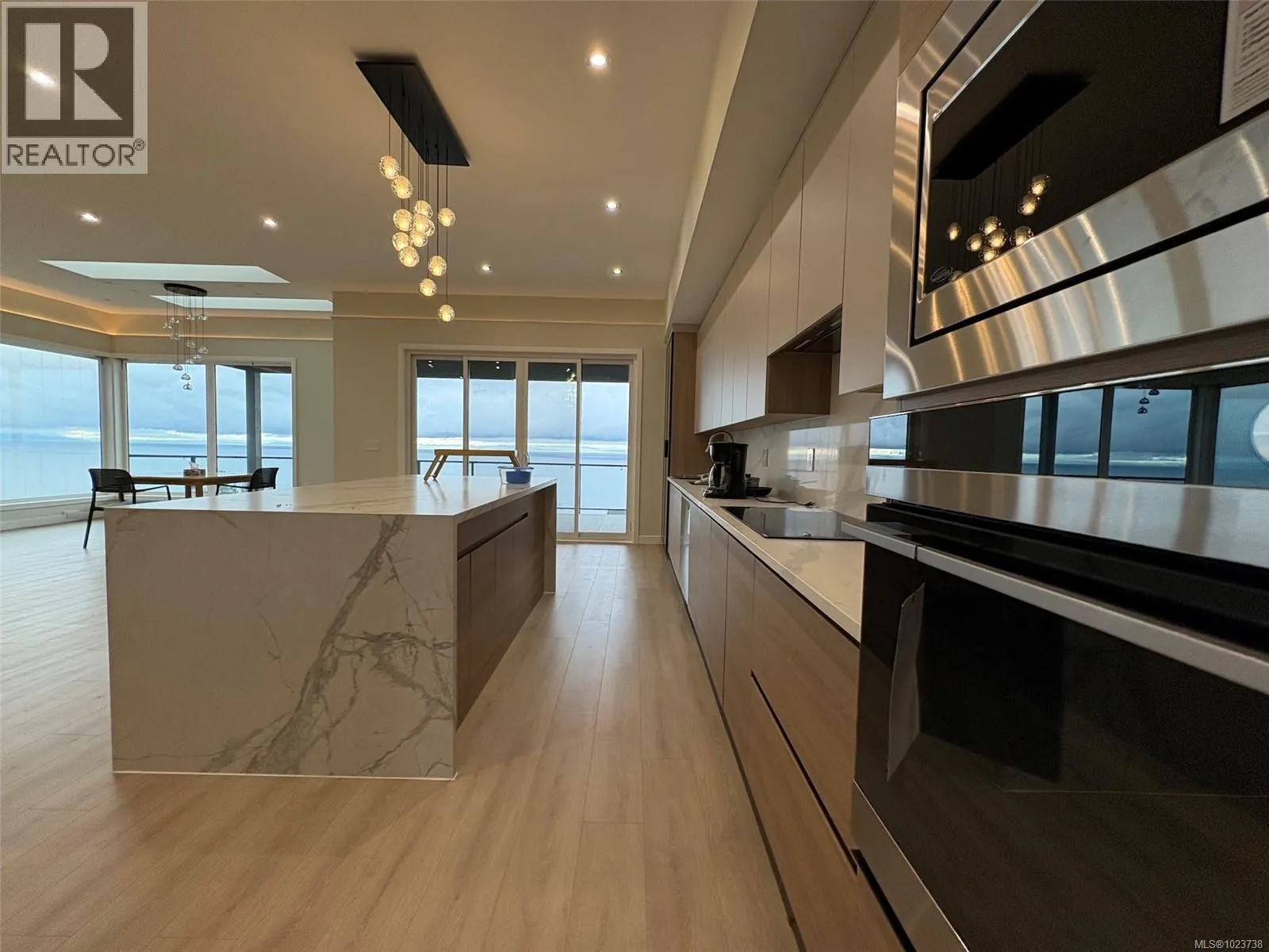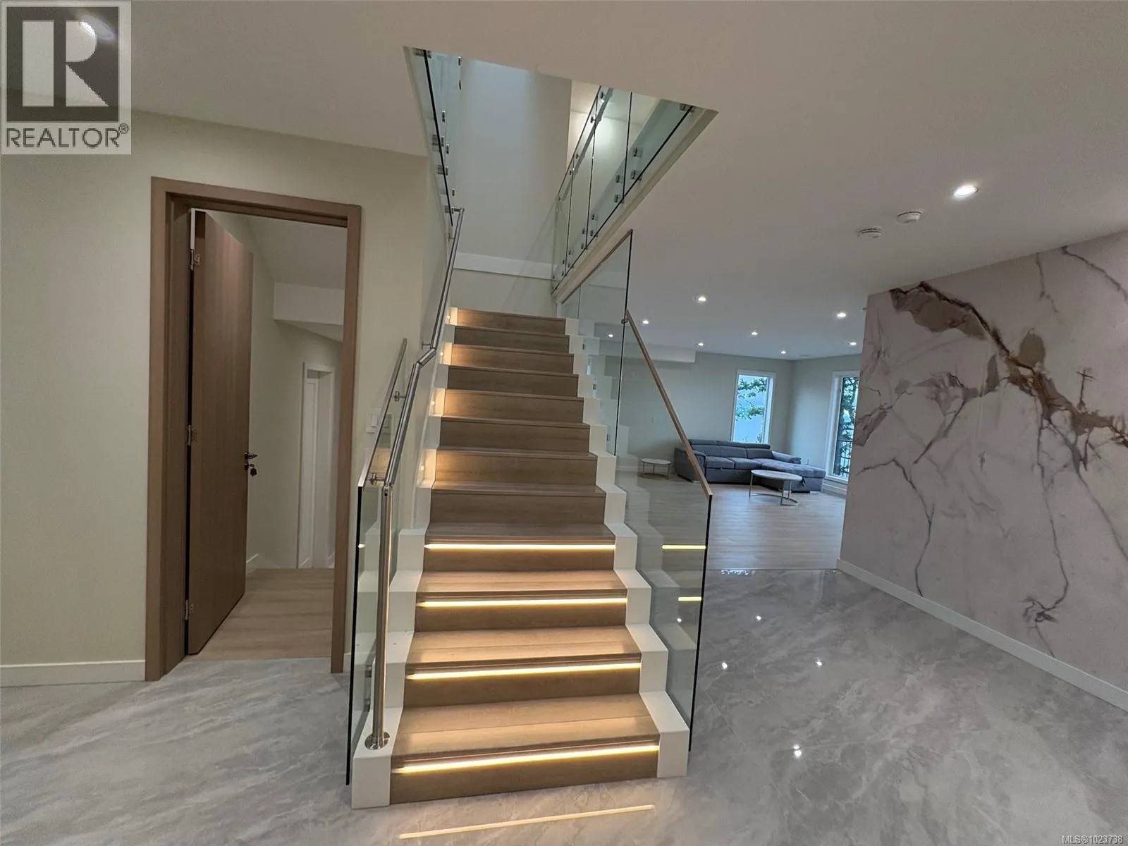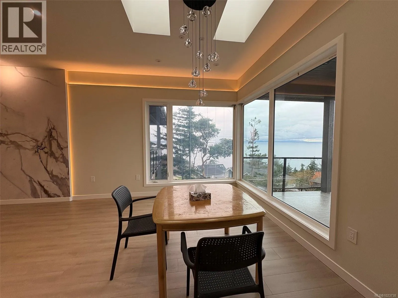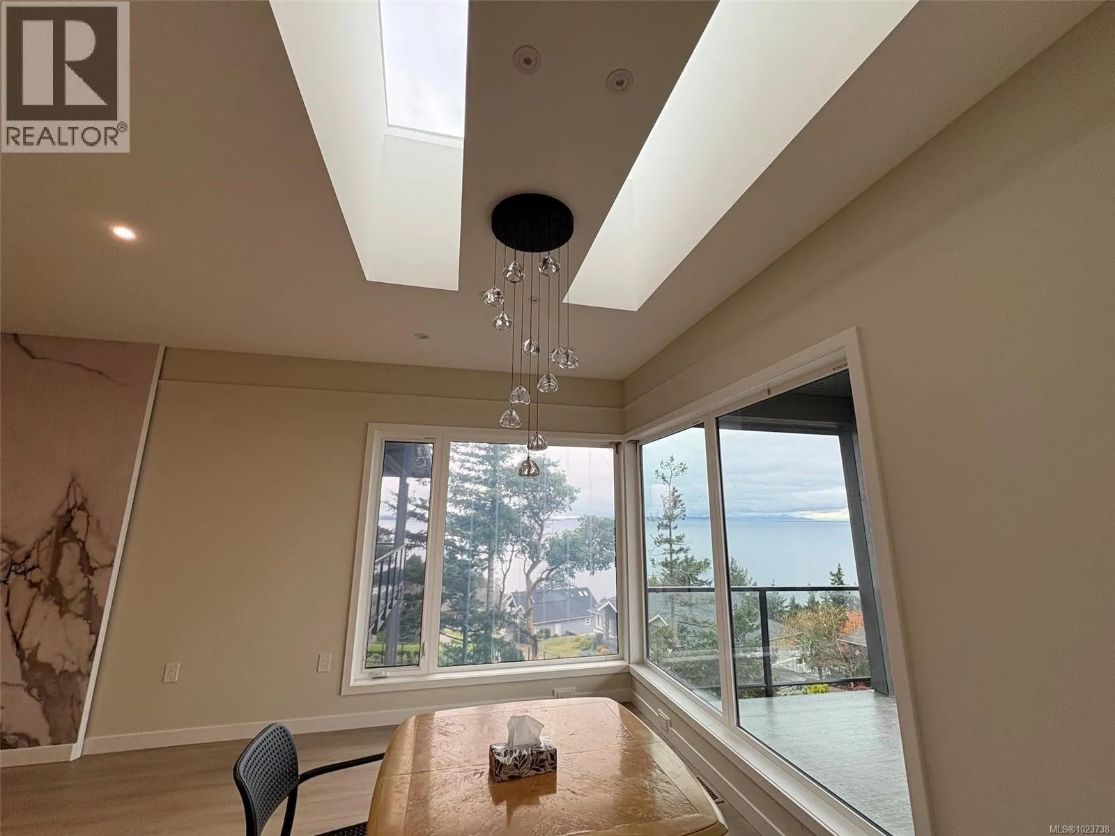 Welcome to Arbutus Rock - where panoramic views, privacy, and modern luxury converge. Located in Nanaimo's most prestigious enclave, 5055 Banning Court offers an extraordinary living experience with commanding panoramic views in every direction - unobstructed ocean vistas to the north, sweeping city and mountain views to the south, framed by mature maple trees and bathed in natural southern sunshine. This brand-new custom luxury residence showcases a thoughtfully designed layout with spacious proportions throughout, featuring 9-foot ceilings and 8-foot high-end interior doors, extensive skylights, and carefully curated LED lighting and feature walls that elevate both comfort and style. The upper level is intelligently arranged for maximum privacy, with three generously sized bedrooms, each separated for superior sound control - ideal for a growing family. On the main/lower level, a full ensuite bedroom provides a perfect retreat for guests, seniors, or extended family members. A standout feature is the 1,458 sq. ft. unfinished area, already pre-wired and designed for a future two-bedroom suite or additional living space - an exceptional opportunity for multi-generational living, visiting grandchildren, or personalized expansion. This is multi-million-dollar ocean-view living, offering the scale, craftsmanship, and outlook typically found in Greater Vancouver - yet here, you receive a brand-new mansion, not just a vacant lot. Set in the sought-after North Nanaimo Rocky Point area, Arbutus Rock is moments from the ocean, beaches, nature parks, and boat launches, combining tranquility with convenience. An exceptional home that must be experienced in person to be fully appreciated. (id:27476)