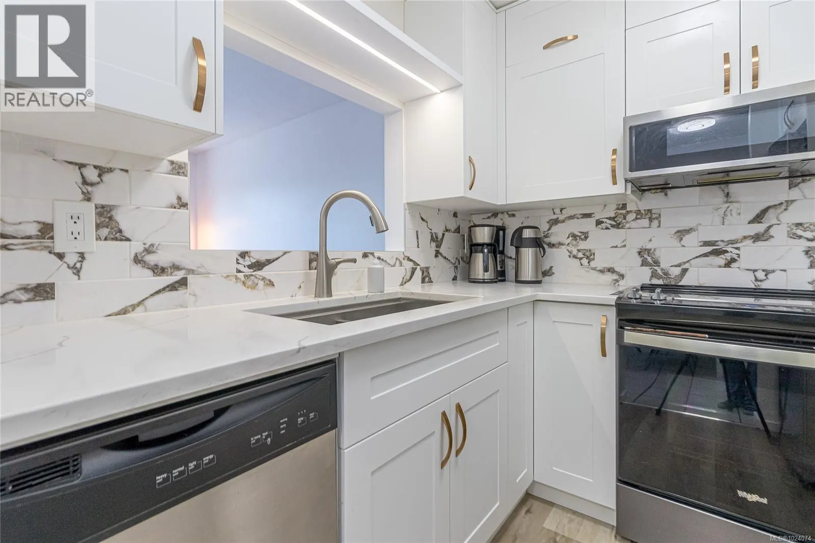 Centrally located and walkable to Country Grocer, bus routes, and restaurants, this 2 bed, 1 bath townhome offers convenience and comfort. The kitchen features stainless steel appliances, new cabinets and countertops. The open concept living and dining area is bright and spacious, perfect for relaxing or entertaining. Upstairs you'll find two bedrooms, a bathroom with a new vanity, and a laundry room for added ease. There is a garden/patio space by the front door perfect to get some sun or let the kids play. Rentals and small pets are welcome, making this home ideal for investors, first-time buyers, or those looking to downsize. (id:27476)