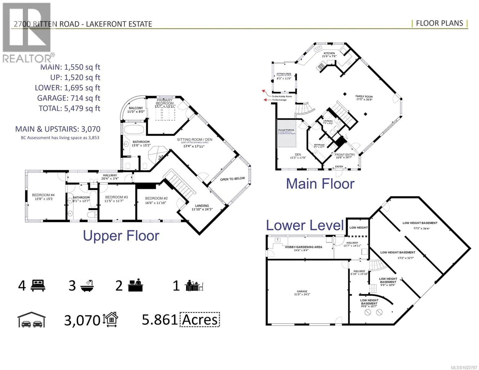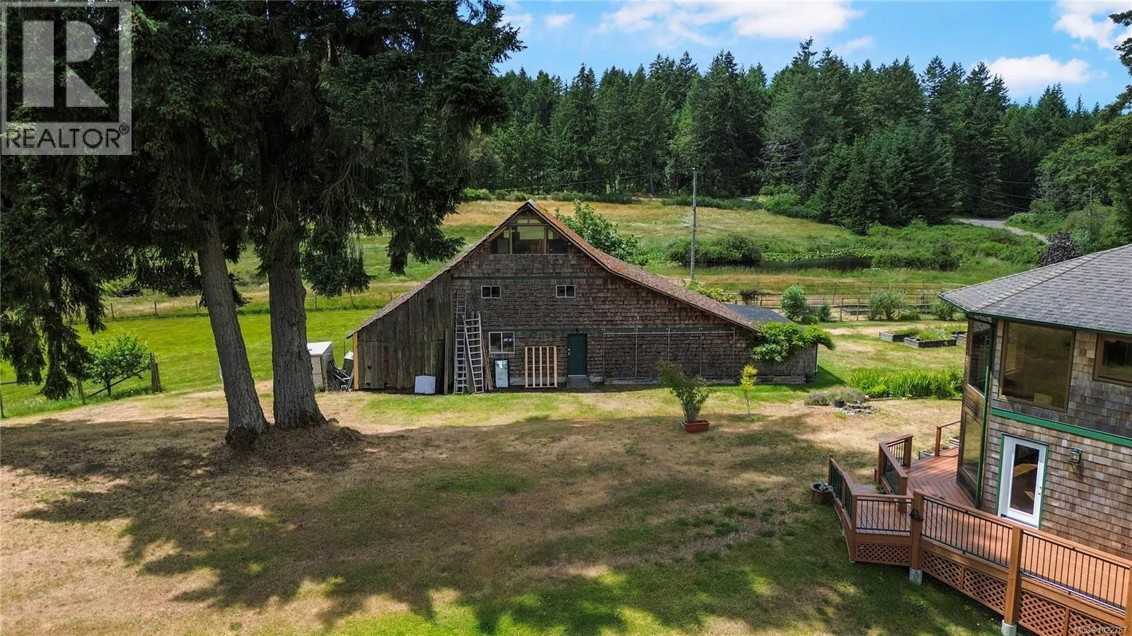 Idyllic 5.8-Acre Lakefront Estate with Dock, Barn & Farmland Welcome to this extraordinary 5.8-acre lakefront estate, offering the perfect blend of natural beauty, privacy, and rural living. Boasting over 300 feet of lakefront and a private dock, this south-facing property enjoys all-day sun and stunning water views from nearly every room in the house. The 3,853 sq ft home is filled with natural light thanks to an over-abundance of large windows and features 4 bedrooms and 4 bathrooms, ideal for family living or hosting guests. A huge wrap-around deck offers yet another perfect place to take in the tranquil lake setting, while the attached greenhouse/hobby room lets you enjoy your passion for gardening or, like these owners, pottery making⦠all while enjoying a view. Comfort is ensured year-round with a newer heat pump and furnace providing efficient climate control. Designed for easy living with an opportunity for agriculture, equestrian uses or light farming, the fully fenced and cross-fenced land includes approximately 3 acres of pasture, a fenced garden area, fruit trees, and a detached barn/workshop. Wow, this is a beautiful setup for farming or hobbies. Two road frontages and dual hydro meters offer flexibility and access, while RR2 zoning permits a second residence of any size*, making this a versatile long-term investment. (*Maximum of 25% lot coverage) Additional highlights include a double over-height garage, a water licence for lake usage, and excellent southern exposure that makes this property not only beautiful but functional year-round. Whether you're dreaming of a hobby farm, multi-generational living, or simply a peaceful waterfront retreat, this lakefront gem truly has it all. Don't miss the opportunity to make this dream home yoursâschedule your viewing today! (id:27476)