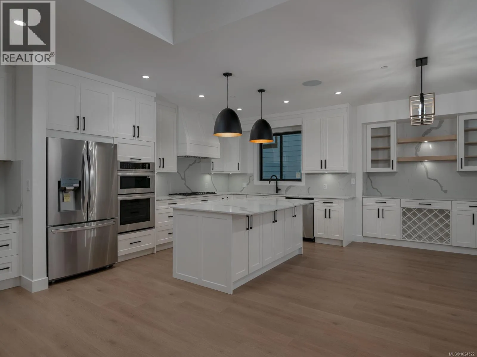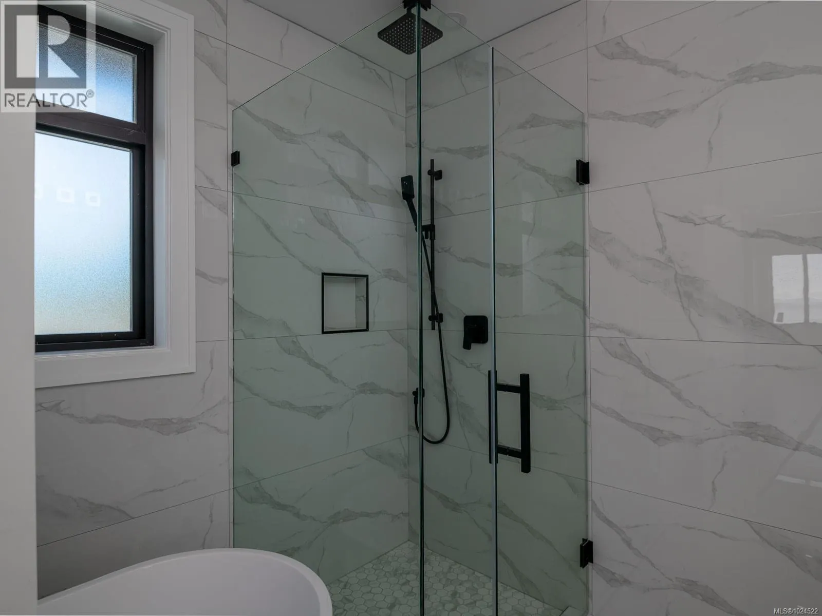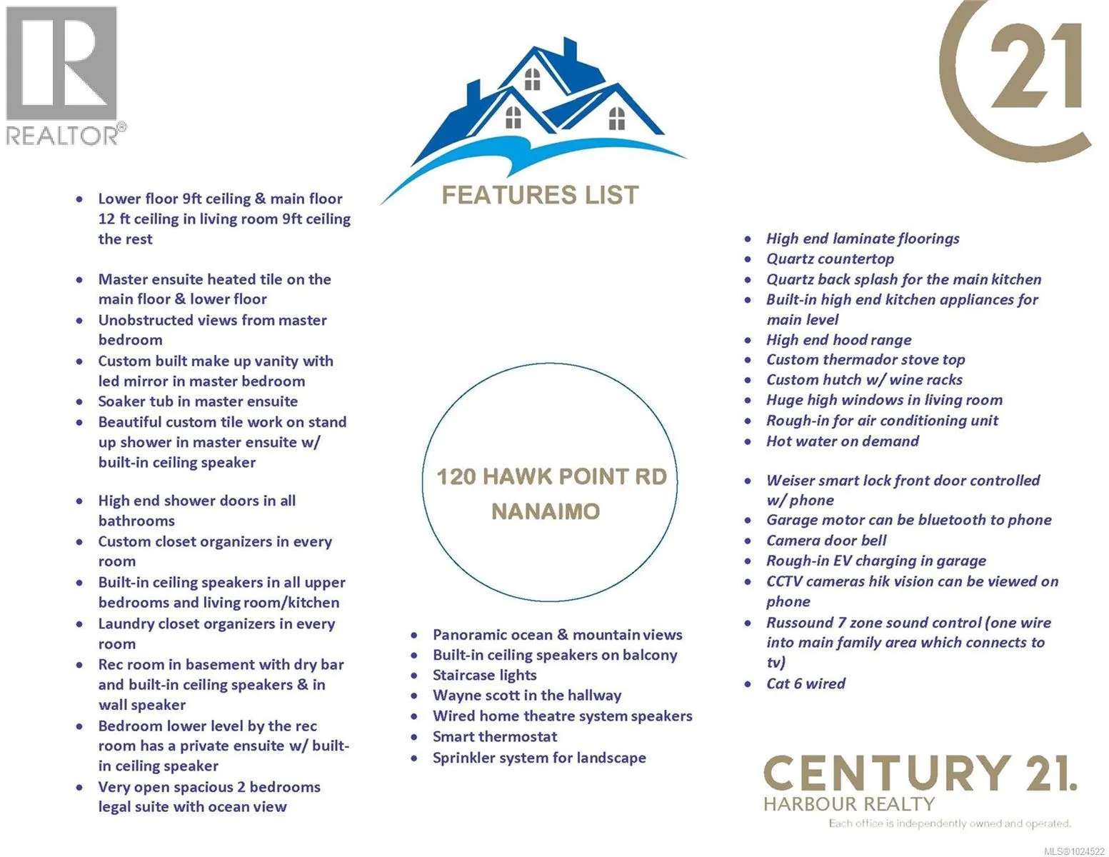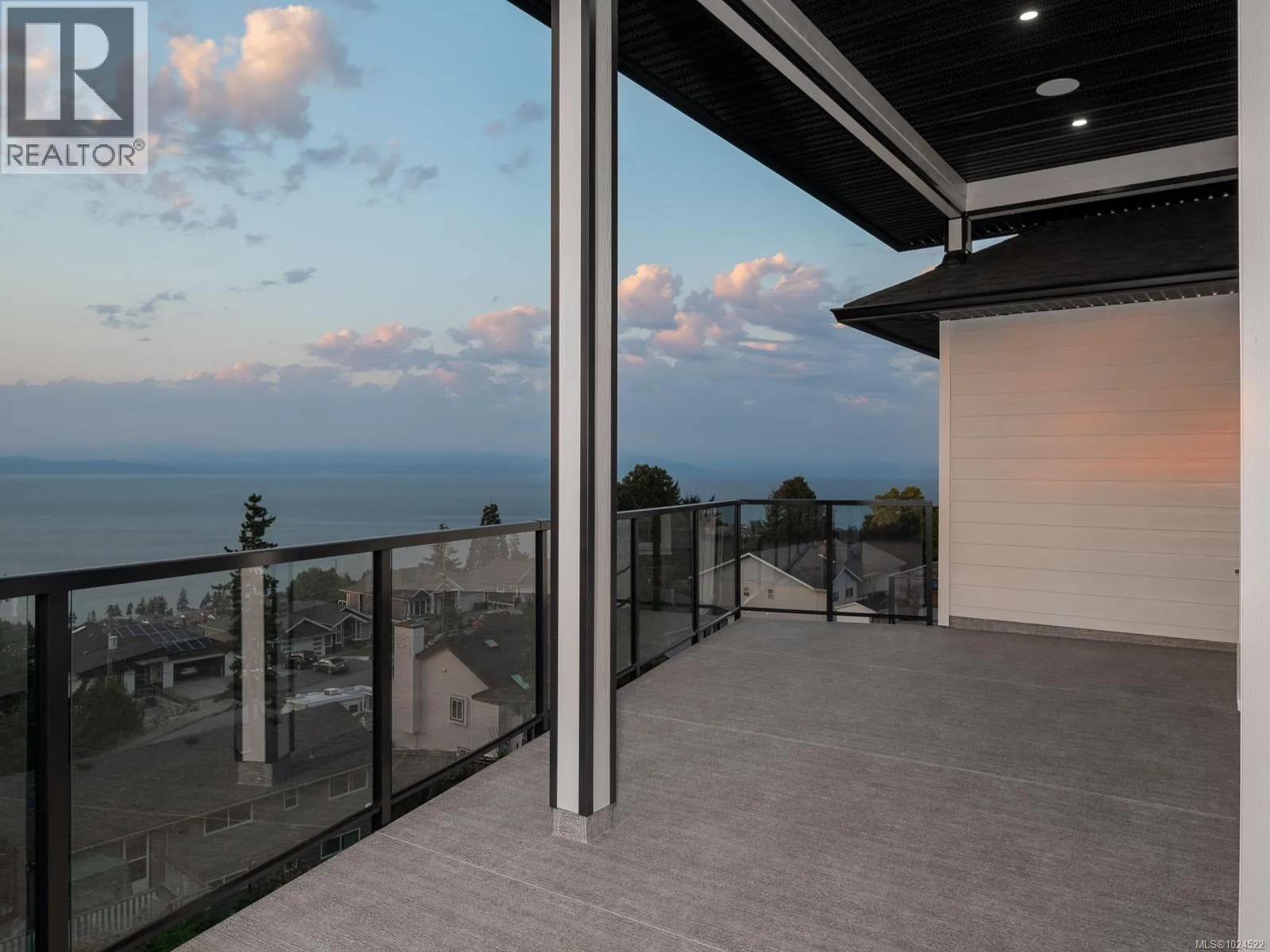 Pristine OCEAN VIEW Main Level Entry Home with legal 2-bedroom basement suite in North Nanaimo! Main floor offers 2 bedrooms including the Master with walk-in closet, built in make up vanity with LED mirror, 5 pcs ensuite including soaker tub, and stand-up shower with all customize tile work. All rooms on main floor have built in ceiling speakers. 12 ft high ceiling spacious living room with electric fireplace and customize shelving/cabinets. Spacious built in kitchen with all high-end appliances flowing to the dining room with customized built in hutch. Off the dining room is the very spacious balcony with built in speaker and beautiful views of the ocean/mountain great for entertainment. Lower level offers separate entrance rec room with built in ceiling/wall speaker and dry bar. Also, another bedroom with private ensuite. The 2 bedrooms suite is very spacious with private patio and views of the ocean/mountain. Great location close to all of North Nanaimo amenities. (id:27476)