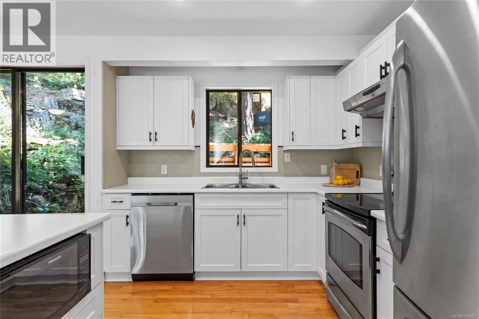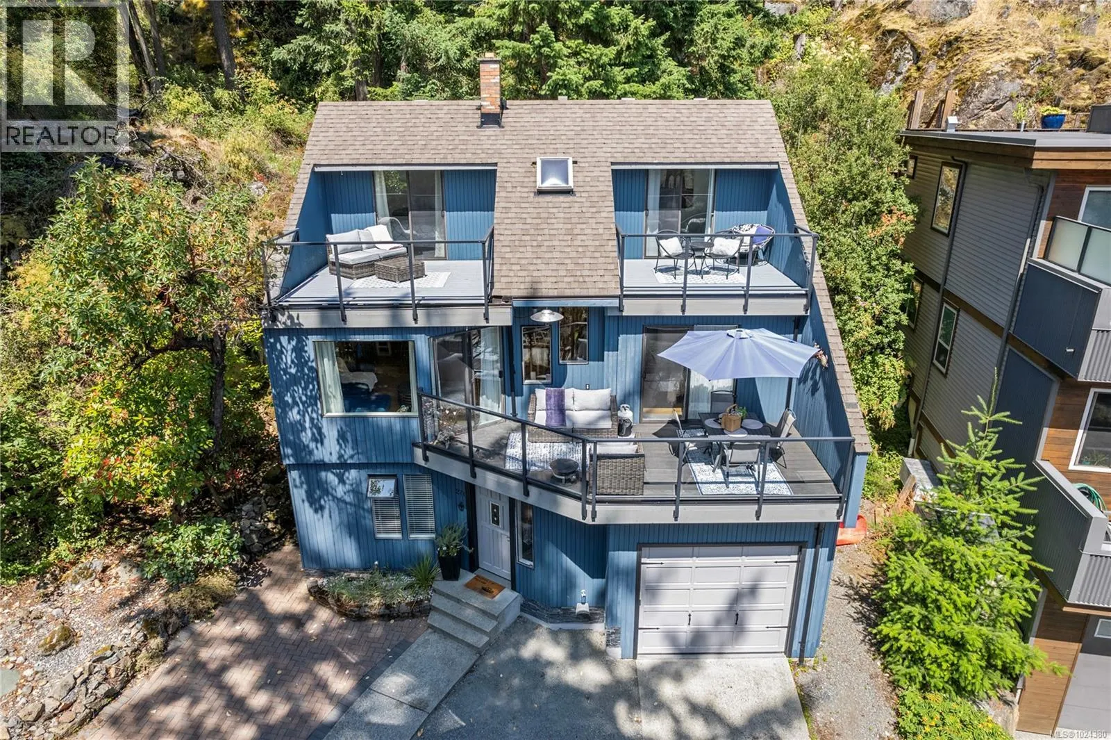 This beautifully designed unique home offers views of Long Lake and a layout that blends functionality with West Coast charm. On the main level is an open-concept living space with hardwood flooring, a kitchen equipped with stainless appliances, and living room with access to the main deck. The primary bedroom also opens onto the deck and features a walk-in closet and three-piece ensuite. A curved custom staircase leads to the upper floor, where two bedrooms each enjoy their own private deck and share a four-piece bathroom. Soak up the southern exposure and lake views from multiple vantage points or retreat to the private back deck surrounded by lush natural landscaping. Enjoy built-in benches, a firepit area, and a hot tub. Enjoy peaceful moments kayaking on the lake, accessible just steps away via a private community entrance. Additional visitor parking is available around the corner. All data & measurements are approximate and must be verified if fundamental. (id:27476)