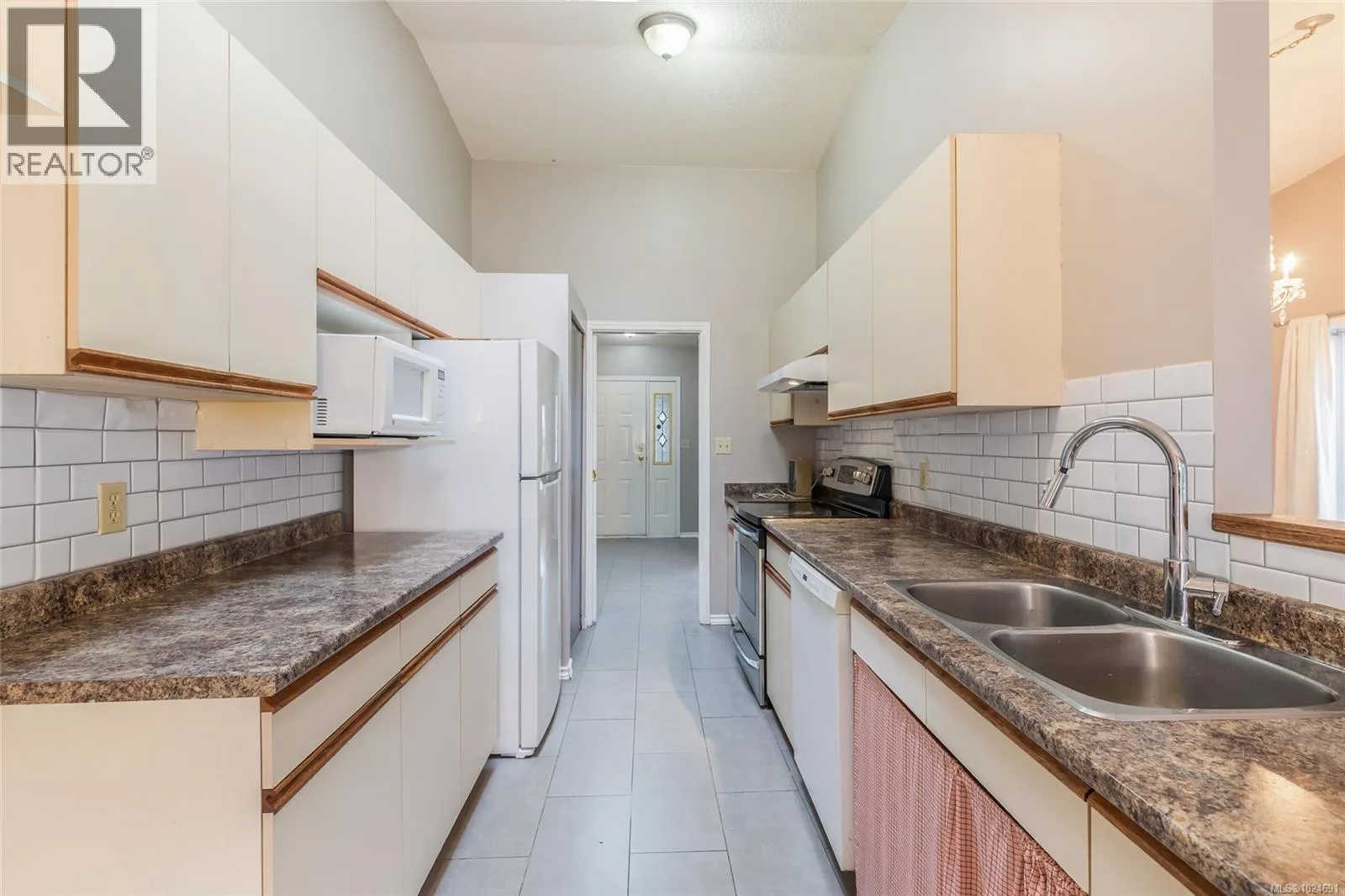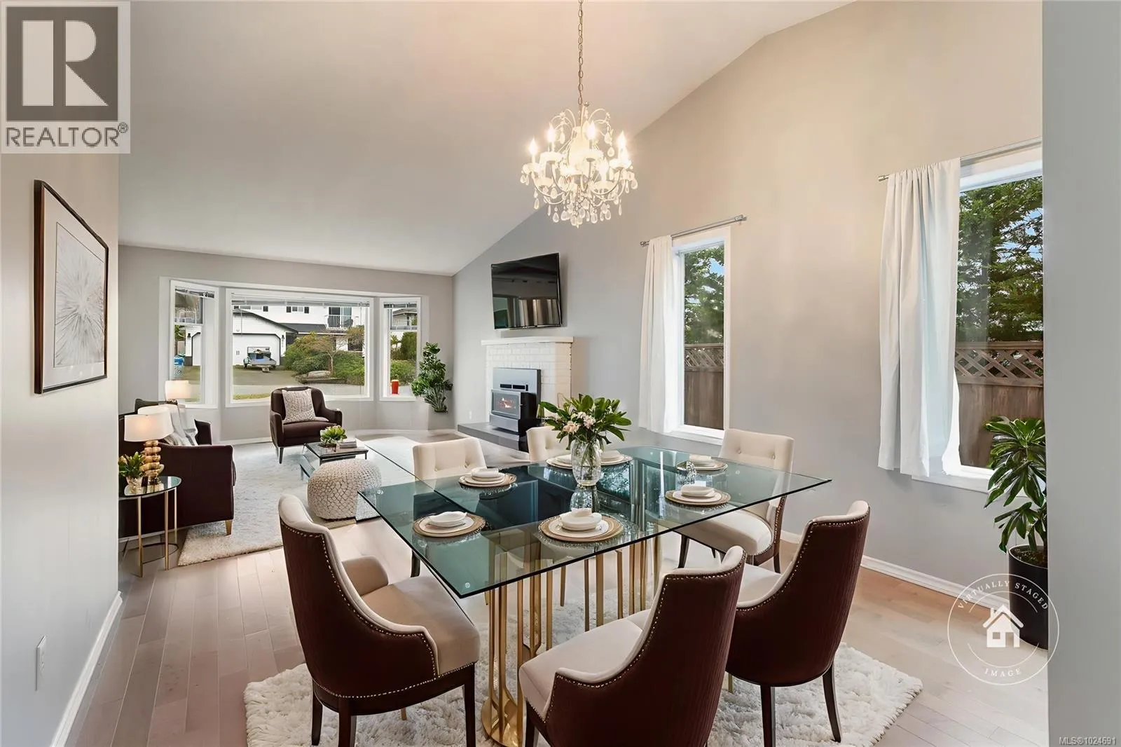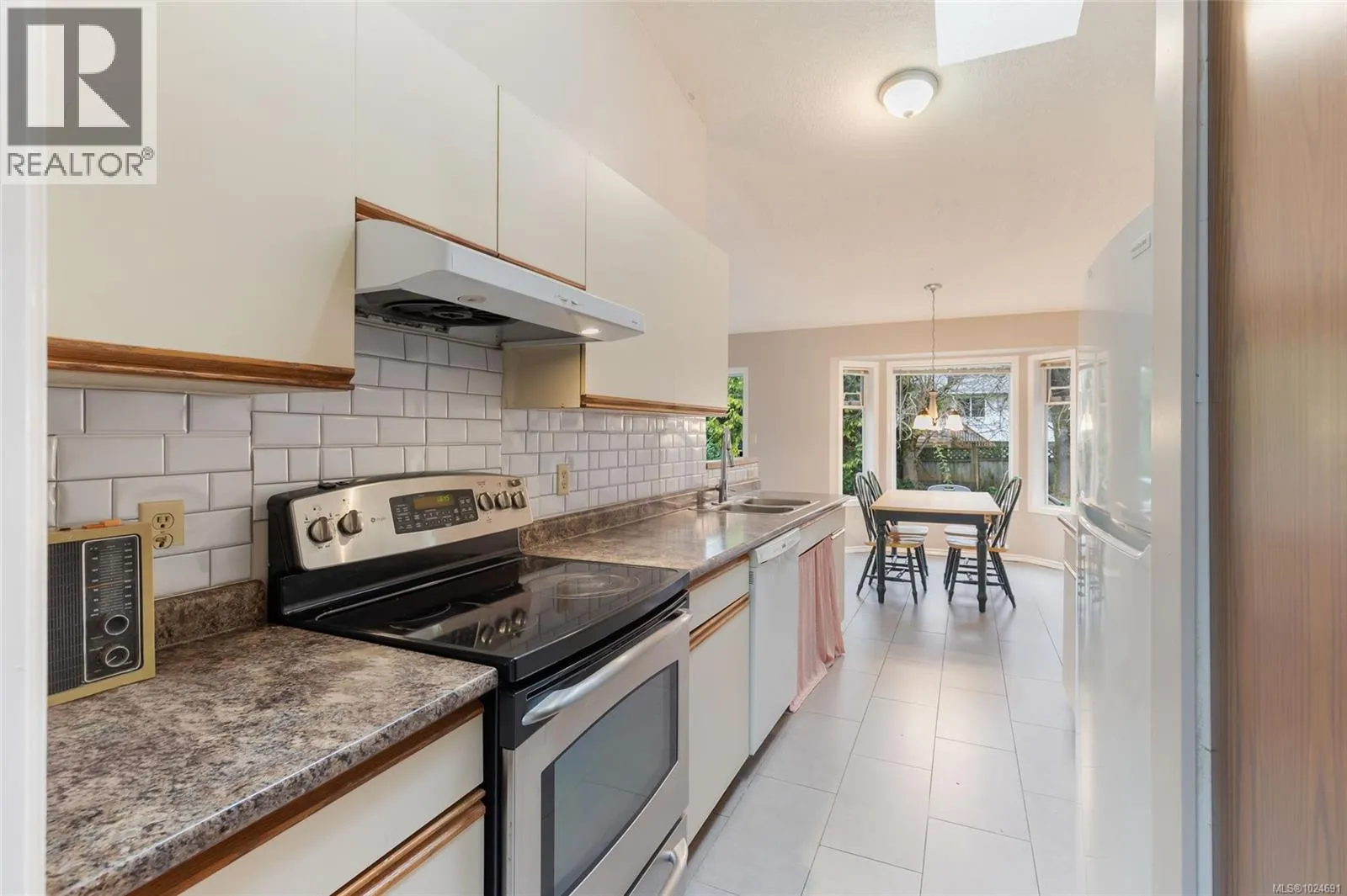 Set on a quiet, sought-after street in North Nanaimo, this well-cared-for 1,468 sq. ft. rancher offers an exceptional blend of comfort and location. Bright and inviting, the home features 3 bedrooms, 2 bathrooms, vaulted ceilings, skylights, and generous windows that fill the interior with natural light. Engineered wood and tile flooring, along with updated paint, create a warm and appealing atmosphere. The galley kitchen opens to an eating nook and a cozy family room overlooking the landscaped backyard, while the living and dining areas include a welcoming fireplace. The primary bedroom provides a 3-piece ensuite and peaceful garden views. A patio off the kitchen leads to a manicured mix of lawn and gardens, ideal for relaxing or entertaining. Additional highlights include an HRV system, double garage, and ample parking. Steps from Icarus Driveâs waterfront access and close to Dover Bay and McGirr schools, parks, and shopping. All measurements are approximate; verify if important. (id:27476)