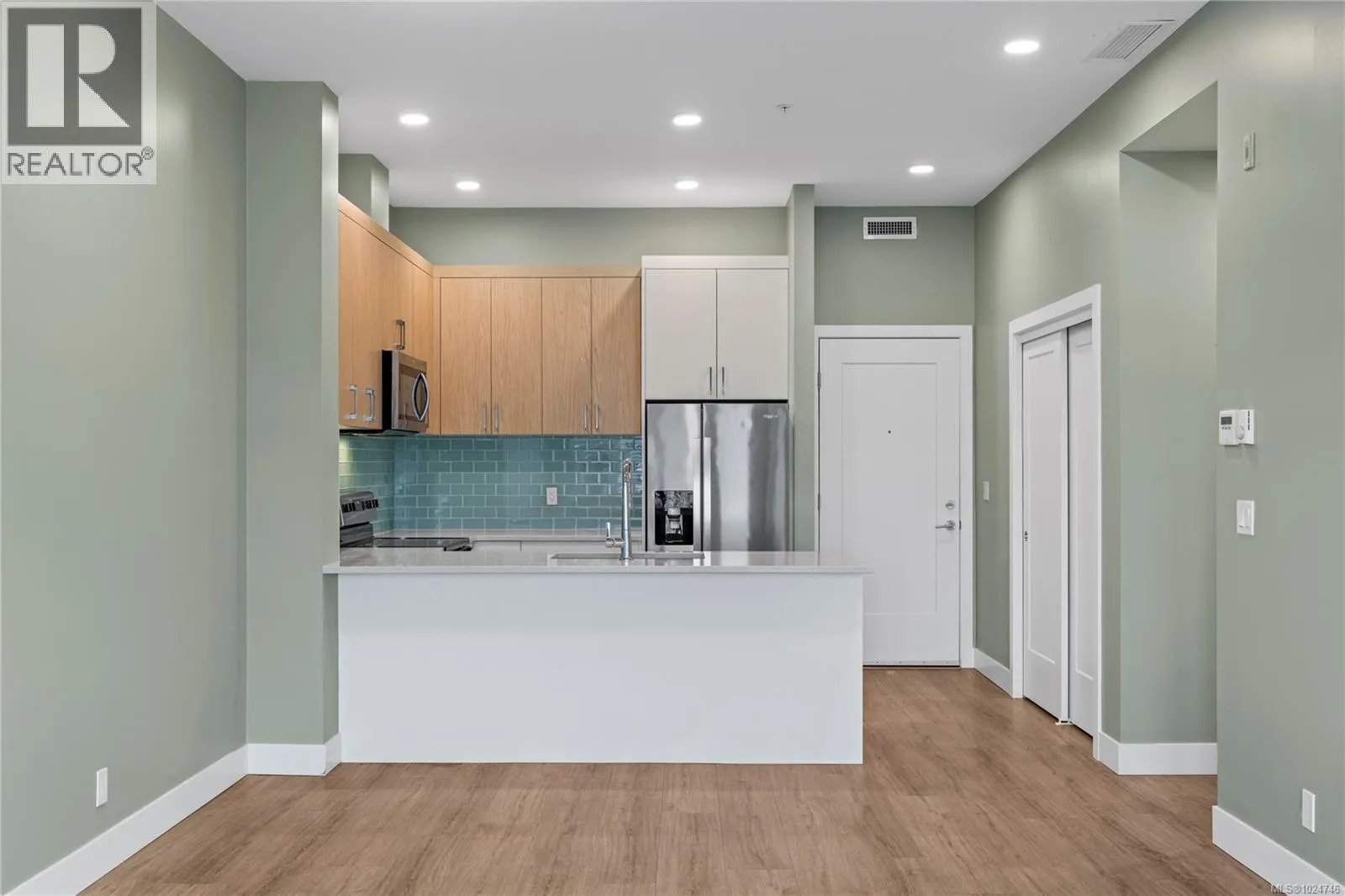 Welcome to this immaculate penthouse at The Metâa 2 bedroom, 2 bathroom top-floor unit offering stunning ocean views and soaring 10 foot ceilings. This bright, open-concept home features floor-to-ceiling windows and a smart, functional layout. Located in one of Nanaimoâs most walkable areas, you're just a short stroll to over 200 amenities, including gyms, pet care, restaurants, grocery stores, a boutique butcher, bakery, and Woodgrove Mall. Includes underground parking and storage. Experience stylish, low-maintenance living with a West Coast vibe. Data and measurements approximate, to be verified if deemed important. (id:27476)