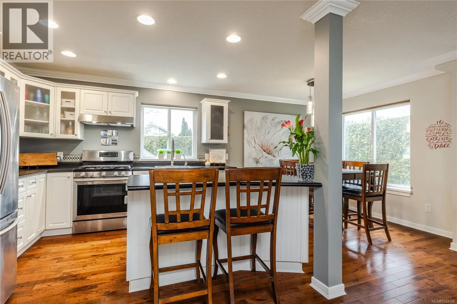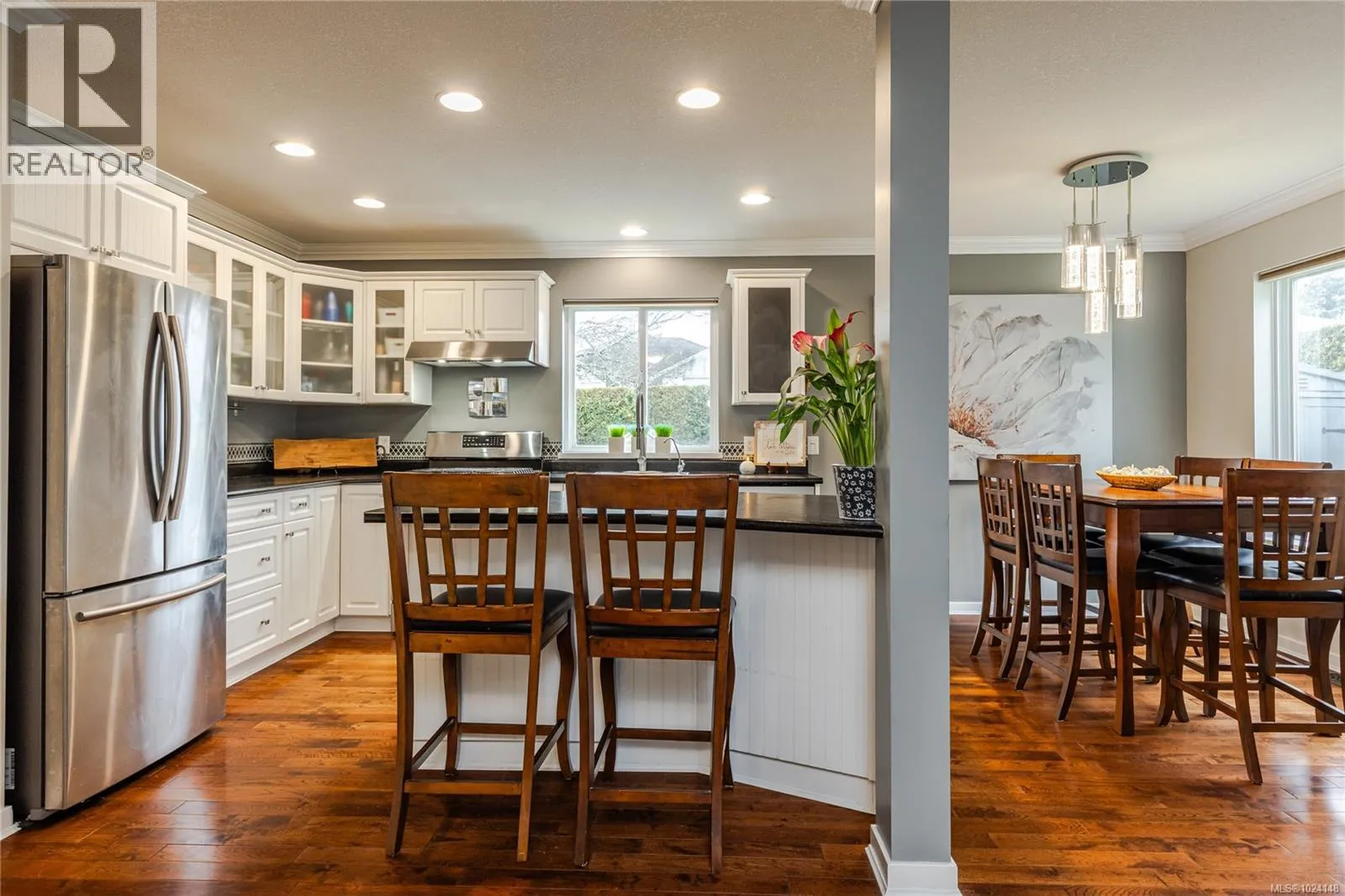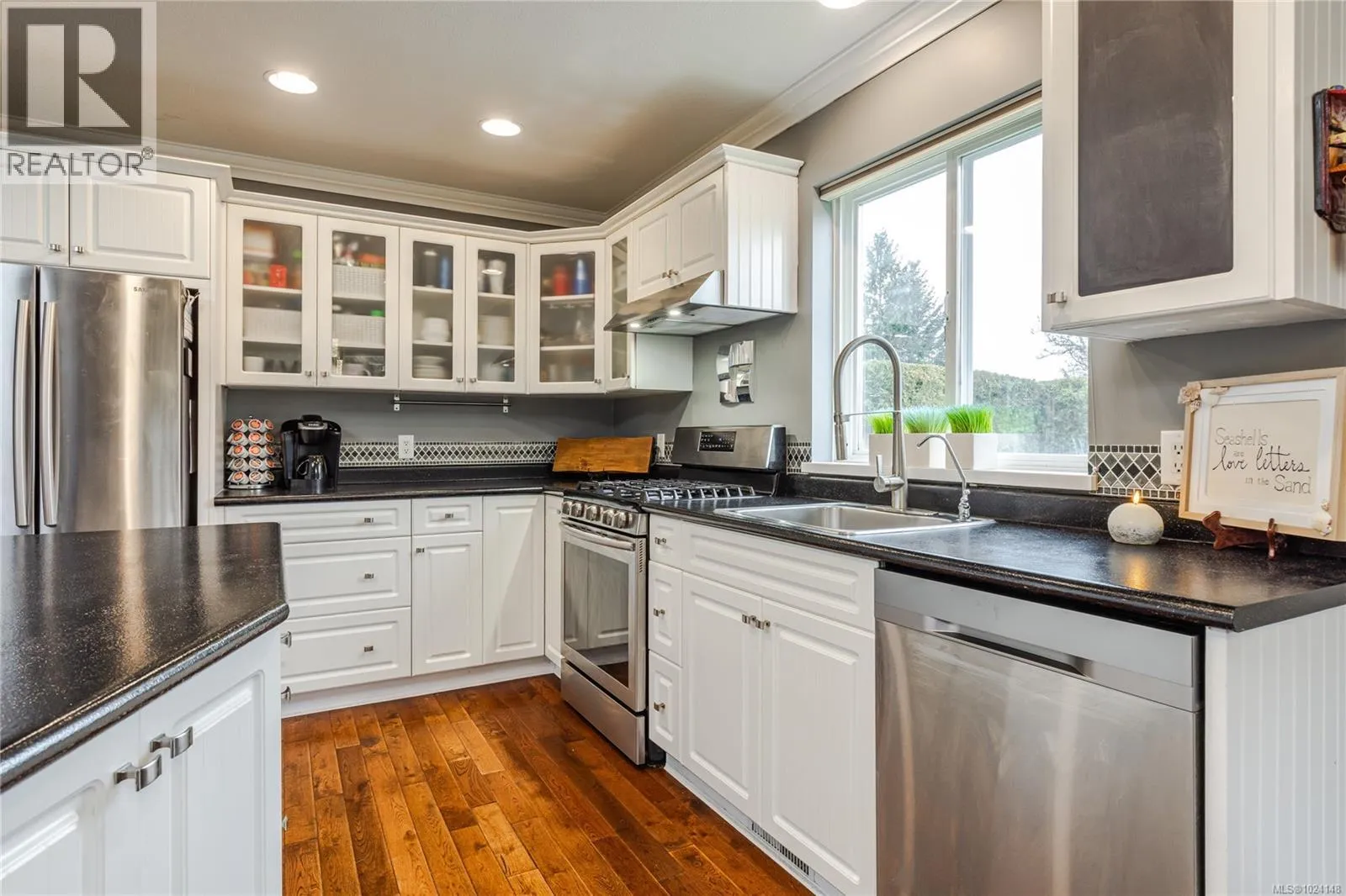 Situated on a spacious 8,973 sq ft corner lot in the heart of Chase River, where space and privacy are truly valued. This impressive home offers 4 bedrooms and 3 bathrooms between 2 levels and shows even better in person. A charming covered front porch welcomes you inside, where pride of ownership is clearly evident. The main level features continuous hardwood flooring, a bright and spacious living room with a natural gas fireplace, an inviting open-concept kitchen that flows through to the adjoining dining and family rooms. The family room is enhanced by French doors opening to an enchanting covered patio, creating a wonderful indoor-outdoor atmosphere. Upstairs, a glass-railed staircase leads to the primary bedroom with walk-in closet and ensuite, 3 additional sun-filled bedrooms and a main bathroom. A heat pump provides economical year-round comfort. Completing the home is a spacious dbl garage, ample driveway space for 5 vehicles and enclosed RV parkingâperfect for all your toys. All measurements are approx. and must be verified if relied upon. (id:27476)