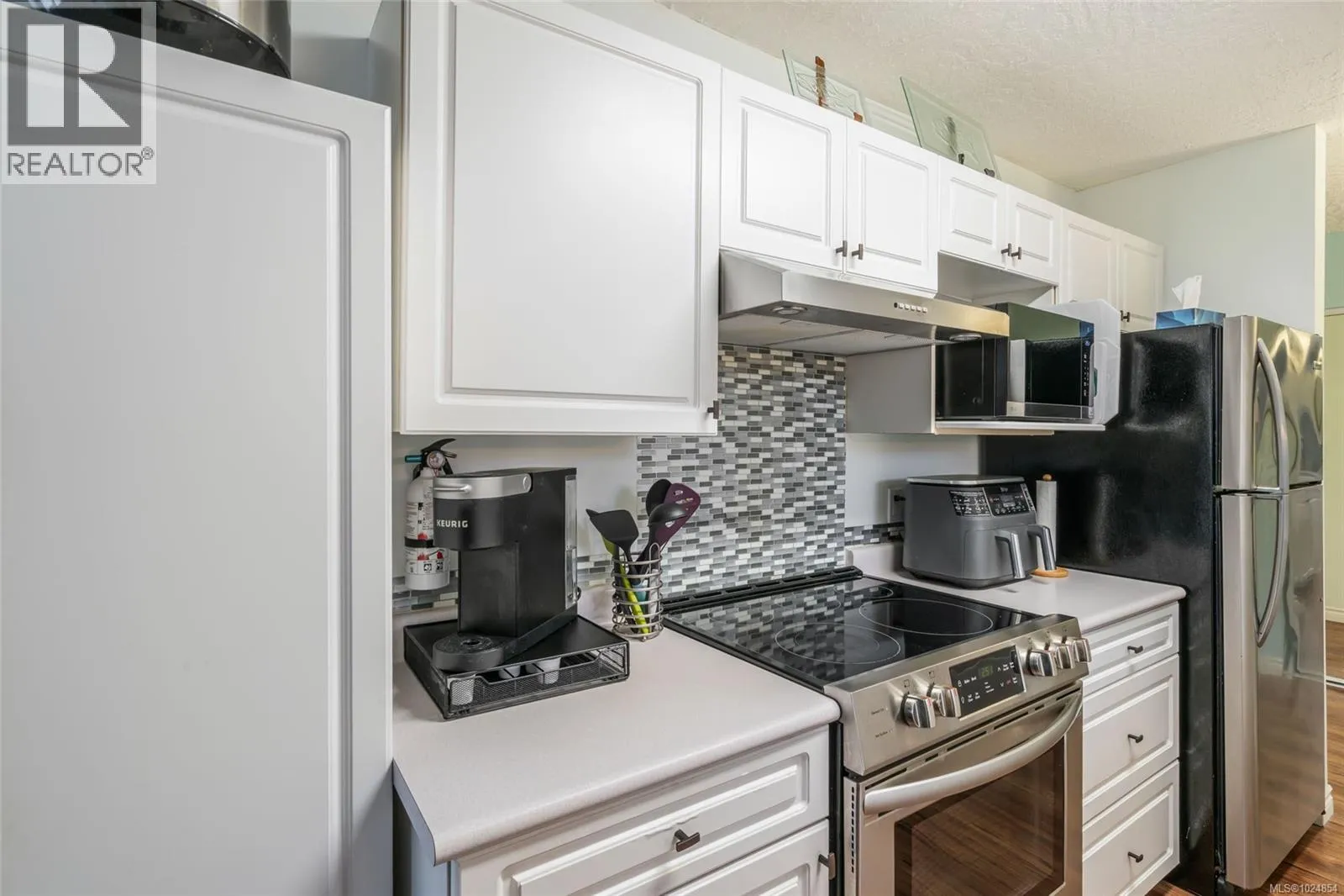 Uptown & Popular 3 Bedroom 2 Bath townhome at Park Ridge Place! Located in great location close to Departure Bay Ferry Terminal, Bowen Park, Downtown & Hullo Ferries, this updated & move-in ready townhouse must be seen. Desired upper level unit has engineed hardwood floors throughout main rooms & tile in bathrooms, The suite is is bright & open with eleven ft vaulted ceilings in the living room & a stylish gas fireplace. Large galley kitchen with pass through open to dining room. Newer appliances, new hood fan, refurbished cabinets with new hardware & breakfast nook with ceiling fan. Both bathrooms have been updated & have tubs with showers. Updated lighting fixtures, new gas Hot water tank(2024). Spacious sundeck for summer enjoyment & pets allowed. room for 2 vehicles with a single garage with electric opener & an open spot. Well managed & maintained strata. (id:27476)