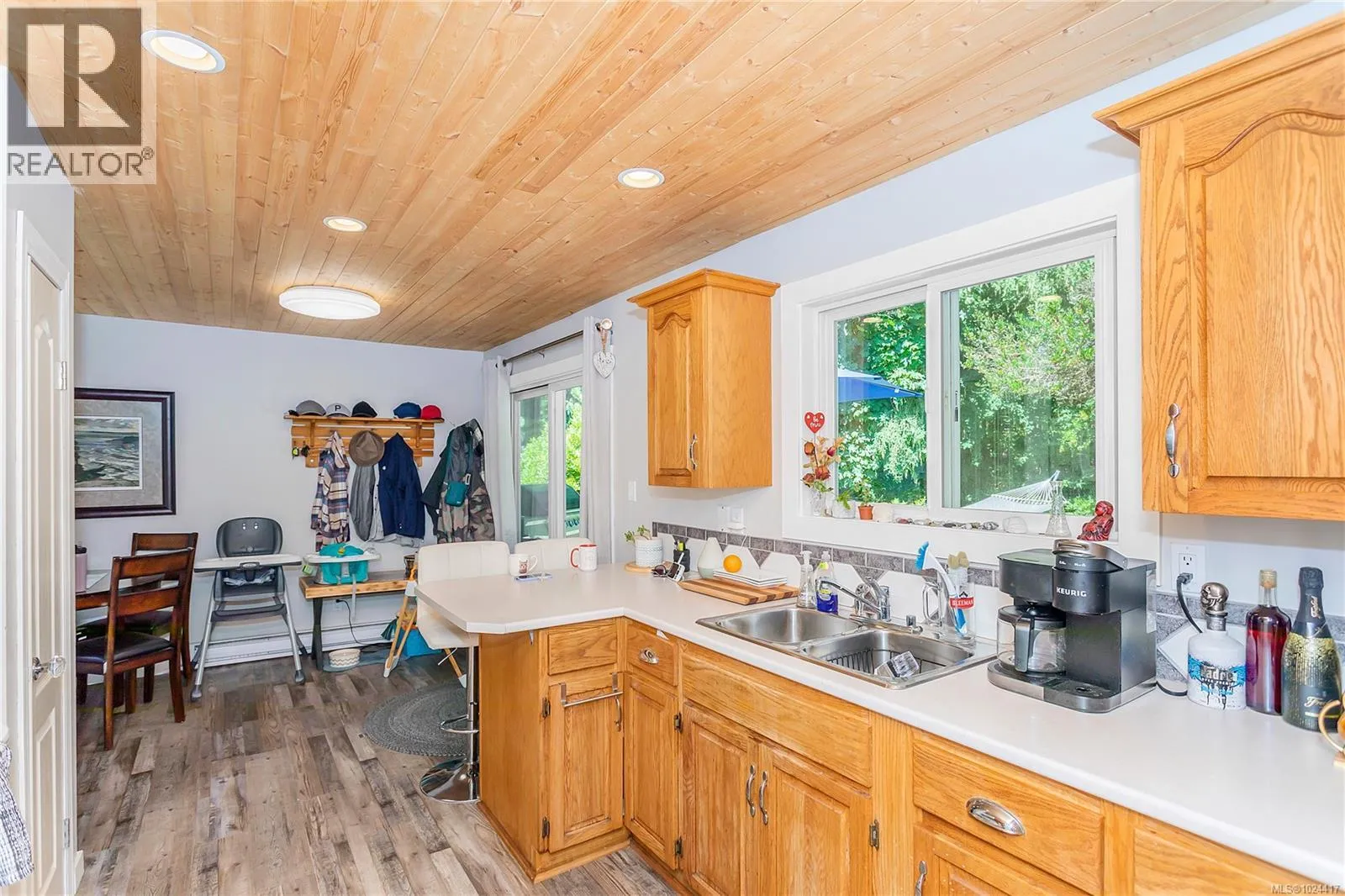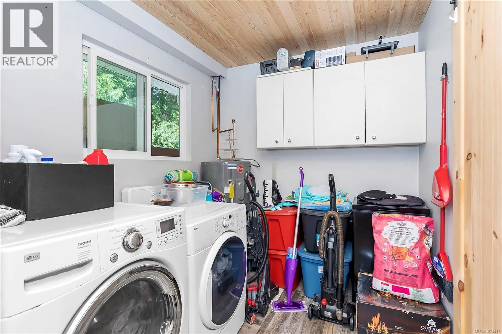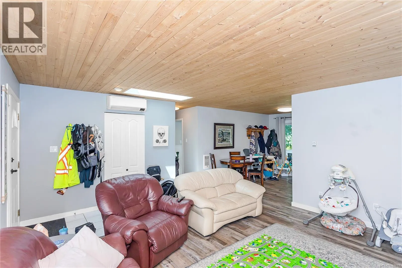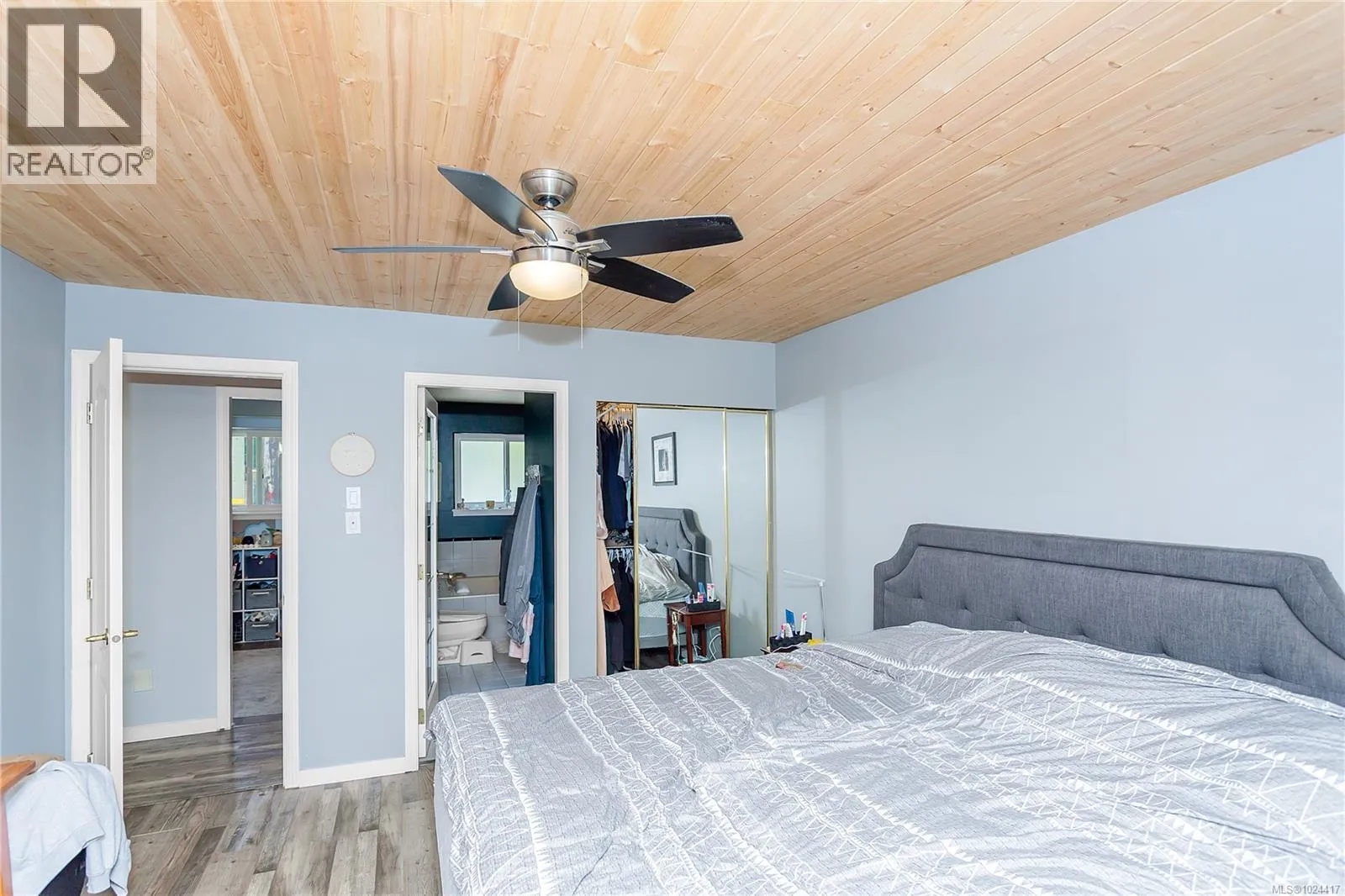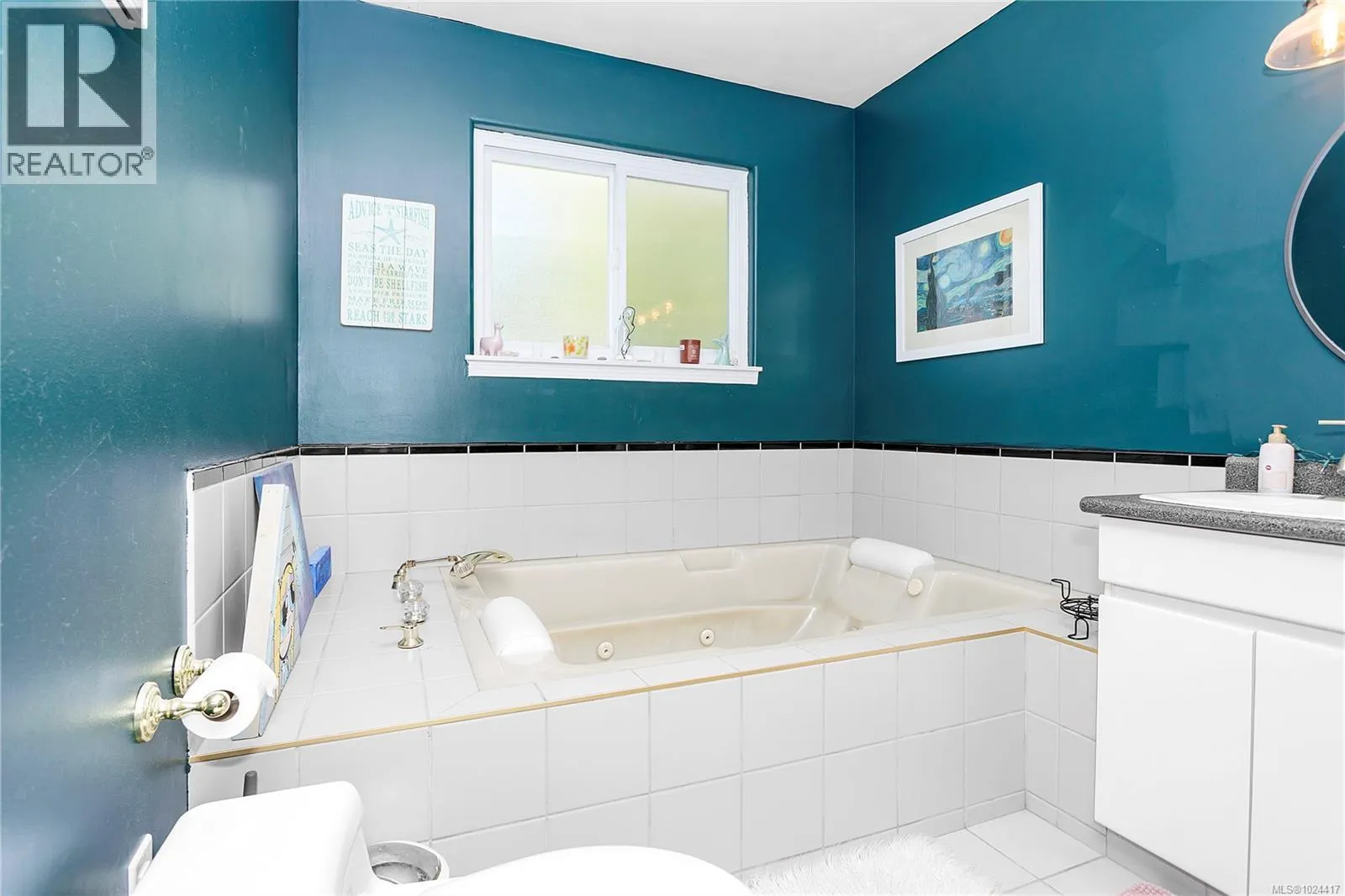 Welcome to this charming 3-bedroom, 2-bath rancher in a desirable North Nanaimo location! This well-maintained home features updated laminate flooring throughout and a bright, open-concept living and dining area with a cozy wood stove. The functional kitchen flows seamlessly to the private patio and a beautifully landscaped backyard, complete with mature greenery, a peaceful creek, a quaint little bridge, and two storage sheds. The primary bedroom includes a walk-in closet and a 3-piece ensuite with a luxurious hot tub. Two additional bedrooms offer space for family, guests, or a home office. Comfort is ensured year-round with an efficient heat pump system. Ideally located just minutes from the natural beauty of Neck Point Park and Pipers Lagoon, this home offers the perfect balance of tranquility and convenience. Donât miss this inviting West Coast retreat! (id:27476)