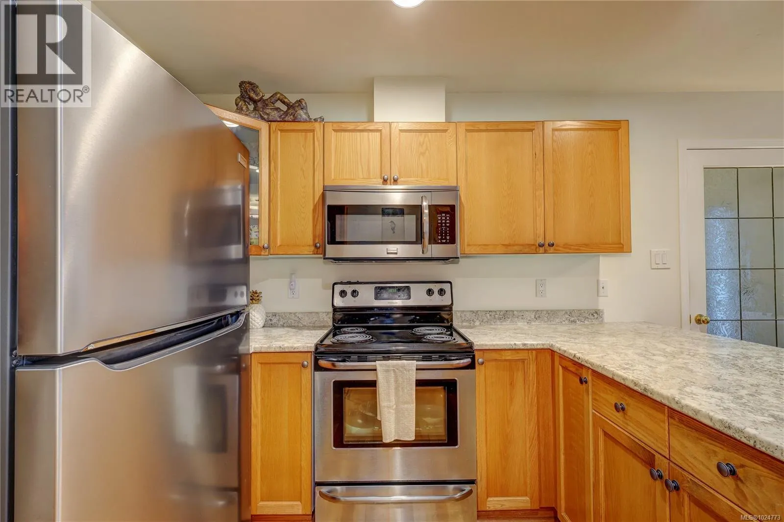 Life at Waterton Place is about ease, connection, and enjoying the best of North Nanaimoâwithout the upkeep of a larger home. This welcoming patio home community is especially appealing to active adults who value walkable amenities, friendly neighbours, and a quiet, well-maintained setting. This bright 2-bedroom, 2-bath residence offers comfortable one-level living with a layout designed to feel open, calm, and functional. Large living and dining areas flow naturally to a private patio, creating an ideal space for entertaining, light gardening, or relaxing with a book. Fresh paint, all new professionally installed modern light fixtures, skylights, and a new gas fireplace work together to create a warm, refreshed interior filled with natural light. The kitchen is thoughtfully laid out with ample counterspace and storage, while the generous primary bedroom includes a full ensuite. A second bedroom and main bath provide flexibility for visiting family, hobbies, or a home office. Practical features such as in-suite laundry, updated appliances, a single garage, and a second assigned parking space add everyday ease. Beyond the home itself, Waterton Place offers a strong sense of community, on-site RV parking, and a location that truly supports an active lifestyleâjust steps to shopping, dining, transit, and the many amenities that make North Nanaimo so desirable. A wonderful opportunity to enjoy low-maintenance living in a setting that supports the next chapter. (id:27476)
