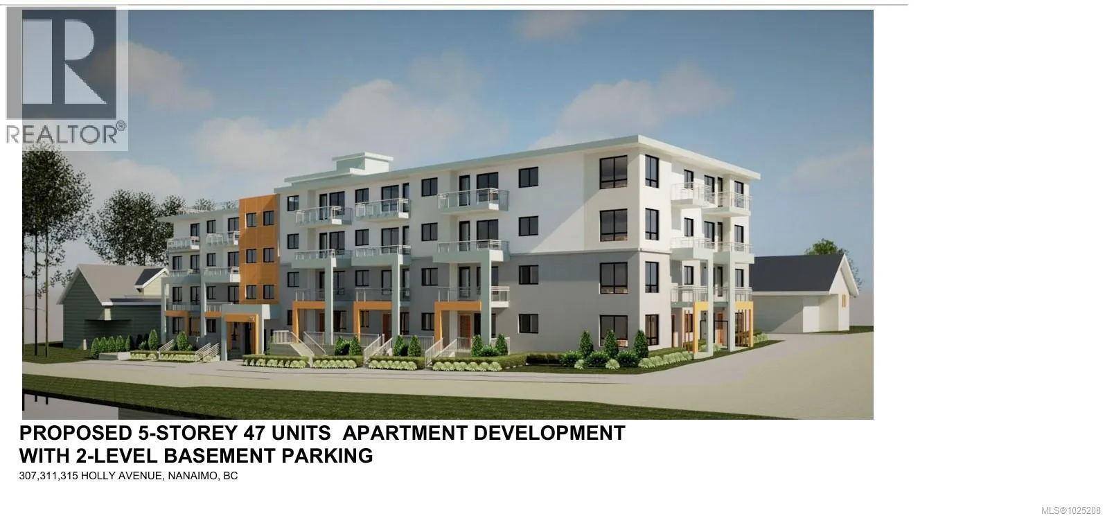 Exceptional multi-family development opportunity in Nanaimoâs rapidly evolving Harbour City. 307 Holly Ave, together with 311 & 315 Holly Ave, offers R8 zoning and comes with an approved Development Permit for a 47-unit apartment building, providing a clear path forward for investors and developers. All three properties are currently tenant-occupied, generating solid rental income while plans progress toward future constructionâoffering both holding income and development upside. This flexibility allows investors to strategically time development while benefiting from cash flow in the interim. Ideally located close to downtown Nanaimo, the waterfront, and the Harbourfront Walkway, the site is surrounded by key amenities including shopping, restaurants, transit, parks, and educational institutions. The area continues to see strong demand driven by urban revitalization and proximity to employment hubs. Nanaimoâs ongoing growth, coupled with long-term expansion tied to the Port of Nanaimo, positions this offering as a compelling opportunity for future appreciation. With increasing demand for purpose-built rental housing and a streamlined approval already in place, this is a rare chance to secure a prime, shovel-ready multi-family site in one of Vancouver Islandâs most dynamic markets. A strategic investment combining location, income, approvals, and long-term growth potential. Measurements approx. Buyers agent to verify if fundamental to purchase. (id:27476)