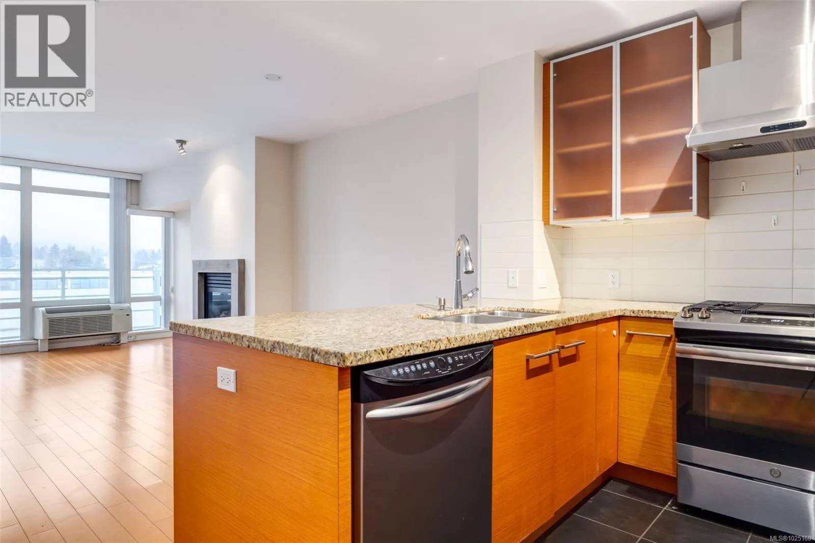 Imagine living along Nanaimoâs stunning waterfront located in a sought-after building, this bright 1-bedroom, 1-bathroom condo places you within easy walking distance of downtown shops, restaurants, cafés, and the seawall â perfect for a carefree, easy-living lifestyle. Just steps to Harbour Air, or a short drive to the Hullo fast ferry offering effortless access to downtown Vancouver and the ultimate in coastal convenience. Floor-to-ceiling windows fill the home with natural light while showcasing views of Mt. Benson. The spacious layout features a natural gas fireplace, gas range stove, air conditioning, and a dedicated laundry and storage room/office space. Step onto the generously sized balcony to relax and unwind after a day by the water. Complete with underground parking and a storage locker, this well-appointed condo offers comfort, convenience, and the freedom to simply lock up and go. (id:27476)
