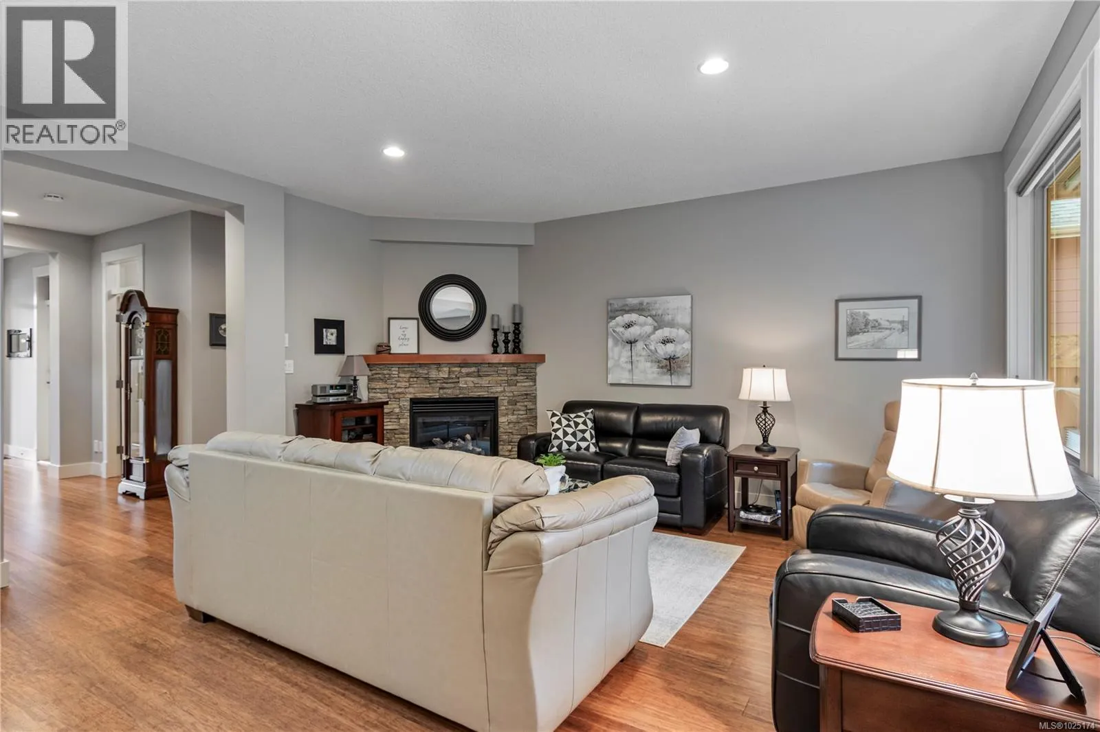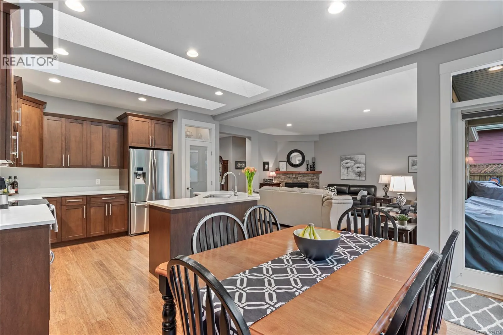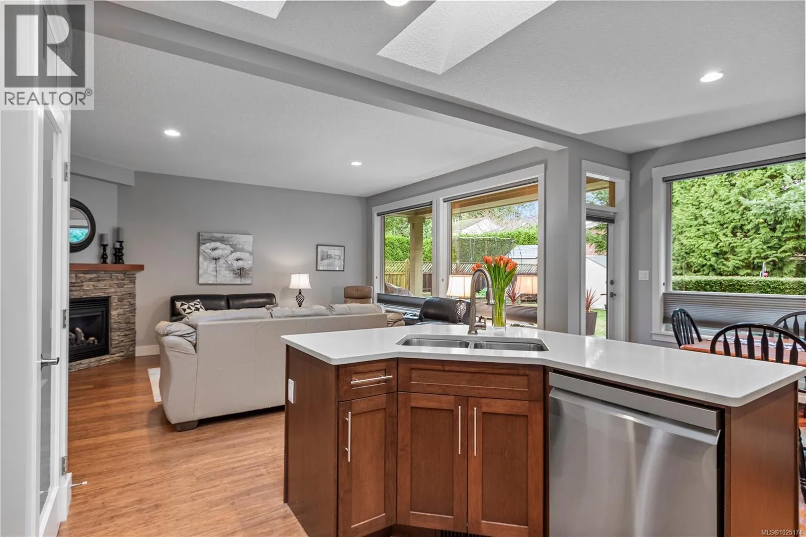 ***TODAY'S OPEN HOUSE IS CANCELLED DUE TO ILLNESS***Discover exceptional pride of ownership with this stunning 4 bedroom, 3 bathroom home, boasting lovely curb appeal. Perfectly situated in a highly sought-after North Nanaimo neighbourhood, this residence offers immediate access to excellent schools, vibrant parks, diverse shopping, and the picturesque Blueback Beach. Step inside to an open floor plan, where hardwood flooring flows throughout the main living areas, creating a warm and inviting atmosphere. The custom kitchen is a chef's dream, appointed with maple cabinets, granite countertops, a large island, a walk-in pantry, stainless steel appliances, and a new dishwasher, all illuminated by skylights. It seamlessly connects to the open living and dining areas, which feature a striking rock surround gas fireplace, beautiful large windows and direct access to the expansive backyard. The main floor includes the spacious primary bedroom, complete with a walk-in closet and a luxurious 5-piece ensuite with granite counters and ceramic tile. The primary bedroom also offers private access to the rear patio. A fourth bedroom or home office, and a dedicated laundry room are also conveniently located on this level. Upstairs, two additional bedrooms share a well-appointed 5-piece Jack and Jill bathroom. Outside, the backyard is a true oasis, offering a spacious patio ideal for entertaining, a secure fenced yard, and a large, level expanse perfect for outdoor activities. A convenient shed provides additional storage, complementing the generous outdoor living space. This home truly combines comfort, convenience, and an enviable lifestyle, featuring a leaf guard gutter system, a recently serviced heat pump system for optimal climate control, and a specially treated garage floor for durability and ease of maintenance. (id:27476)