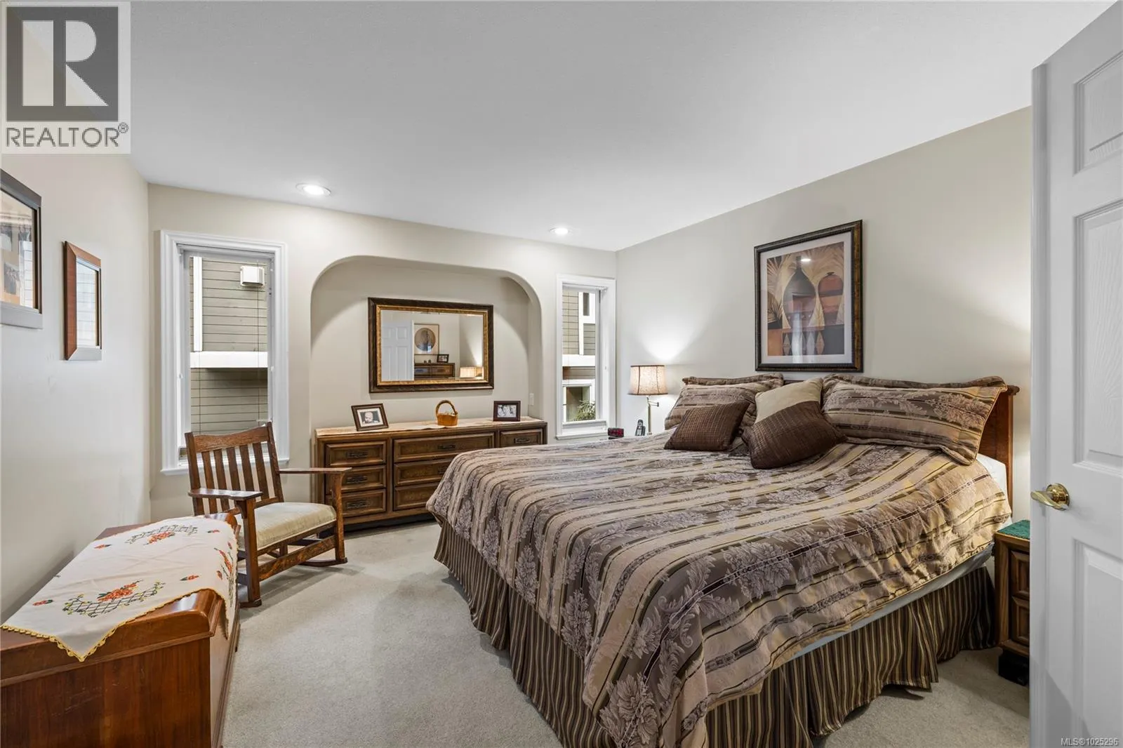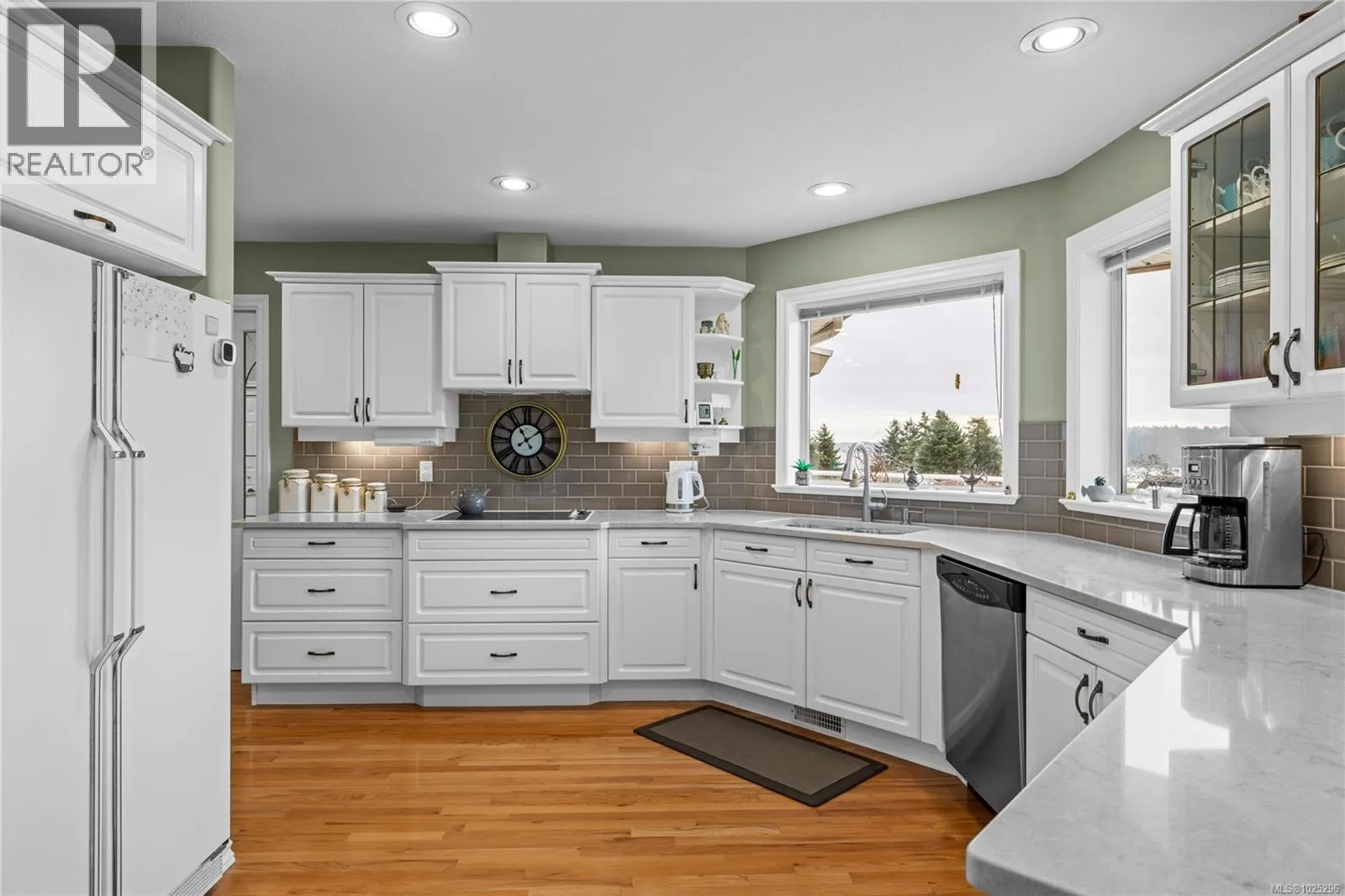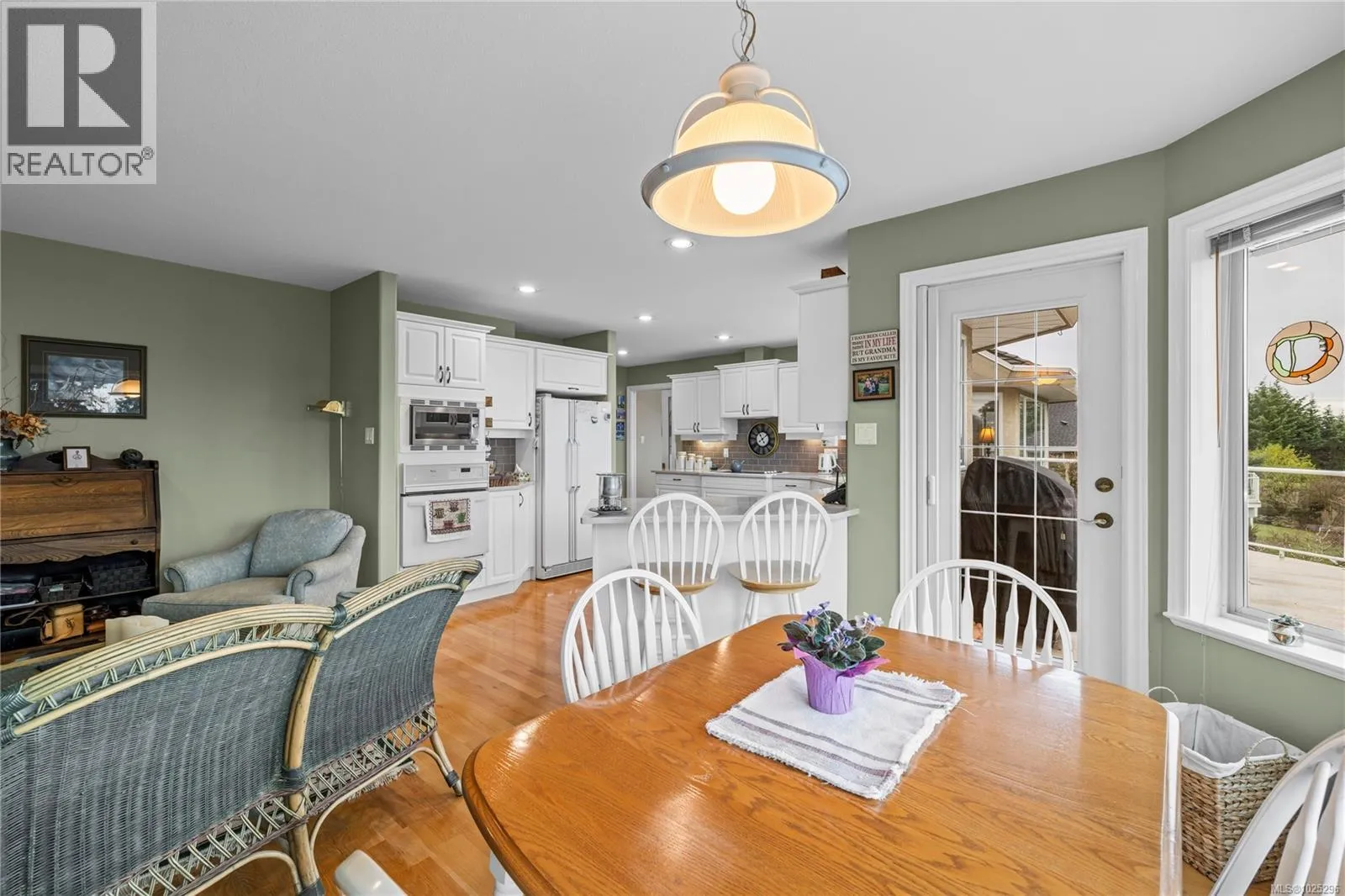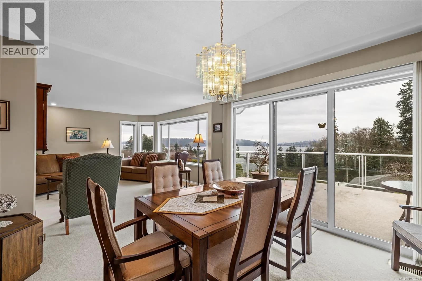 Tucked away on a desirable cul-de-sac, this immaculate one-owner home offers southern exposure and ocean views over Departure Bay. The back deck has stairs to a park-like backyard with covered patio, gardens and detached shed. The kitchen enjoys bay views and features a wall oven, eating bar, plus an adjoining nook and family room with gas fireplace. Thoughtfully designed to maximize views, the separate living and dining room enjoys sweeping vistas. The main level includes a primary bedroom with walk-in closet and three-piece ensuite, a second bedroom and four-piece bathroom. The fully finished walk-out lower level offers a family room and rec room with a double-sided fireplace, two bedrooms with window benches, a three-piece bathroom, laundry and storage. Added features include hardwood flooring and heat pump. Just a short walk to beach access and Linley Valley hiking trails. For more info see the feature sheet. All data and measurements are approx and must be verified if fundamental. (id:27476)