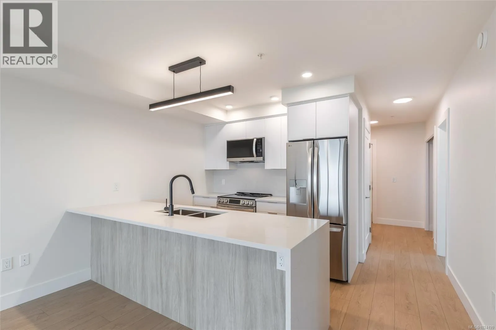 Welcome to Lumina, a thoughtfully designed residential community in Nanaimoâs Harbourview District, where modern urban living is seamlessly paired with a relaxed coastal atmosphere. Ideally located along the harbourfront and seawall, the community is just a short walk from Casino, cafés, restaurants, parks, boutique shopping, and the Hullo Ferries, placing you in the heart of a dynamic and continually evolving downtown setting. This two-bedroom, two-bathroom residence is designed with comfort and functionality in mind, featuring a bright open-concept layout and a generous balcony. Both bedrooms and the living area enjoy ocean views, creating a light-filled living environment with a strong connection to the harbour. Inside, refined finishes include quartz waterfall countertops, smart appliances, and soft-close cabinetry, offering a clean, contemporary aesthetic that balances style and practicality. Residents also enjoy access to Luminaâs rooftop amenities, an elevated shared space with views of the harbour and surrounding mountains. Whether starting the day with a coffee or winding down in the evening, the setting offers a relaxed connection to both the waterfront and downtown Nanaimoâs growing energy. More than just a home, this is an opportunity to be part of a vibrant community and the future of the cityâs urban core. (id:27476)