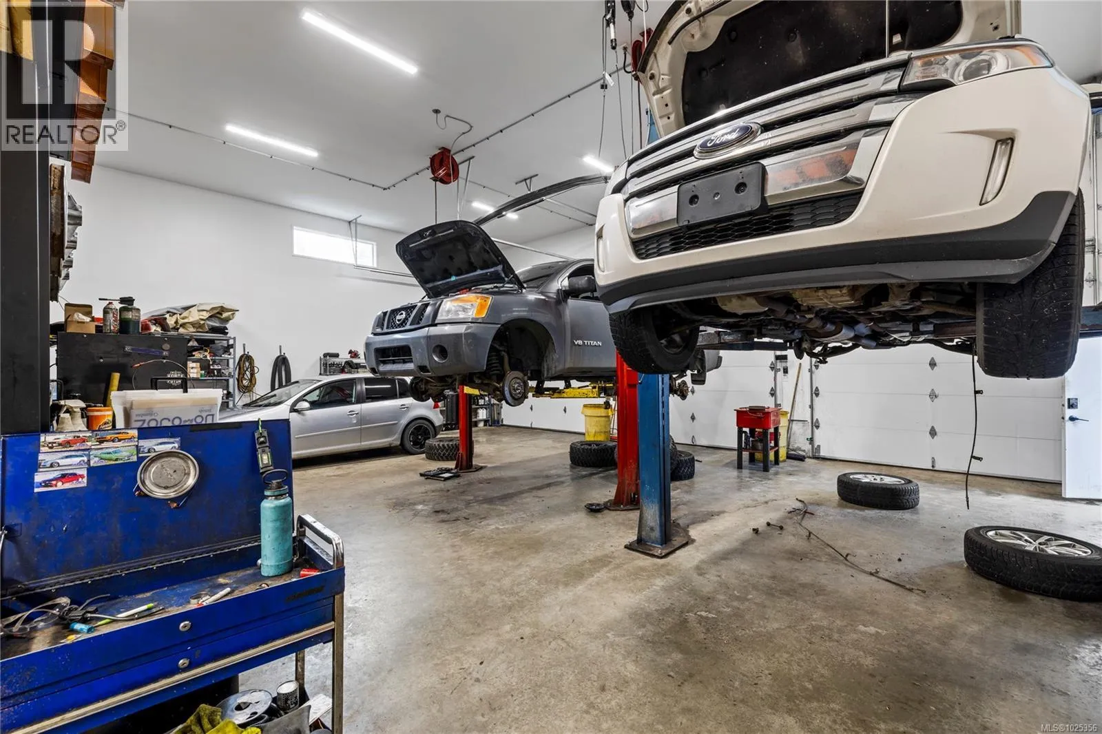 Positioned in North Jinglepot, on a private 2.91 acre parcel, this property offers a blend of rural space and functionality. This gated, fully fenced private oasis with a vast amount of parking for all your toys and equipment is surrounded with green space that is fully irrigated and includes 2 greenhouses with raised beds for your growing enjoyment. The backyard has been recently landscaped and can be enjoyed from your large covered outdoor patio with adjacent hot tub. The 1624 sq. ft. home includes 3 bedrooms, 3 bathrooms and attached double garage with a recent electrical panel upgrade to 200 amp service and separate Generac panel and outdoor plug; in addition to a new generator panel in the pump house with upgraded well equipment and irrigation pump. This property boasts an additional detached double garage with office and storage, as well as, a 50â x 40â dream shop with covered RV parking and plug in. The shop includes a 400 sq. ft. âman caveâ mezzanine, 2 pc. bathroom with on-demand water, heat pump, 3 bays with automatic doors, 200 amp service, 2 hoists with overhang hose reels and compressor. Data & measurements are approximate and should be verified if relied upon. (id:27476)