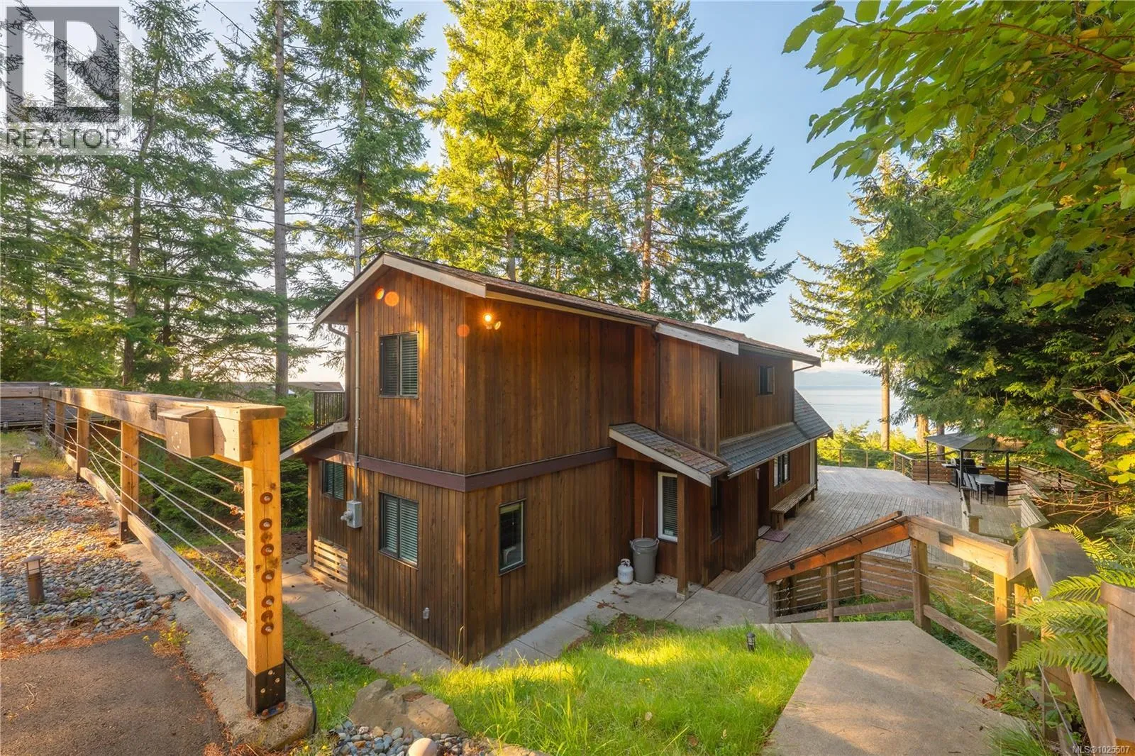VIEWS! Set on a private 0.20-acre lot in desirable North Nanaimo, this 4-bedroom, 2-bathroom chalet-style A-frame home is designed to showcase its breathtaking surroundings. Soaring vaulted ceilings and dramatic floor-to-ceiling windows flood the main living area with natural light while framing unobstructed views of the Georgia Strait and the Coastal Mountains beyond. A cozy gas fireplace anchors the living space, creating warmth and comfort year-round. The expansive, nearly 1,500 sq. ft. deck offers the ultimate outdoor living experience, perfect for entertaining or simply soaking in the panoramic ocean and mountain vistas. With excellent storage, unique architectural character, and total privacy where you canât see your neighbour's, this home strikes the perfect balance of style and seclusion. An extraordinary opportunity to own one of North Nanaimoâs most distinctive view properties, donât miss it. (id:27476)