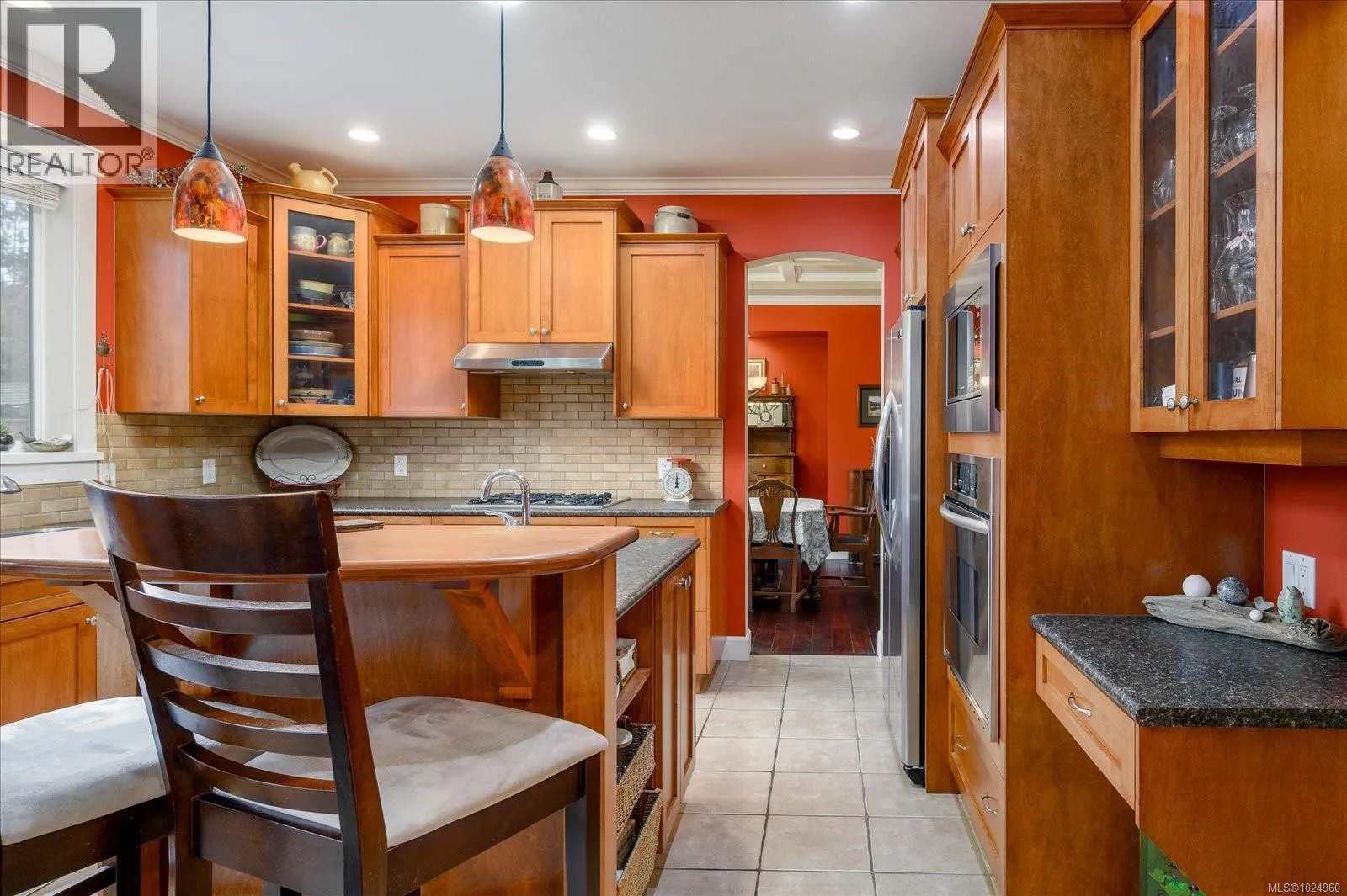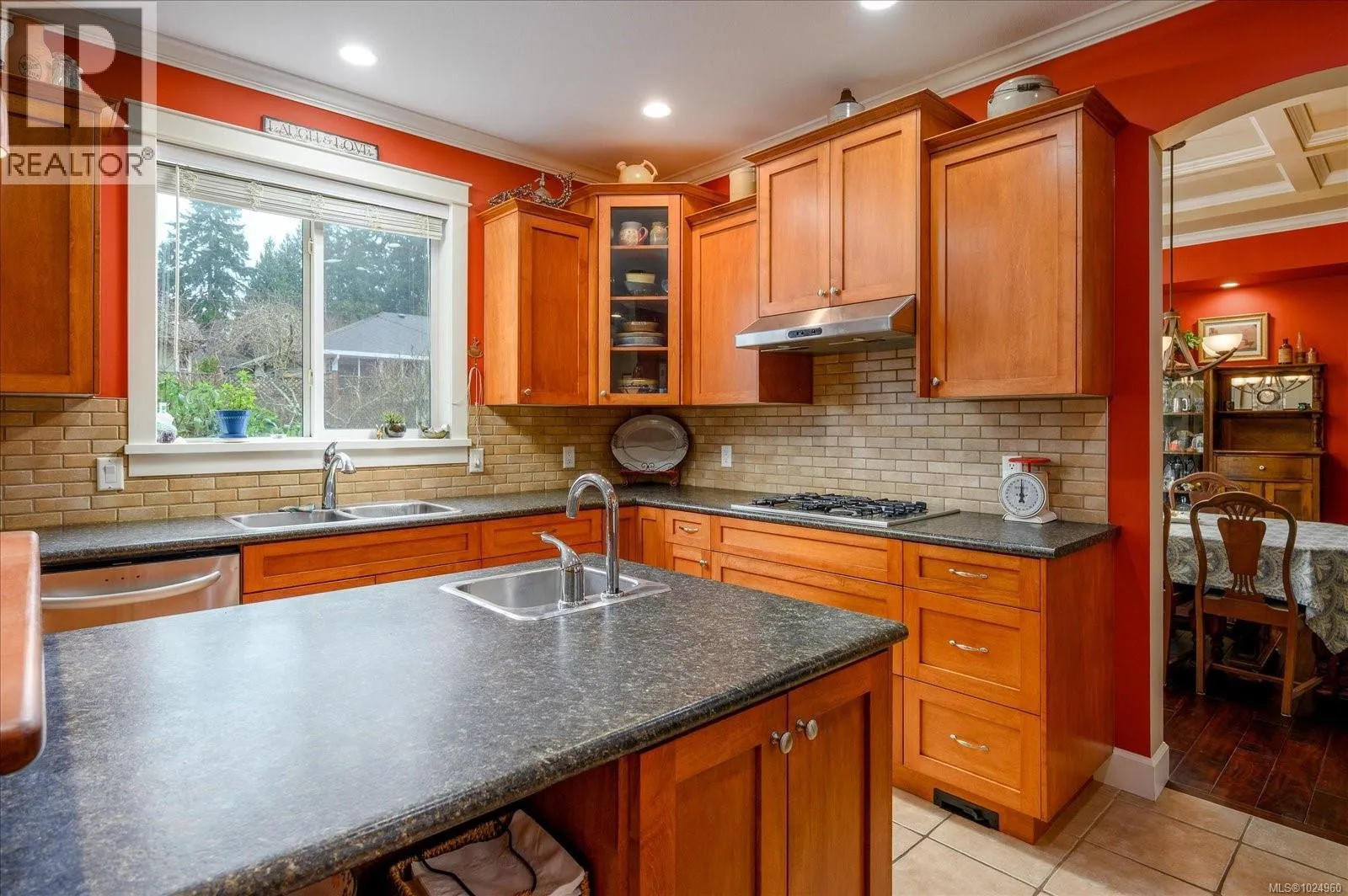 Welcome to this elegant 2,640 sqft residence offering 4 beds + den and 3 baths in one of North Nanaimoâs most prominent and sought-after neighbourhoods. Set on a large, level city lot, this main-level living home showcases vaulted over-height ceilings, generous proportions, Chefâs Kitchen that is attached to the family room with French doors leading to the fully fenced backyard. The home has refined custom touches throughout, perfect for upscale entertaining and everyday comfort. The sophisticated den features its own exterior French doors and private patio, ideal for a professional home office, studio, salon, or home gym. Upstairs, youâll find four spacious bedrooms, highlighted by a serene primary bedroom retreat with spa-inspired ensuite and indulgent soaker tub. Enjoy walking distance to top schools, plus close proximity to shopping, restaurants, everyday amenities, parks, and beautiful beaches. A timeless blend of luxury, functionality, and exceptional location. Do not miss this one (id:27476)