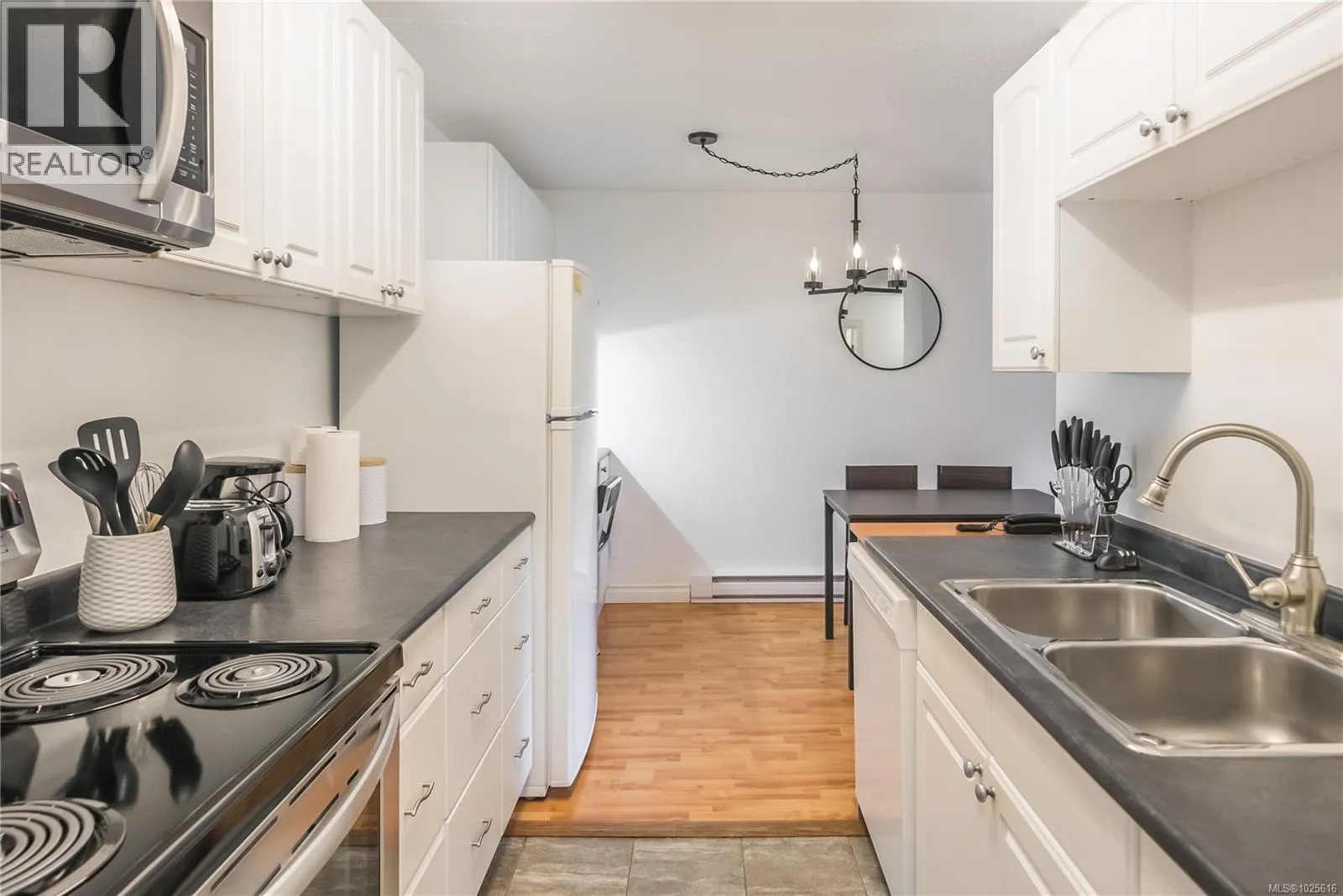 Beautifully updated second floor one bedroom condo offers a rare opportunity to buy into a building undergoing a major exterior transformation. A building envelope replacement is well underway, including new windows, doors, decks, and a complete exterior refresh. The dated wood siding is being replaced with durable, modern materials including concrete board siding, adding years of resilience and a clean, contemporary look. Purchasing now allows you to secure a unit before the project is complete and enjoy the full benefit once construction is finished. Inside, the unit has been tastefully updated and shows extremely well, super clean with laminate flooring and kitchen updates. Can be purchased furnished, see listing agent for details. Shared laundry, however strata permits in suite laundry with ventless dryers. Parking included, walkable to grocery stores, pharmacy, transit and Nanaimo Hospital. Quick possession available. Measurements approximate, buyer to verify if important. (id:27476)