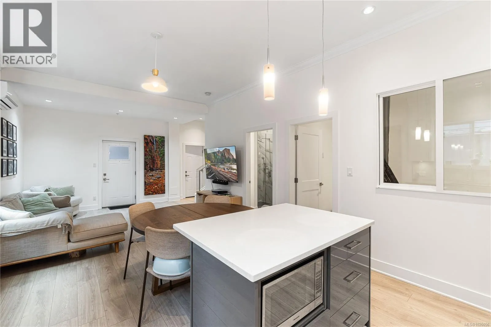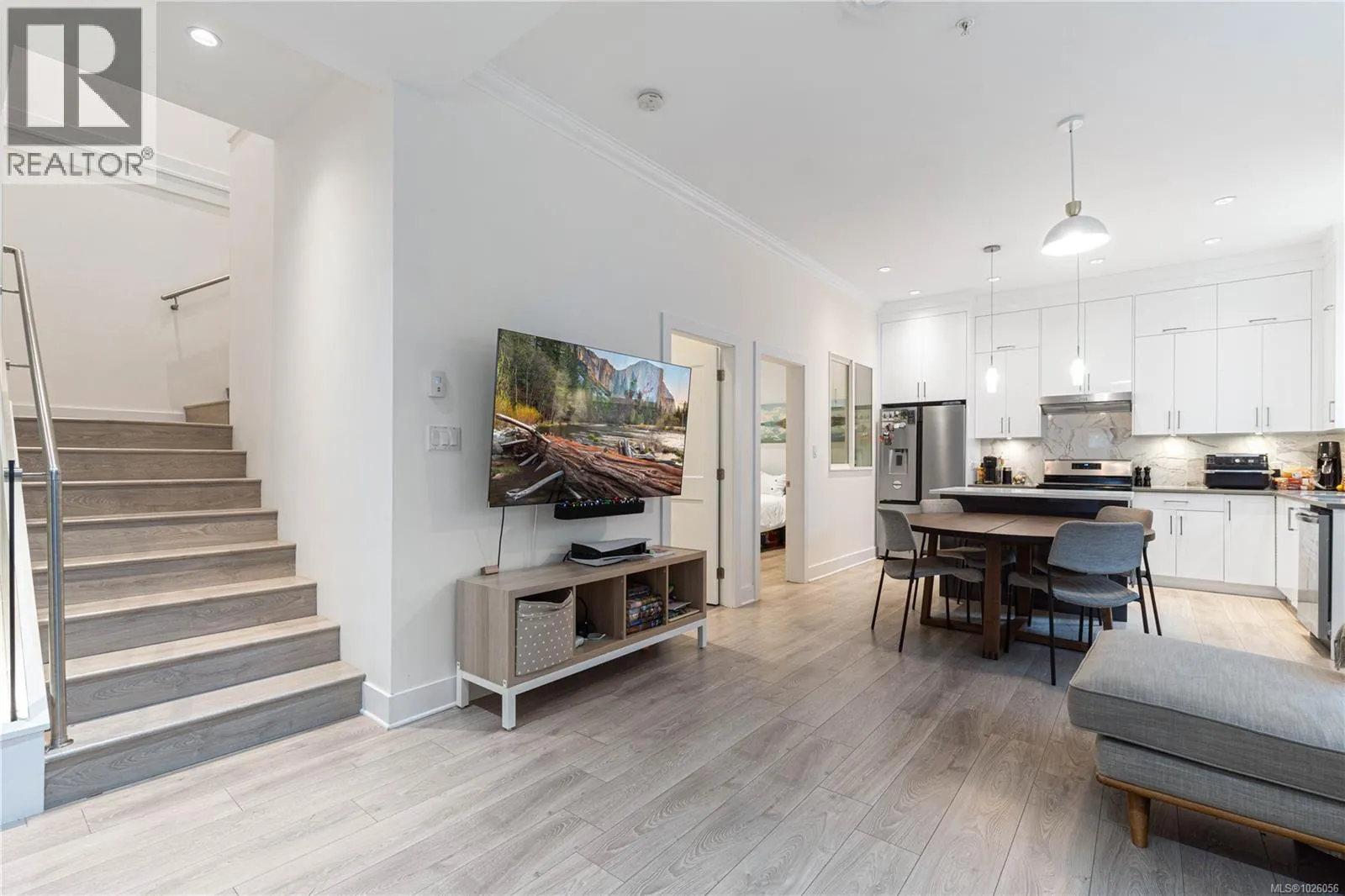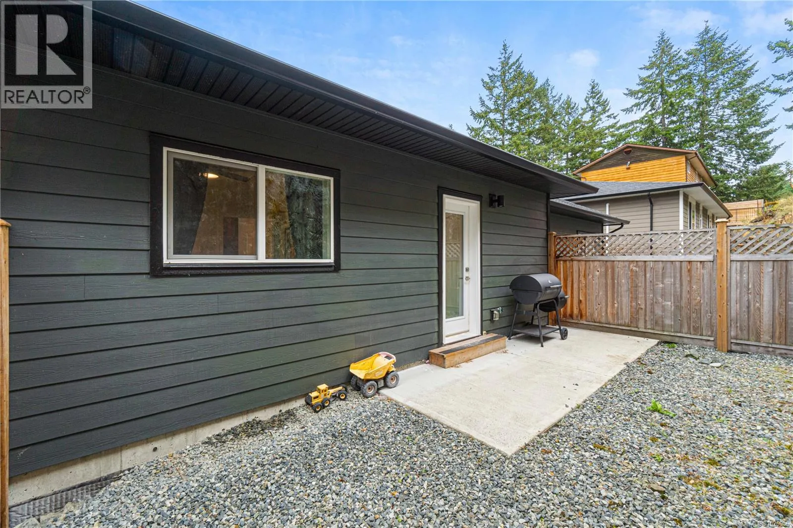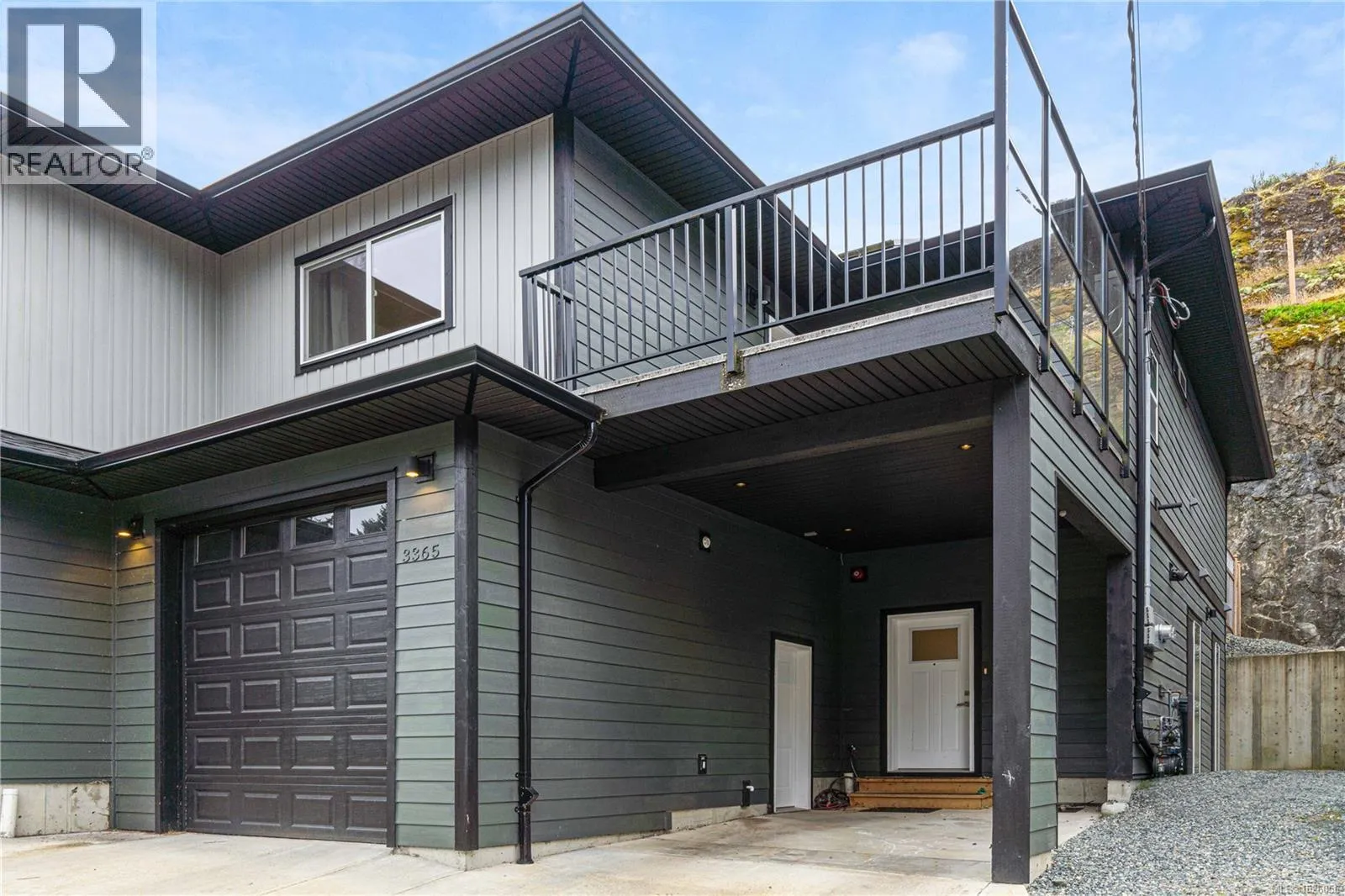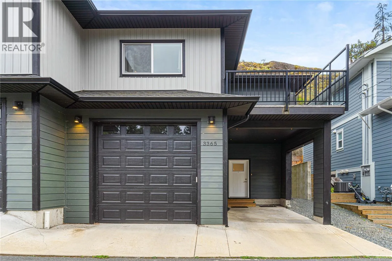 Departure Bay gem! Desirable location near Linley Park. Quality, 2021 built, half-duplex with custom features. Nearly 1800sqft 3 bed + den & 3 bath. The main floor boasts 10 ft ceilings, an open-concept kitchen with quartz counters, high-gloss cabinetry, stainless appliances & open concept dining/living areas. A den on the main next to a 3 pc bath with custom shower adds versatility. Glass & steel railings on stairs to a skylit upper level with 9 ft ceilings. Stunning primary suite featuring a luxurious 5-piece ensuite, walk-in closet & large balcony. 2 additional bedrooms, 3rd full bath & laundry room. Hardi-board exterior & low maintenance lot. Stylish finishing with laminate & tile flooring, quartz counters throughout, floor to ceiling tile showers, extensive pot-lights & fire-safe sprinklers. Energy-efficient heating & Air conditioning. No strata fees. Fenced back yard & patio. Extra-tall garage & carport. Property manager & excellent tenants in place. All measurements approximate. (id:27476)