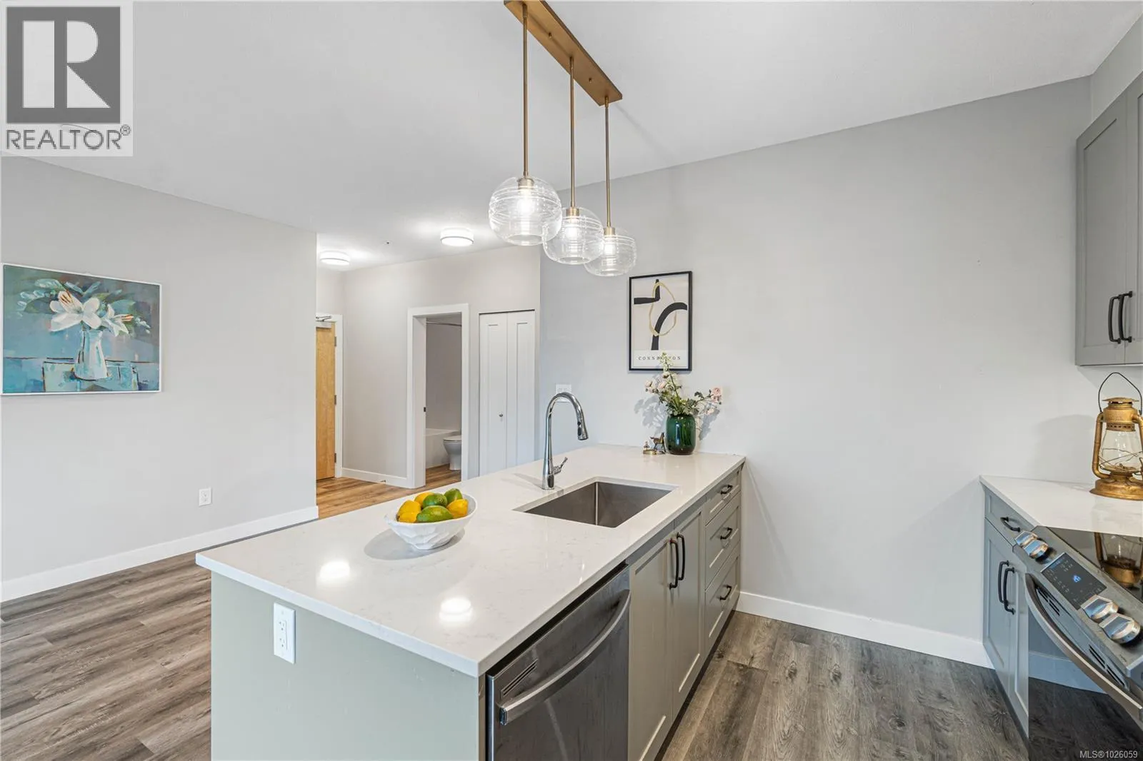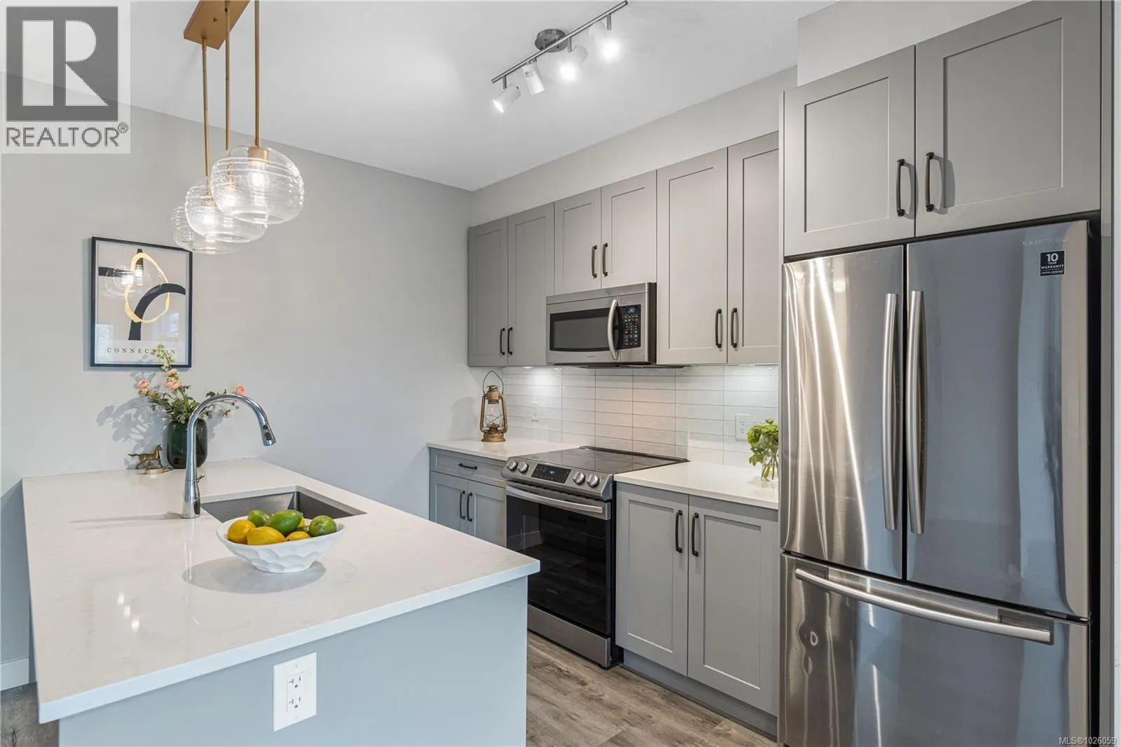 Surrounded by parkland & peace, this riverfront condo is coastal living as itâs best! 405-20 Barsby Ave was the show suite when built in 2021 with lovely extras. Featuring the best 4th floor corner unit location with extra windows (SO bright & cheery), high ceilings, covered deck for year-round use with views overlooking the river & park on to ocean glimpses of the harbour. 2 bedroom & 2 bathroom âCâ plan offering 862 square feet of stylish living space in a quality building under warranty. Open concept with a clean aesthetic featuring quartz countertops & spacious island (perfect for entertaining), stainless steel appliances, high end lighting, in unit laundry, underground parking & EV car share for convenience. The spacious primary bedroom boasts a walkthrough closet to an ensuite with walk in shower. The location is exceptional: just a short walk to downtown Nanaimo, the waterfront, seawall, seaplanes & Hullo foot passenger ferry to downtown Vancouver. Ideal for anyone seeking a low maintenance lifestyle. Pet-friendly without size limit. Rentals allowed if over 30 days stay minimum. Quick possession possible. All measurements & information approximate. (id:27476)