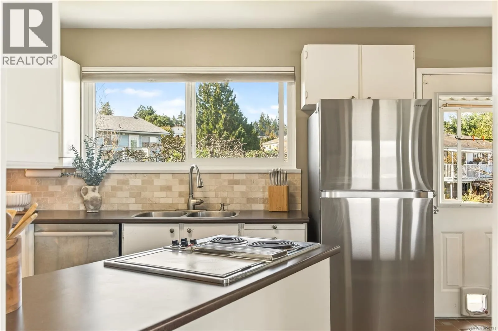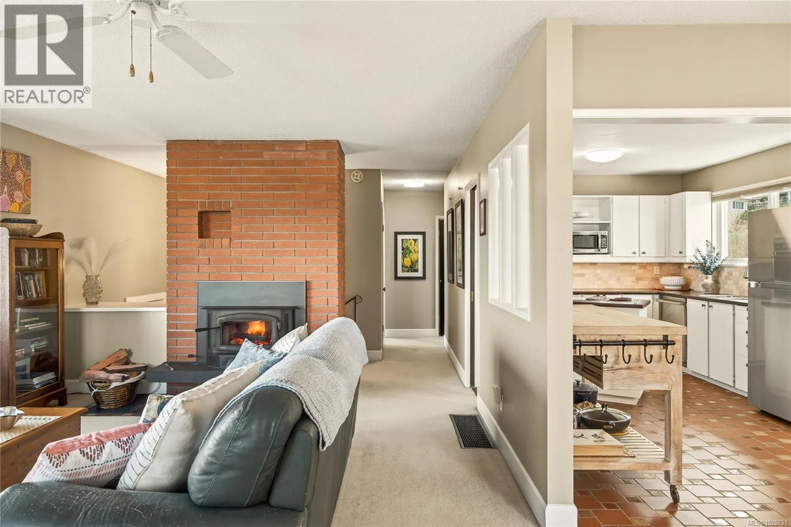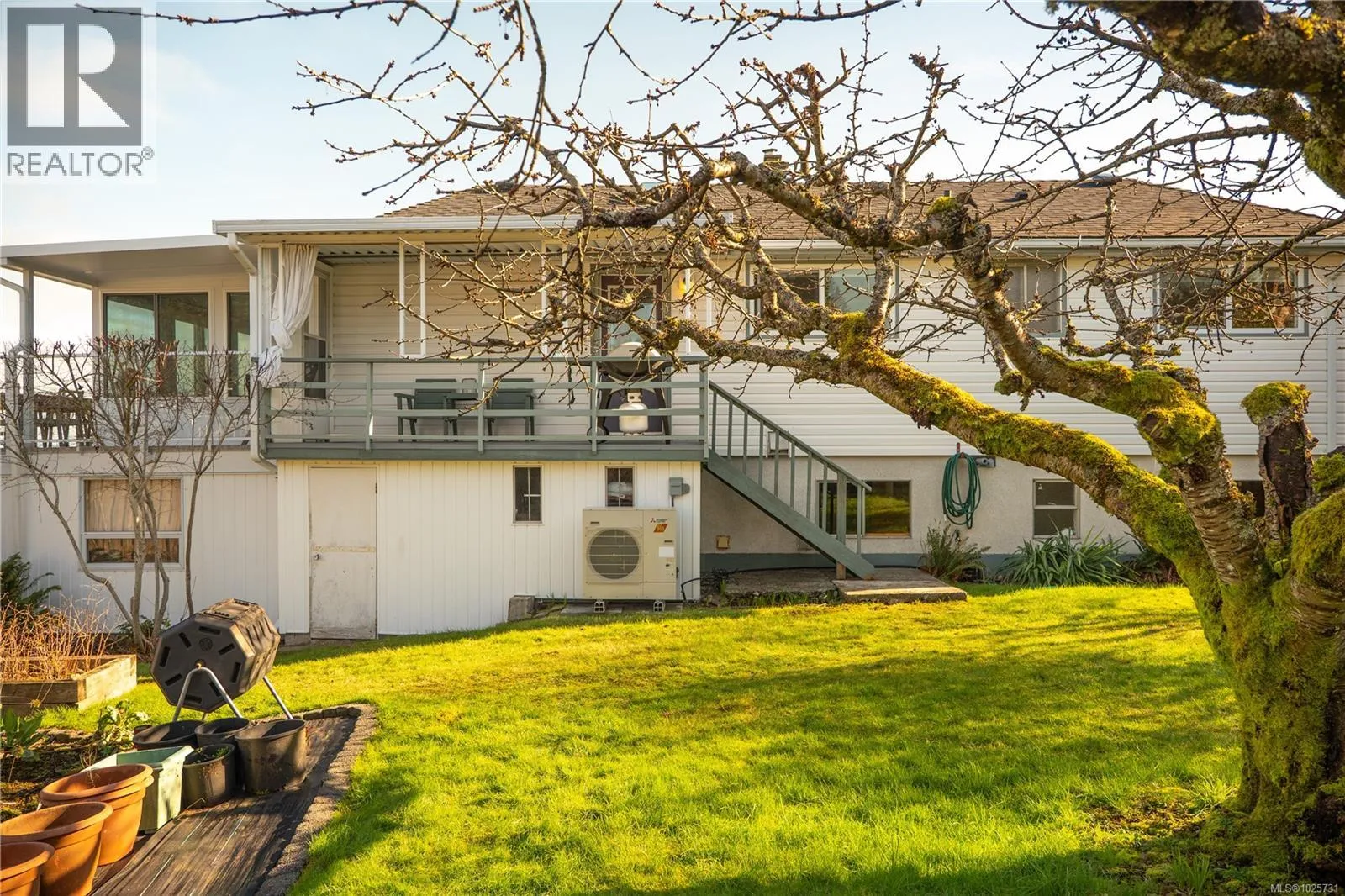 Stunning ocean views, established food forest gardens & sought-after Cilaire location come together in this beautifully maintained home. Located just 2 blocks from Departure Bay Beach & Beach Estates Park, the property offers an exceptional blend of lifestyle and long-term value. Set on a quiet road in one of Nanaimoâs most established neighbourhoods, the level lot provides privacy and walkability, with Cilaire Elementary School just up the street. The professionally designed yard is a standout feature - a mature food forest with native edible landscaping, irrigated garden beds, fruit trees & a paver patio enclosed in a private outdoor retreat. The backyard also offers additional SW garden space and room to relax or play. Inside, a functional mudroom adds everyday practicality. The upper level features a bright, open-concept living area filled with natural light & ocean views. Expansive windows and outdoor spaces capture sweeping sunrise views over the Salish Sea, coastal mountains, ferries & seaplanes. A woodstove adds warmth & character. The primary bedroom includes maple hardwood floors & ocean views, while the 2nd upstairs bedroom overlooks the landscaped yard with classic parquet flooring. A newer sunroom and adjoining deck were added to maximize light and views, creating a comfortable year-round space. The spacious mid-century kitchen offers an open layout with under-lit tiled backsplash, wall oven, and access to a covered rear deck for outdoor BBQs. Downstairs provides 2 additional bedrooms and a generous rec room with a 2nd wood-burning fireplace. Partially finished, it offers flexibility for future customization. Key updates include a heat pump with A/C, roof approximately 10 years old, new attic insulation, updated windows, hot water tank, and a double garage. Rare opportunity to own in one of Nanaimoâs most desirable neighbourhoods. Call/Text Mandy Colford of Team Invest West 250-739-5678 for a private viewing or info pkg (id:27476)