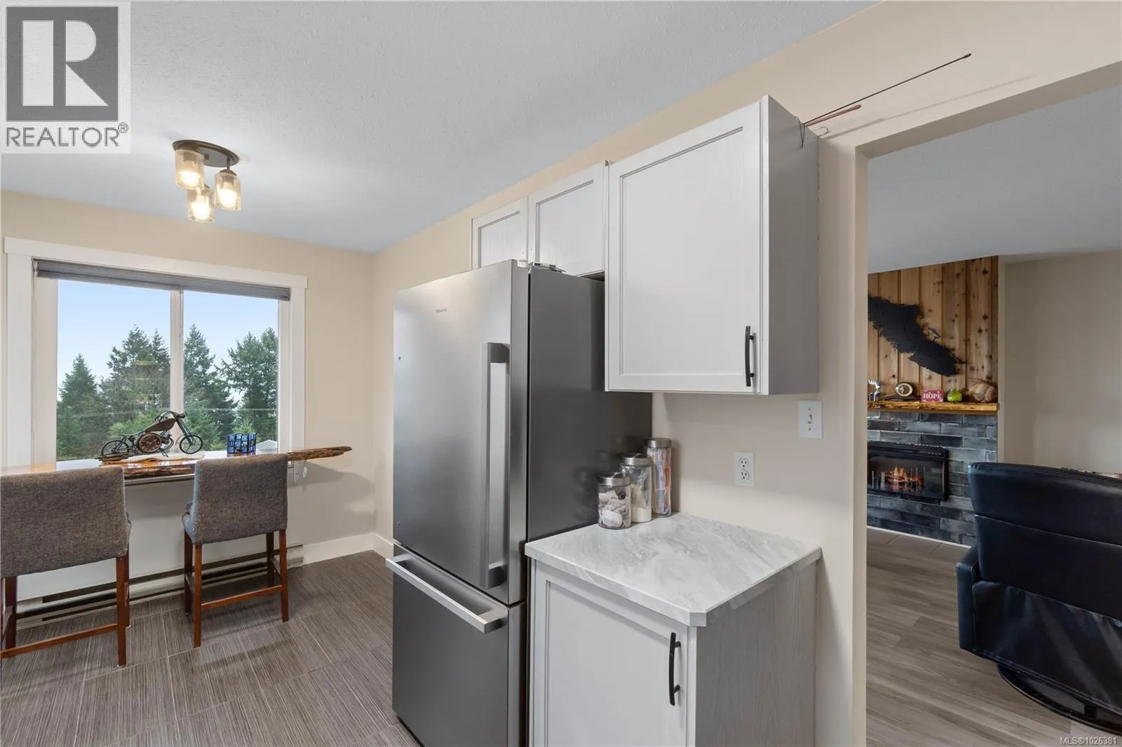 Updated 2 bed, 2 bath main-level town home with views. This stair free residence has been tastefully renovated with contemporary colours, modern finishes, and thoughtful design throughout.The bright and spacious main living area showcases lovely ocean views, while the large windows fill the home with natural light, enhancing the open-concept layout. The inviting living room features a stylish electric fireplace, adding warmth and ambience year-round.The updated kitchen offers ample cabinetry and workspace, perfect for both daily living and entertaining. The generously sized primary bedroom includes a 3pce ensuite bathroom, while the second bedroom is ideal for guests, hobbies, or a home office. A second 4pce bath adds convenience and flexibility. Additional highlights include in-suite laundry, storage, and a covered carport. Ideal home for those seeking a relaxed, low maintenance lifestyle close to the ocean and nearby amenities. Size approx verify if impt. (id:27476)