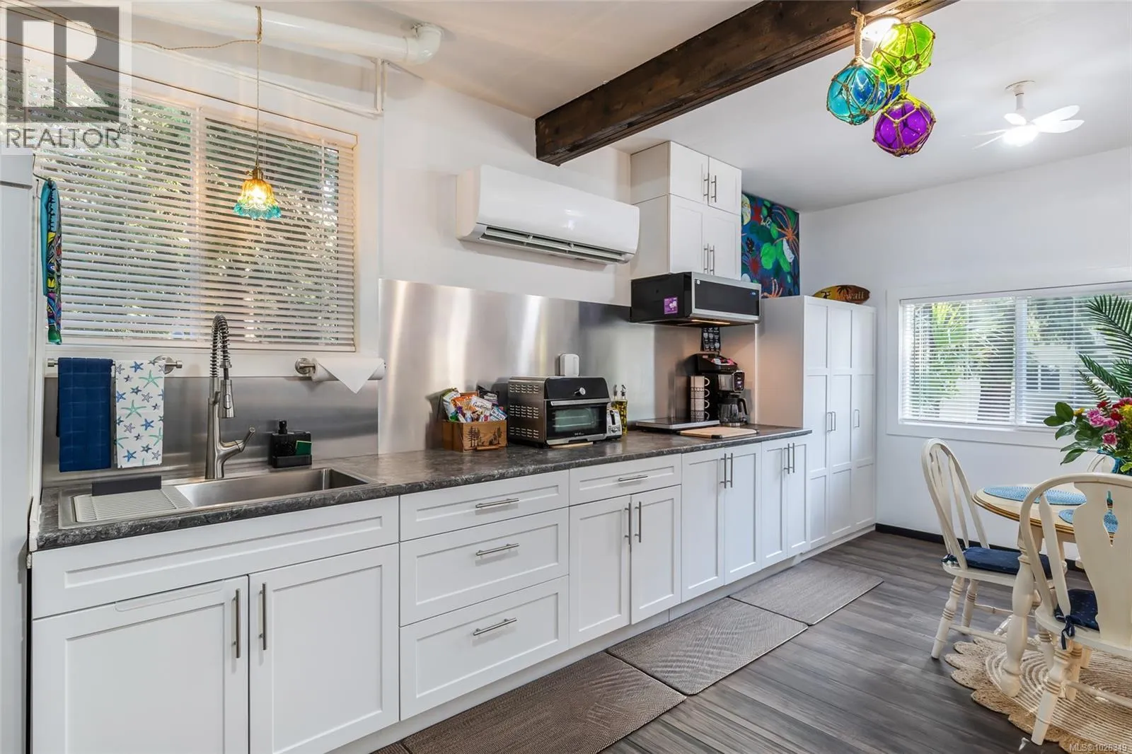 Tucked away on a private 1.7-acre sanctuary minutes from town, this exceptional property offers rare flexibility w/3 residences & 2 fully serviced RV hookupsâideal for multi-generational living, extended family, or high rental income. Surrounded by mature trees & beautifully maintained grounds, the setting is peaceful & inviting from the moment you arrive. Meandering trails wind through the property, leading past a striking natural rock feature w/fossils & a charming pond that creates a serene, park-like backdrop. This is a property designed to be lived in & enjoyed, where children can explore, guests can unwind, & every season brings its own beauty. The main residence offers +2.100 sq. ft. w/ 4 Bed and 2 Bath perfectly suited for comfortable family living. A bright open-concept kitchen & living area is filled with natural light & flows seamlessly onto a spacious deck overlooking the surrounding greenery. Ideal for morning coffee, outdoor dining, or evening gatherings immersed in nature. The thoughtful layout provides both connection & privacy, with generous bedrooms and flexible space for a home office or hobbies. Beyond the main home, two well-maintained secondary residences create exceptional versatility & income potential. The newly finished two-level detached guest house features 1.5 Bath in-suite laundry & its own private setting, making it ideal for extended family, long-term tenants, or short-term rental opportunities (buyer to verify). Both secondary units are being sold furnished, offering a turnkey mortgage helper option from day one. Adding even more value are 2 fully serviced RV hookupsâperfect for visitors, recreational vehicles, or additional revenue streams. Serviced by city water & a septic system, this property blends rural tranquillity with the convenience & reliability of municipal services.A rare opportunity to secure privacy, flexibility, & long-term income potentialâthis is acreage living without compromise. (id:27476)