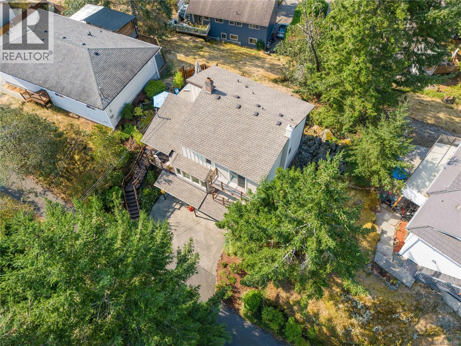 HUGE PRICE DROP! Seller found a home to buy & want a quick sale. Soaring vaulted ceilings, expansive windows & sliding glass doors flooding this home with light & showcasing forest & mountain views. Enjoy privacy & set well back from the Rd. Located in Nanaimoâs treasured Sherwood Forest, 1 min from Linley Valley Park trails & close to Departure Bay Beach. Lovingly maintained & professionally renovated. Custom Merritt kitchen is a true showpiece featuring waterfall Cambria quartz counters, Bosch Stainless appliances & coffee bar. Beautifully renovated main bathroom with soaker tub. New flooring, paint, updated plumbing, electrical & lighting. Stunning floor to ceiling fireplace. 3 bedrooms upstairs with plush wool carpets & 2nd bathroom. LOTS of storage throughout & 4'+ ft storage area/crawlspace above the wired workshop. Multiple decks & balconies for enjoying Island Life. New H/W Tank & 9yr roof. Book your showing & visit this unique sanctuary in the city. Measurements approximate (id:27476)