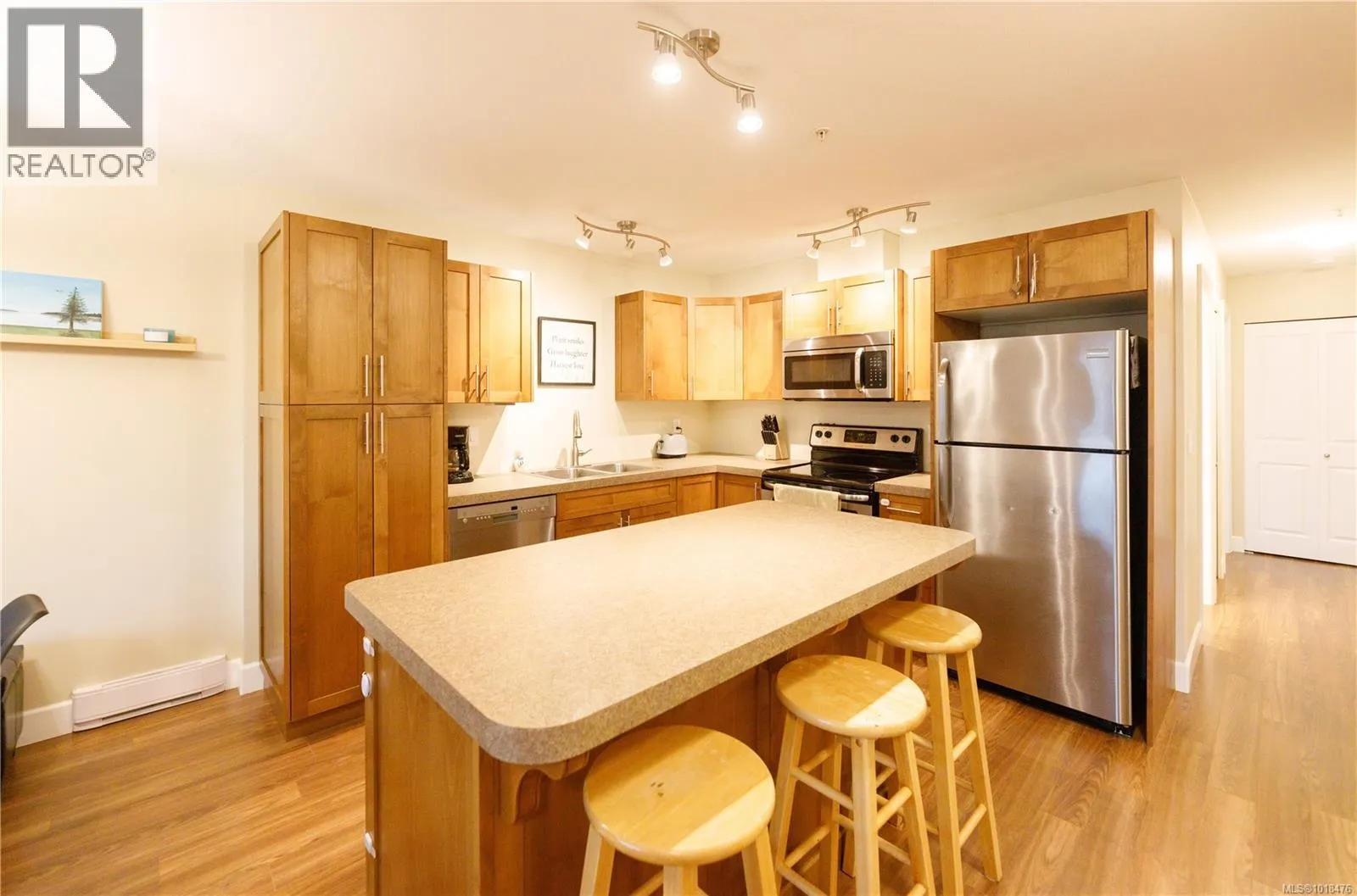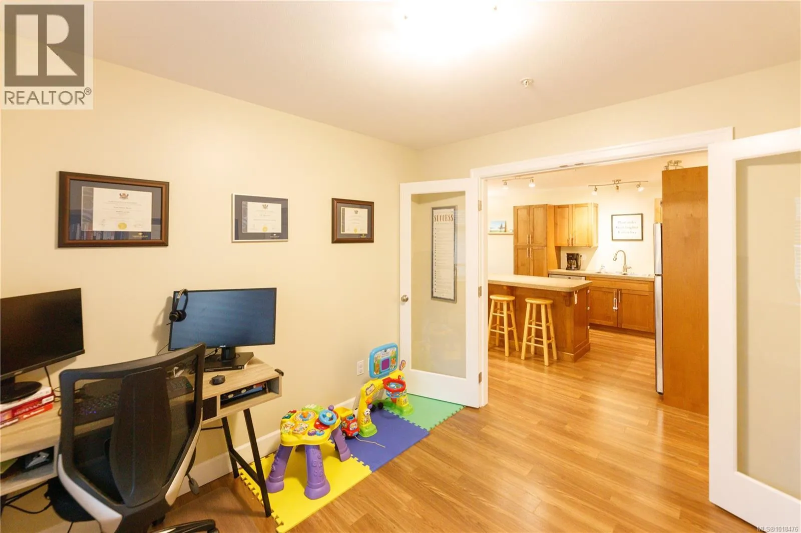 Welcome to 4460 Hedgestone Place - a beautifully crafted upper-level townhome in the highly sought-after Amblewood Village. This bright and inviting home offers an open-concept living area with an electric fireplace, perfect for cozy evenings and entertaining guests. The modern kitchen features stainless steel appliances, recessed-panel cabinetry, and a functional island ideal for meal prep or casual dining. Just off the kitchen, a versatile den provides a perfect space for a home office, reading nook, or potential guest room. Step outside to your private deck overlooking lush green space with stunning views of Mt. Benson, and enjoy the convenience of in-suite laundry and a private storage unit. Walking trails within the complex connect directly to Salal Park, making it easy to enjoy nature, exercise, or stroll with family and pets. This home is part of a well-run strata, and one dog or cat is welcome, making it ideal for pet owners. Ideally located near Nanaimo North Town Centre, Longwood Station, and Oliver Woods Recreation Centre, it offers quick access to shopping, transit, and schools for all ages. The friendly, well-maintained community and nearby amenities make it an ideal choice for families, professionals, or downsizers seeking comfort, convenience, and lifestyle all in one. Donât miss the opportunity to call this beautiful townhome home - a perfect blend of style, functionality, and location in Amblewood Village. Measurements and data approximate; verify if important. For more information please reach out to Aaron@Travisbriggs.ca (id:27476)