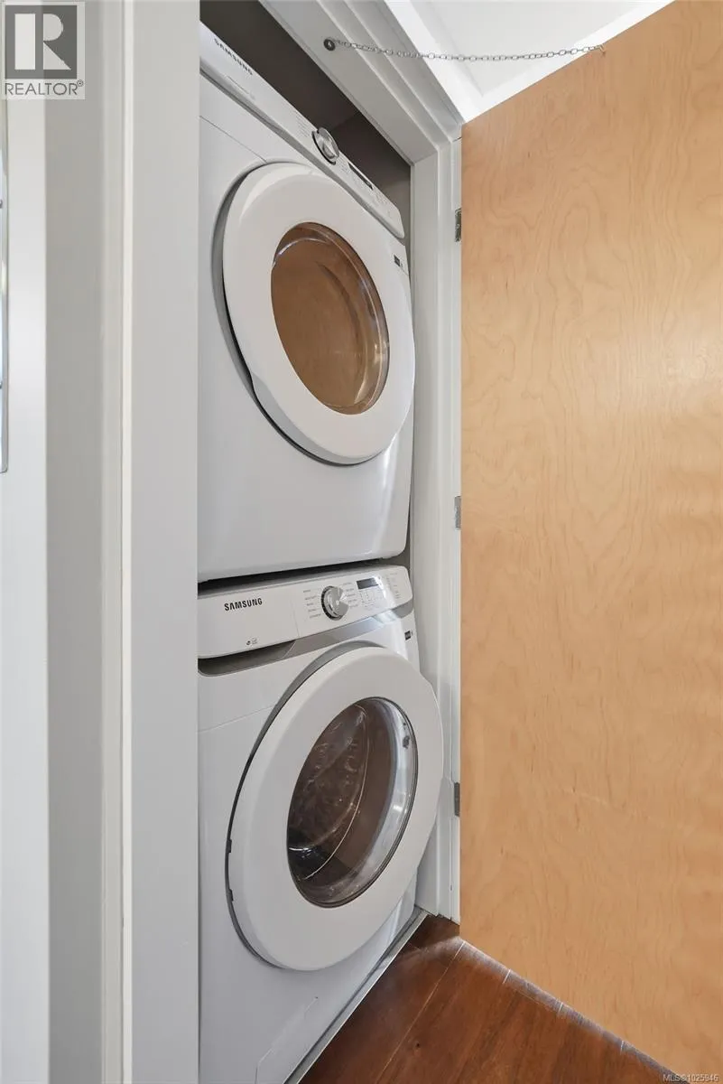Bright, modern and ideally located in the heart of Nanaimo, this rare opportunity offers 1 of only 3 exclusive condos in a beautifully designed mixed-use building with professional offices below. Walk to shops, close to the hospital, dining and everyday amenities while enjoying striking architecture youâll be proud to come home to. This 2 bed, 2 bath home features a thoughtful floor plan with generous storage, walk-in closet, in-suite laundry, spacious dining area and breakfast bar seating. High vaulted ceilings and large windows fill the space with natural light. Quality finishings include granite countertops, hardwood floors, heated tile, stainless steel appliances and solid birch doors. Move-in ready and impeccably maintained â simply unpack and enjoy. All measurements approximate and should be verified if important. The developer has a 99 year licence on parking and storage. The developer does assign a parking stall to the strata lot. The developer will rent a storage locker to the new owner if they wish at a monthly rent of $50+GST for the storage locker. For more details or to view this property, contact Lois Grant Marketing Services direct at 250-228-4567 or view our website at www.LoisGrant.com for more details. (id:27476)