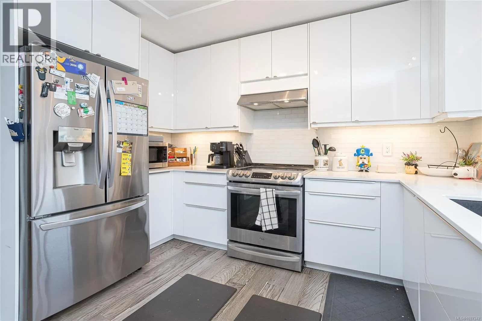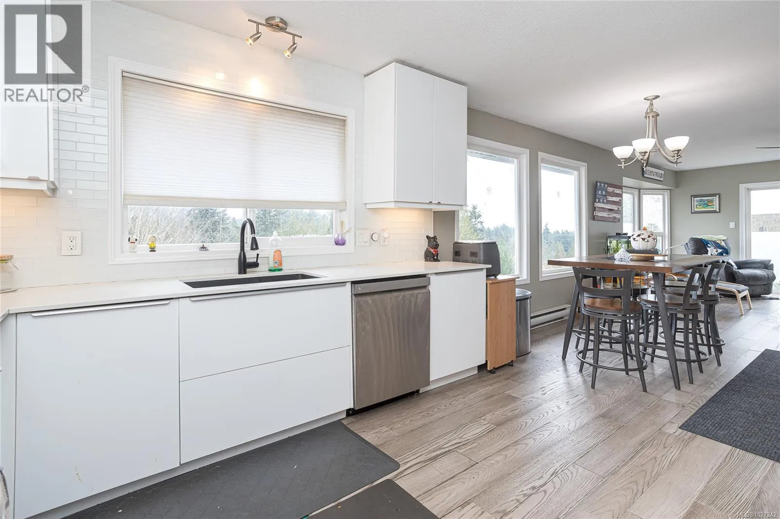 Welcome to the most affordable home in the centrally located and highly desirable Uplands area. Tucked away at the end of a quiet no-through road in Long Lake Heights, this 3-bedroom, 3-bathroom family home offers a level of privacy that is hard to find. Situated on a generous .3-acre lot with mature trees and a fully fenced yard, this property provides a serene retreat while remaining minutes away from the best of North Nanaimo. The home features a bright and spacious open-concept floor plan on the upper level, illuminated by large vinyl windows. The kitchen is equipped with quartz countertops and flows seamlessly into the dining and living areas, ideal for family life. The main floor is thoughtfully designed with the primary suite, featuring its own private ensuite, as well as a second bedroom and a full 4-piece bathroom, keeping the family close together on one level. Downstairs, the walk-out level offers even more space with a large recreation room, a third bedroom, and a combined 2-piece bathroom and laundry room. While the home has seen extensive updates over the years, including durable Hardi-plank siding, a 3-zone ductless heat pump for efficient climate control, and a full kitchen, it remains a fantastic opportunity for a buyer looking to bring their own personal style and finishing touches to a solid property. Outdoor living is a highlight here, with an expansive south-facing deck where you can take advantage of the lovely mountain views and the quiet atmosphere of the no-through street. For families, the location is unbeatable: you are within walking distance to both Uplands Park Elementary and Wellington High School, and just a short drive from the shopping, dining, and amenities of North Nanaimo and the recreation at Long Lake. All measurements are approximate and must be verified if important. (id:27476)