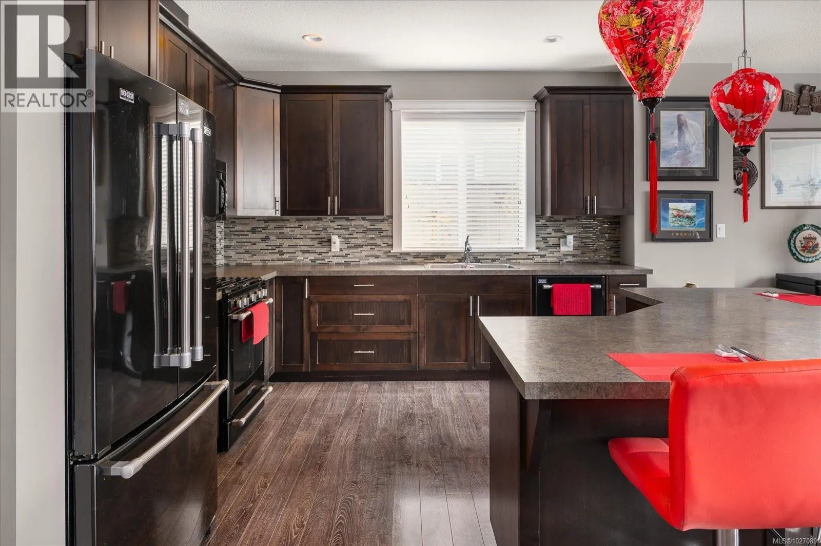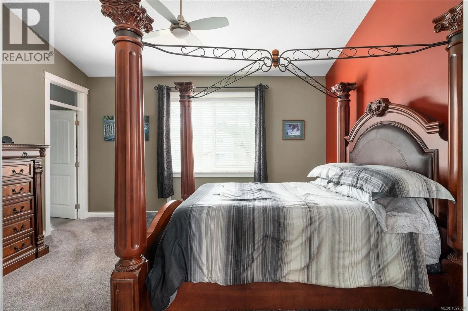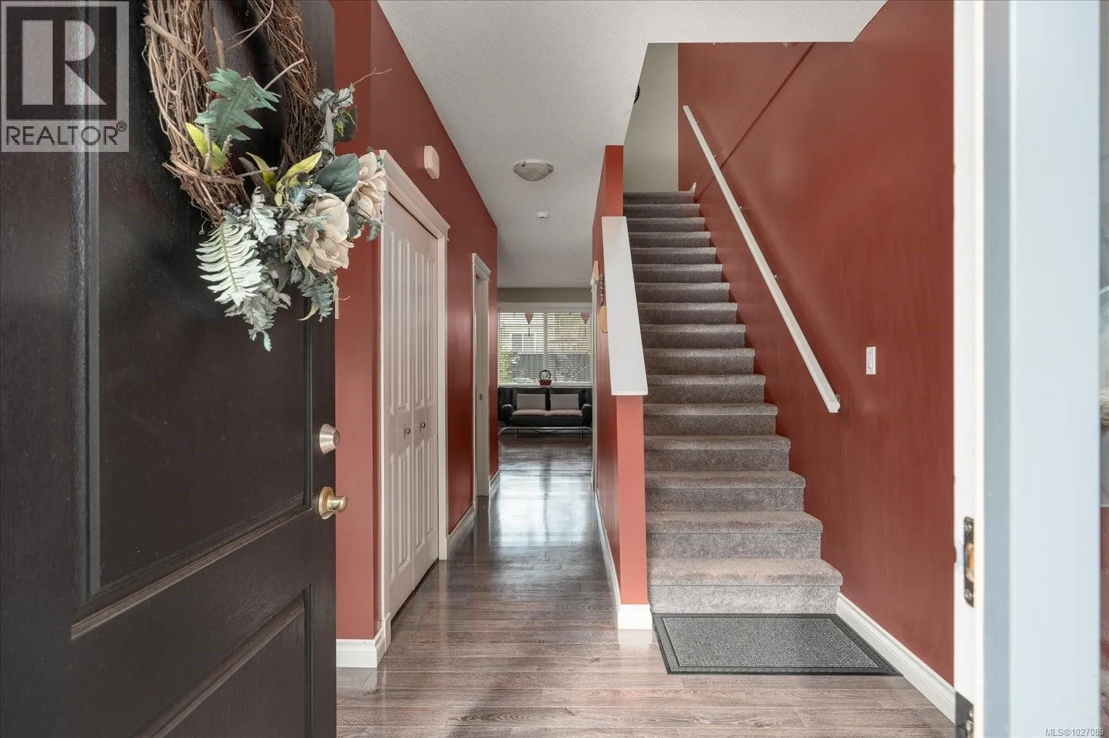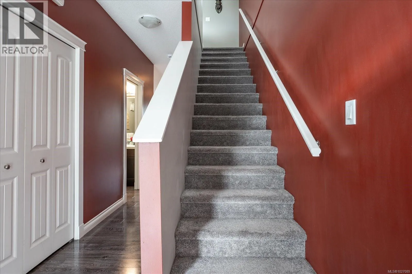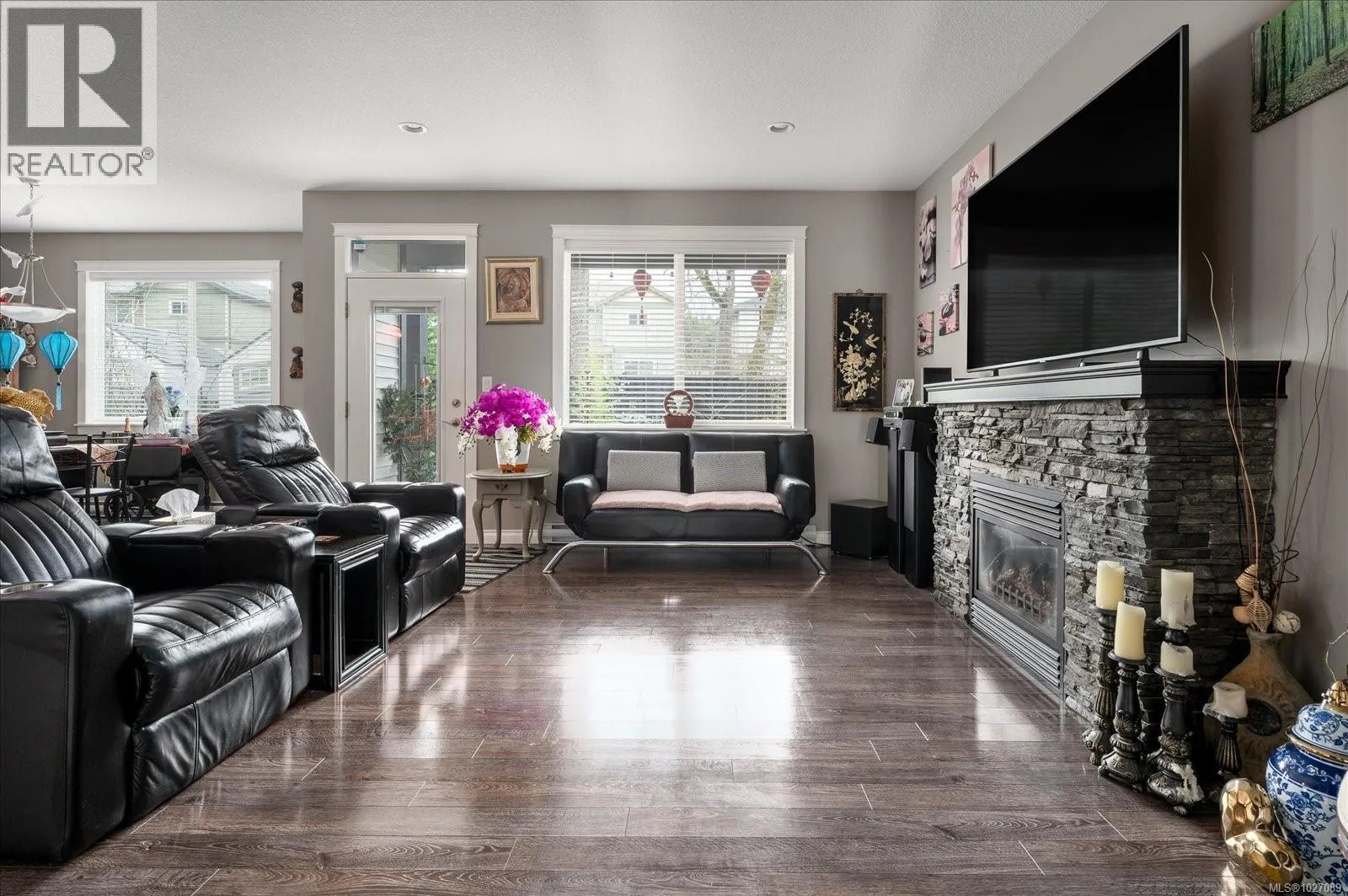 This immaculate home is perfect for a first time buyer, family or retiree, located near Westwood Lake Park which offers hiking, swimming, kayaking, jogging & biking. The 2 storey home is 2143 sq. ft. of fabulous living space with 4 bedrooms & 3 bathrooms in a very desirable neighbourhood & situated on a quiet no thru street. Walk through the front door to the main level and you are greeted with a spacious open plan, 9 ft ceilings, gas fireplace in the living room, large windows allowing an abundance of natural light providing a very bright & airy ambience. The dining area is a nice size perfect for family dinners. Between the living and dining area there is access to the backyard with a patio for sitting, outdoor dining, bbq area all for your outdoor enjoyment, overlooking mature trees & park like setting. This backyard is incredible with all the beautiful flowers, several fruit trees, privacy, it truly is your own little piece of paradise. The gourmet kitchen has tiled backsplash, a convenient island/eating bar, lots of cabinets & counterspace allowing plenty of workspace. Upstairs you will find the primary bedroom with vaulted ceilings, large walk in closet and a 5 piece luxurious ensuite. There are 3 additional bedrooms, a 4 piece bathroom & efficient laundry room with built in cabinets, counter space and sink. The fantastic location is also close to Vancouver Island University. Pride of ownership is very evident in this wonderful home that is suitable for any life style. The back yard is low maintenance, fenced & includes a garden shed for outdoor storage. (id:27476)