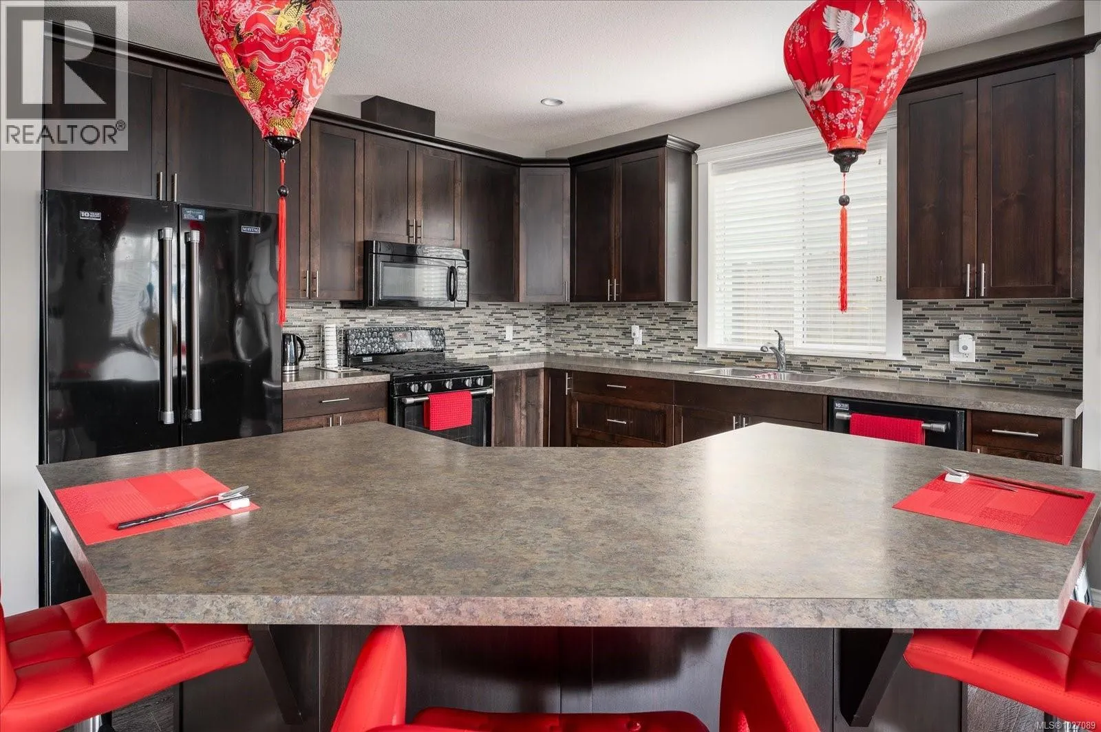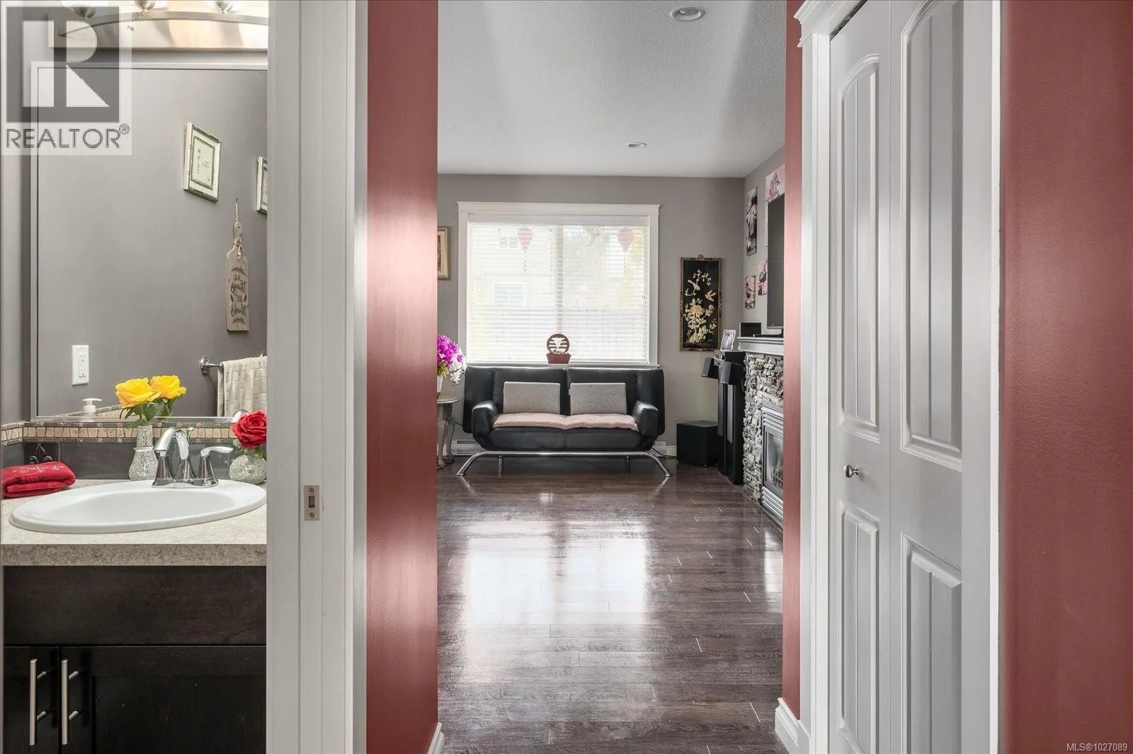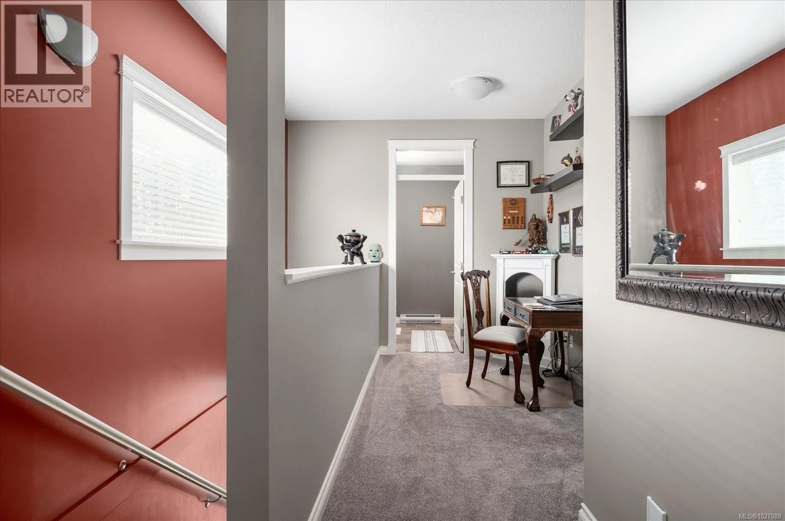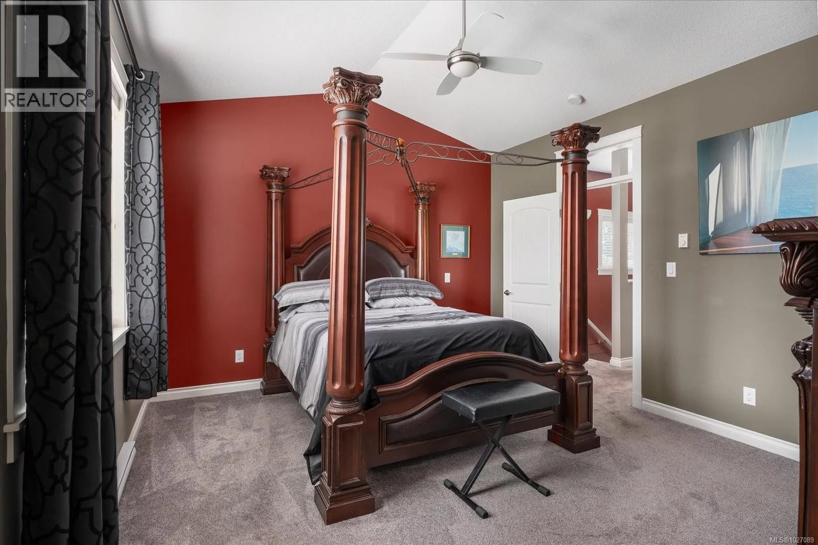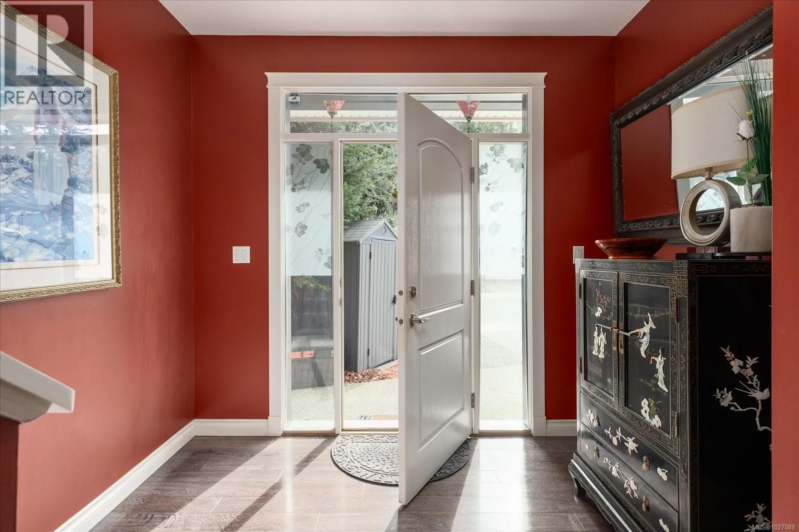 This immaculate home is perfect for a first time buyer, family or retiree, located near Westwood Lake Park which offers hiking, swimming, kayaking, jogging & biking. The 2 storey home is 2143 sq. ft. of fabulous living space with 4 bedrooms & 3 bathrooms in a very desirable neighbourhood & situated on a quiet no thru street. Walk through the front door to the main level and you are greeted with a spacious open plan, 9 ft ceilings, gas fireplace in the living room, large windows allowing an abundance of natural light providing a very bright & airy ambience. The dining area is a nice size perfect for family dinners. Between the living and dining area there is access to the backyard with a patio for sitting, outdoor dining, bbq area all for your outdoor enjoyment, overlooking mature trees & park like setting. This backyard is incredible with all the beautiful flowers, several fruit trees, privacy, it truly is your own little piece of paradise. The gourmet kitchen has tiled backsplash, a convenient island/eating bar, lots of cabinets & counterspace allowing plenty of workspace. Upstairs you will find the primary bedroom with vaulted ceilings, large walk in closet and a 5 piece luxurious ensuite. There are 3 additional bedrooms, a 4 piece bathroom & efficient laundry room with built in cabinets, counter space and sink. The fantastic location is also close to Vancouver Island University. Pride of ownership is very evident in this wonderful home that is suitable for any life style. The back yard is low maintenance, fenced & includes a garden shed for outdoor storage. (id:27476)