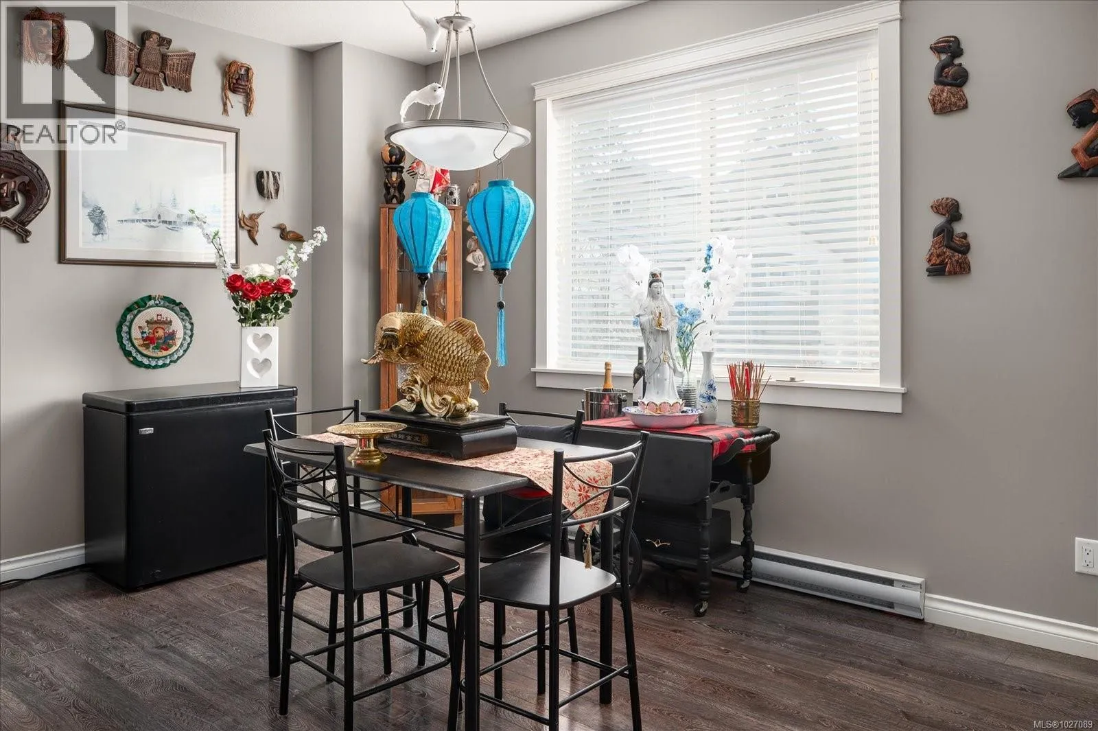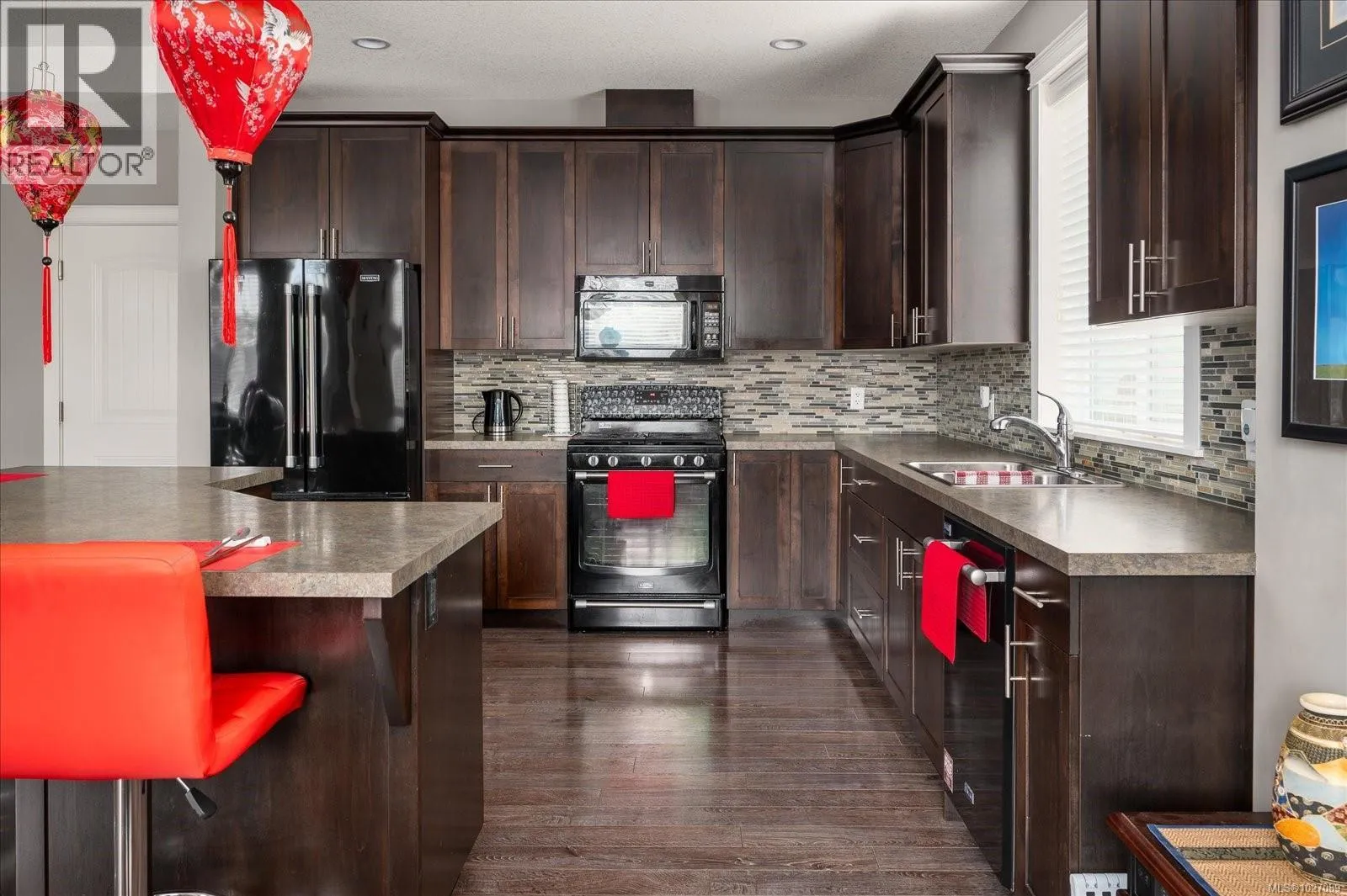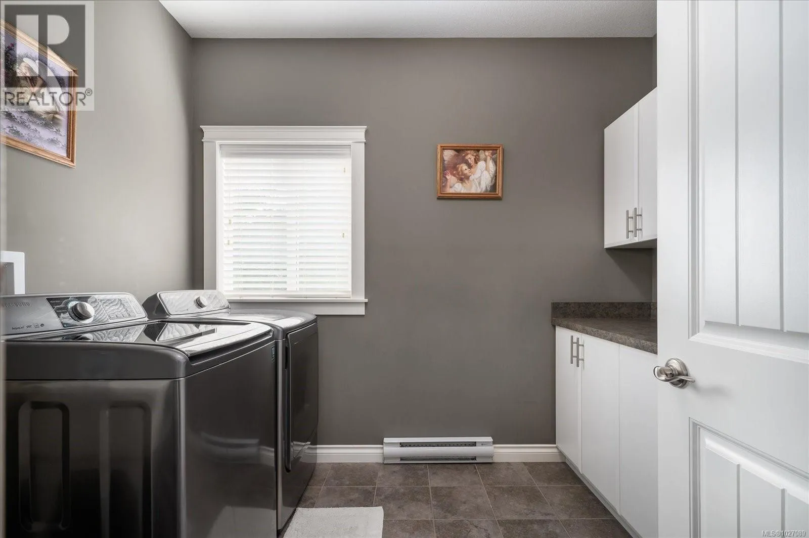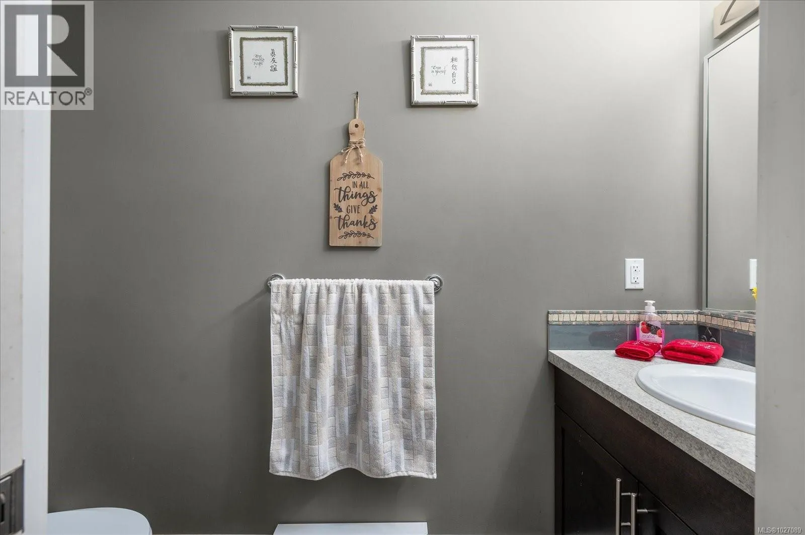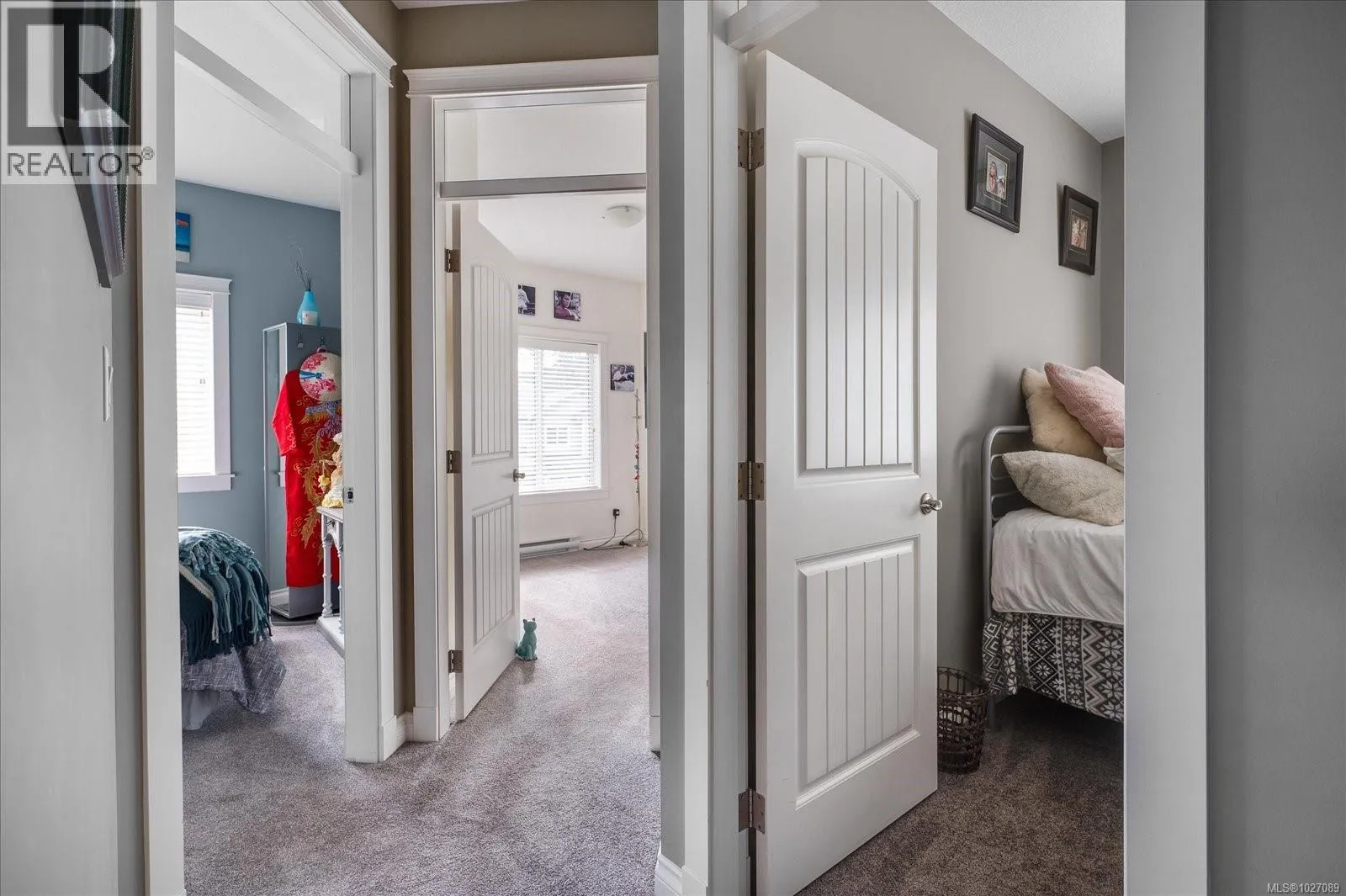 This immaculate home is perfect for a first time buyer, family or retiree, located near Westwood Lake Park which offers hiking, swimming, kayaking, jogging & biking. The 2 storey home is 2143 sq. ft. of fabulous living space with 4 bedrooms & 3 bathrooms in a very desirable neighbourhood & situated on a quiet no thru street. Walk through the front door to the main level and you are greeted with a spacious open plan, 9 ft ceilings, gas fireplace in the living room, large windows allowing an abundance of natural light providing a very bright & airy ambience. The dining area is a nice size perfect for family dinners. Between the living and dining area there is access to the backyard with a patio for sitting, outdoor dining, bbq area all for your outdoor enjoyment, overlooking mature trees & park like setting. This backyard is incredible with all the beautiful flowers, several fruit trees, privacy, it truly is your own little piece of paradise. The gourmet kitchen has tiled backsplash, a convenient island/eating bar, lots of cabinets & counterspace allowing plenty of workspace. Upstairs you will find the primary bedroom with vaulted ceilings, large walk in closet and a 5 piece luxurious ensuite. There are 3 additional bedrooms, a 4 piece bathroom & efficient laundry room with built in cabinets, counter space and sink. The fantastic location is also close to Vancouver Island University. Pride of ownership is very evident in this wonderful home that is suitable for any life style. The back yard is low maintenance, fenced & includes a garden shed for outdoor storage. (id:27476)